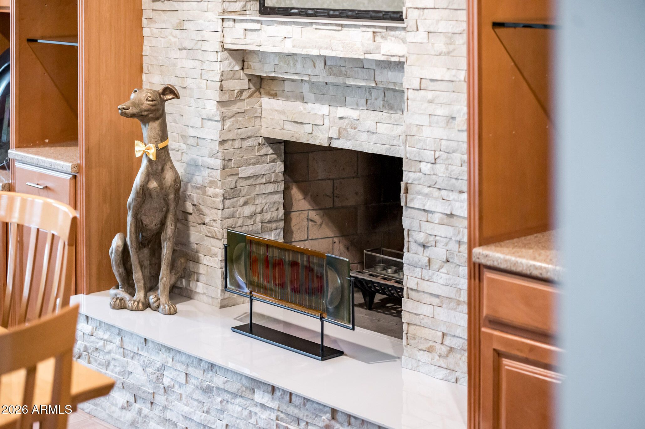 A reimagined and beautifully upgraded Seville Model, this residence blends custom high end finishes with an exceptional level of privacy on one of Sun City West's premier oversized cul de sac lots. Thoughtfully reconfigured, the home offers 3 Bedrooms, 2 Baths, an elegant Great Room with luxury built-ins, and a versatile Dining/Family Room anchored by a charming fireplace. A lavish bar area with private front courtyard access, great for entertaining or relaxing. The Primary Suite features its own private access and a spa inspired bath remodeled in 2019 with custom cabinetry and a beautifully redesigned shower. The Guest Bath received a full renovation in 2021, including a stylish walk-in shower. Flooring throughout the home was updated in 2016, adding to the cohesive, upscale feel. The kitchen is a true standout, finished with Silestone countertops, updated appliances including a wall oven and microwave (2021), refrigerator (2020), and a new cooktop and range hood (2022). Directly connected is an impressive custom walk-in pantry, designed with extensive storage and organization in mind, elevating both function and luxury for the home chef. Major mechanical updates include a 5 ton heat pump installed in 2022 with a 10 year warranty, addition of attic insulation. roof underlayment replaced in 2008 while maintaining the original tile for timeless appeal and replacement of the Hot Water Tank in 2021 Outdoor living shines with a covered patio, expanded paver terrace, and an inviting outdoor fireplace perfect for year round enjoyment. The private front courtyard enhances the home's welcoming presence and provides additional indoor outdoor flow. A rare opportunity to own a custom enhanced, meticulously maintained home in one of the most desirable pockets of Sun City West.