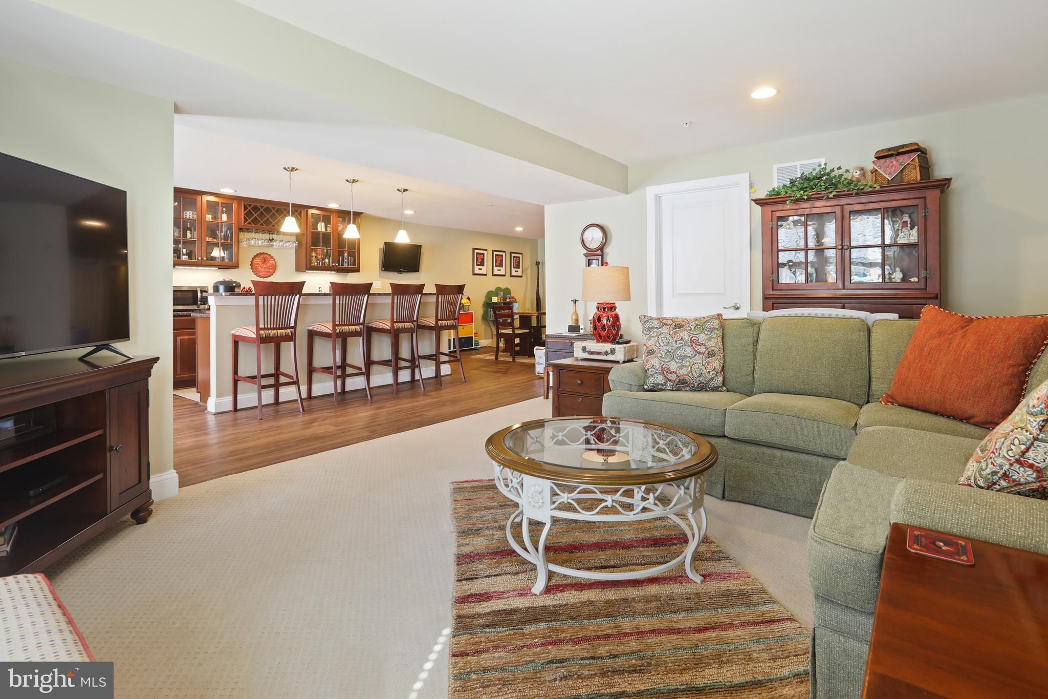 Welcome to this beautifully maintained villa home offering over 4,200 sq. ft. of elegant living space designed for comfort and convenience. Enjoy an open-concept main level layout that features gleaming hardwood floors that seamlessly connect the living room, dining area, and kitchen, perfect for entertaining or everyday living. The gourmet kitchen is a chef’s dream, showcasing stainless steel appliances including gas cooktop, granite countertops, a custom tile backsplash, maple cabinetry, pantry, and a double island ideal for meal prep or casual dining. The main floor primary suite is large and inviting, featuring a generous walk-in closet, and a luxurious en-suite bath with dual vanities and a walk-in shower — creating the perfect private retreat. Main level includes a mudroom with full size washer and dryer that connects the 2-car garage to the kitchen. Upstairs, you’ll find a loft-style sitting area overlooking the family room, a large bedroom with double walk-in closets, a full bathroom with extended single vanity with granite, and a convenient kitchenette with a stackable washer/dryer — perfect for guests or extended family. The finished walk-out lower level is an entertainer’s dream, featuring a rec room with low maintenance luxury vinyl plank flooring, a stone gas fireplace, a wet bar with granite countertops, a third bedroom, a full bathroom, and a spacious nook room with direct access to the lower-level patio. Enjoy outdoor living on the maintenance-free deck or unwind on the patio in the fully fenced backyard making it pet friendly. This exceptional home combines luxury, functionality, and low-maintenance living in one of Fallston’s most desirable 55+ communities — complete with great amenities and a convenient location close to shopping, dining, and major routes.