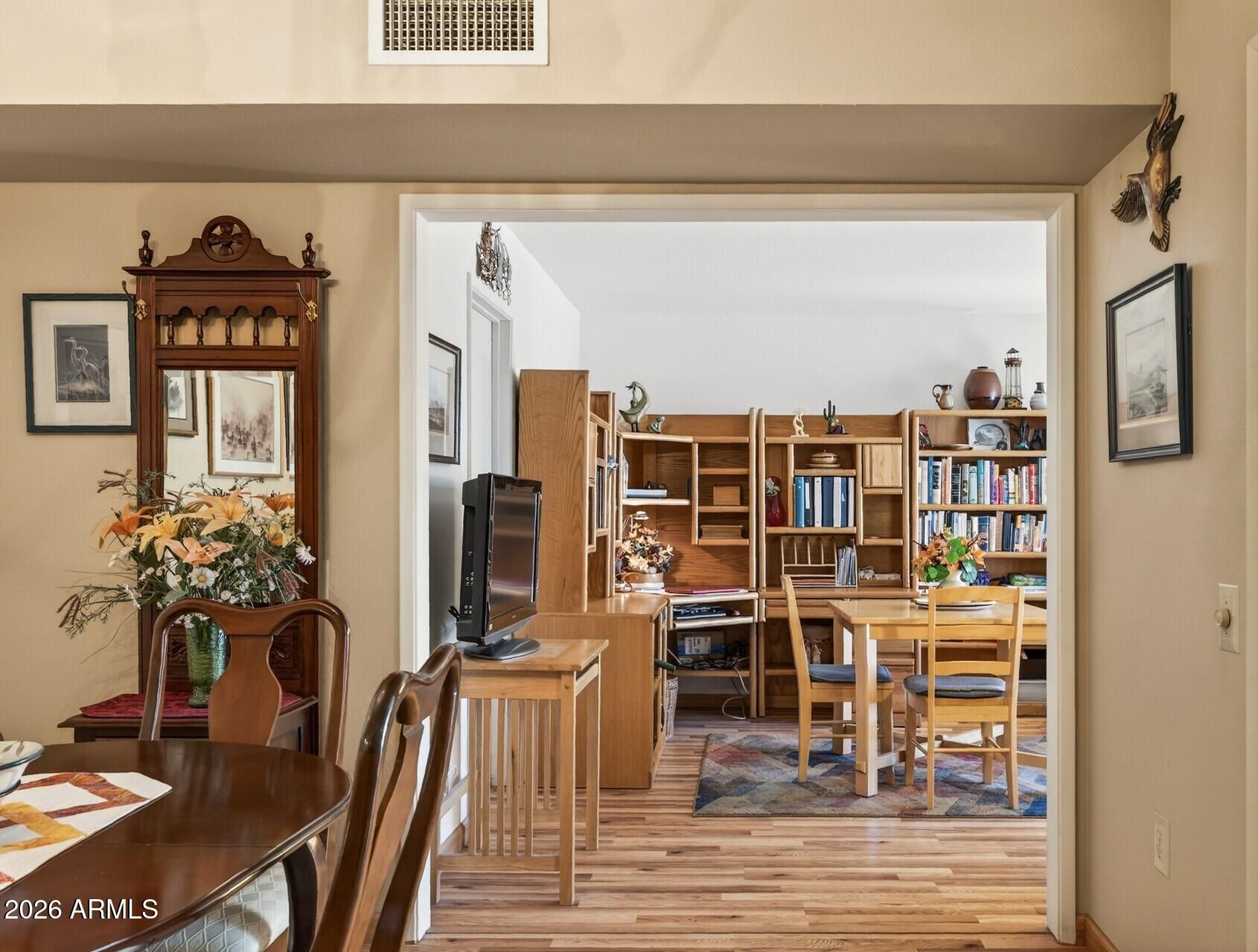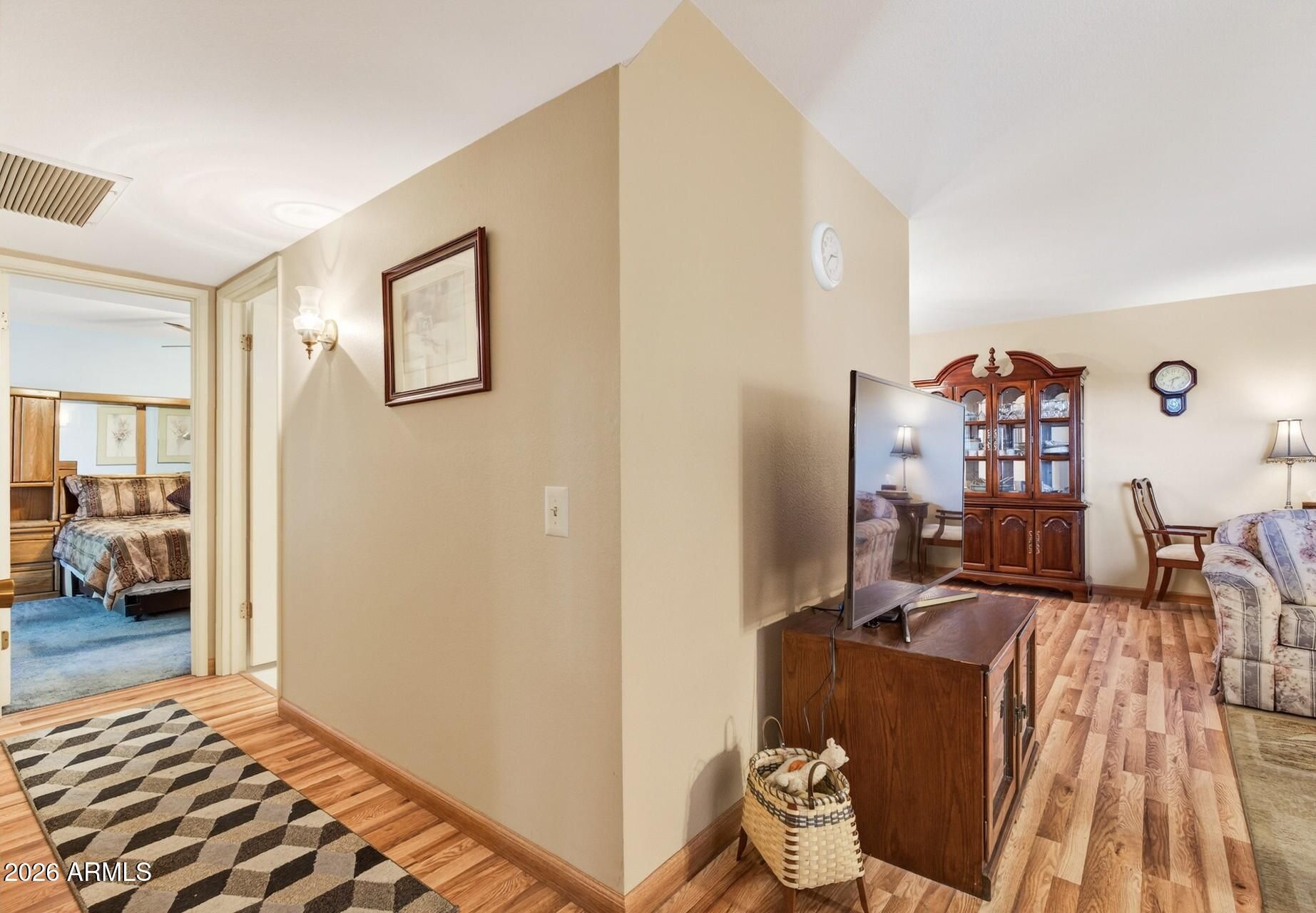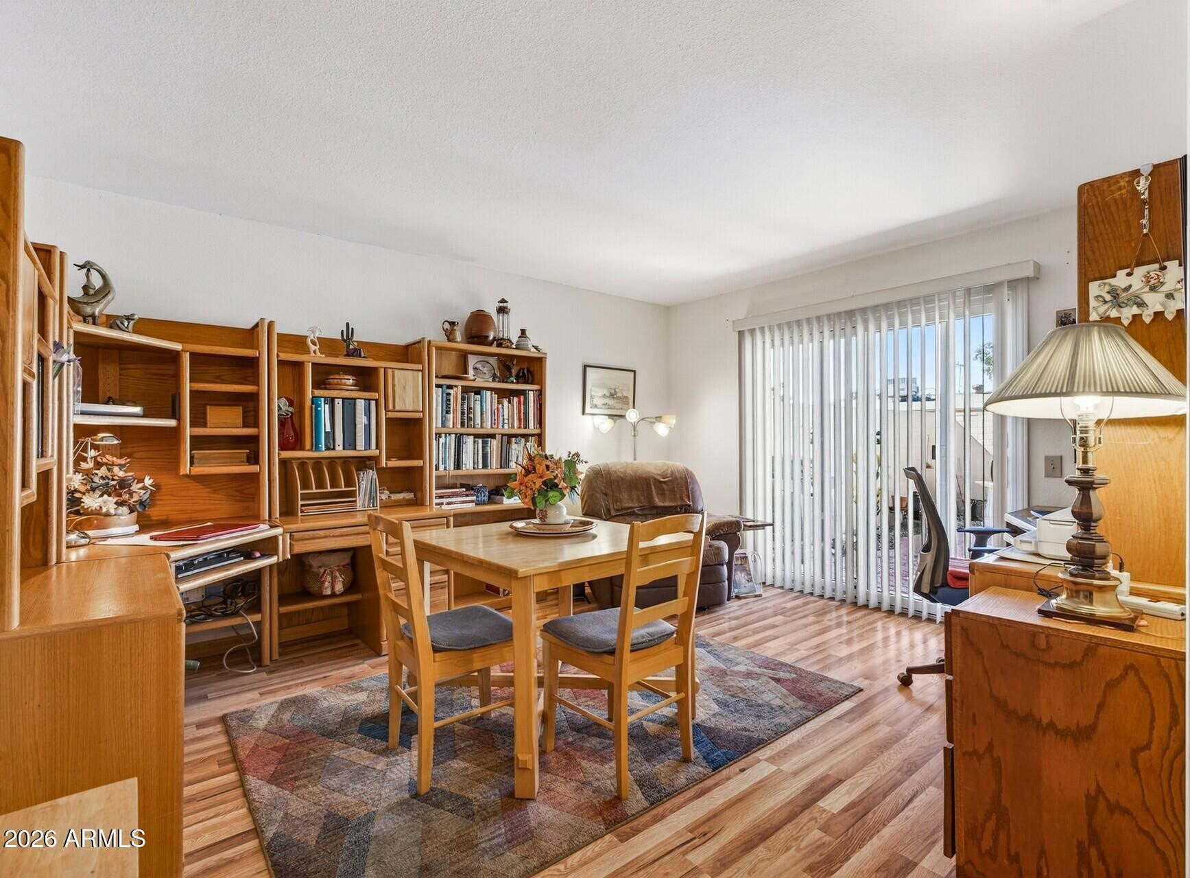 Rarely on the market a 2 bedroom/1 bath garden apartment in Sun City West--perfect for buyers who need more space than a typical 1 bedroom offers. This well-maintained 1,341 sq ft home includes an additional 195 sq ft (in the tax records) flex space ideal for an office, den or hobby room. Recent updates include popcorn ceiling removal, most flooring replaced, remodeled shower, original windows replaced and a newer HVAC system (2021). The HOA replaced the roof approximately 3 years ago. The galley kitchen remains largely original but is functional and features a custom made breakfast counter. Enjoy a private, inviting courtyard and an unbeatable location near the recreation centers, golf, shopping and dining in this sought-after 55+ active adult community of Sun City West in Arizona..