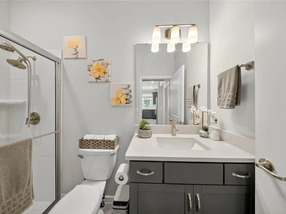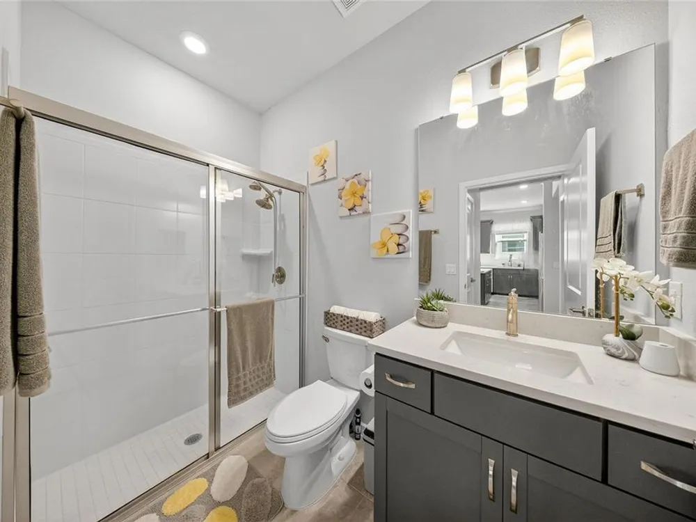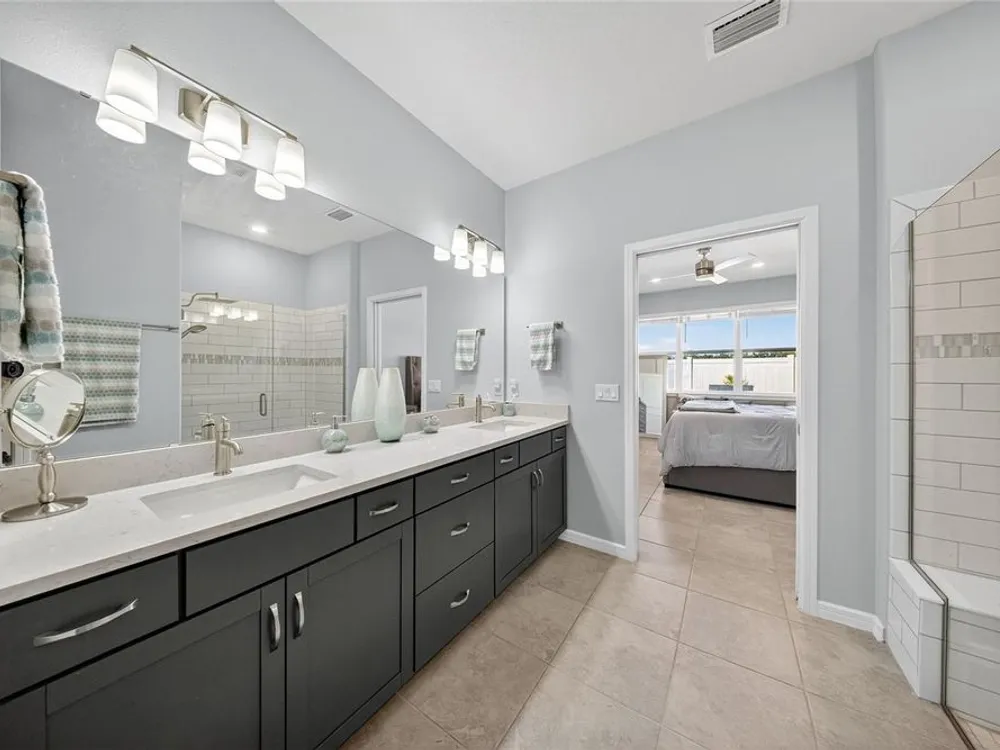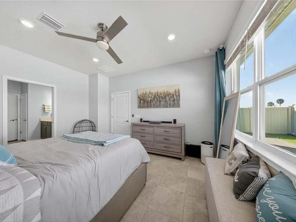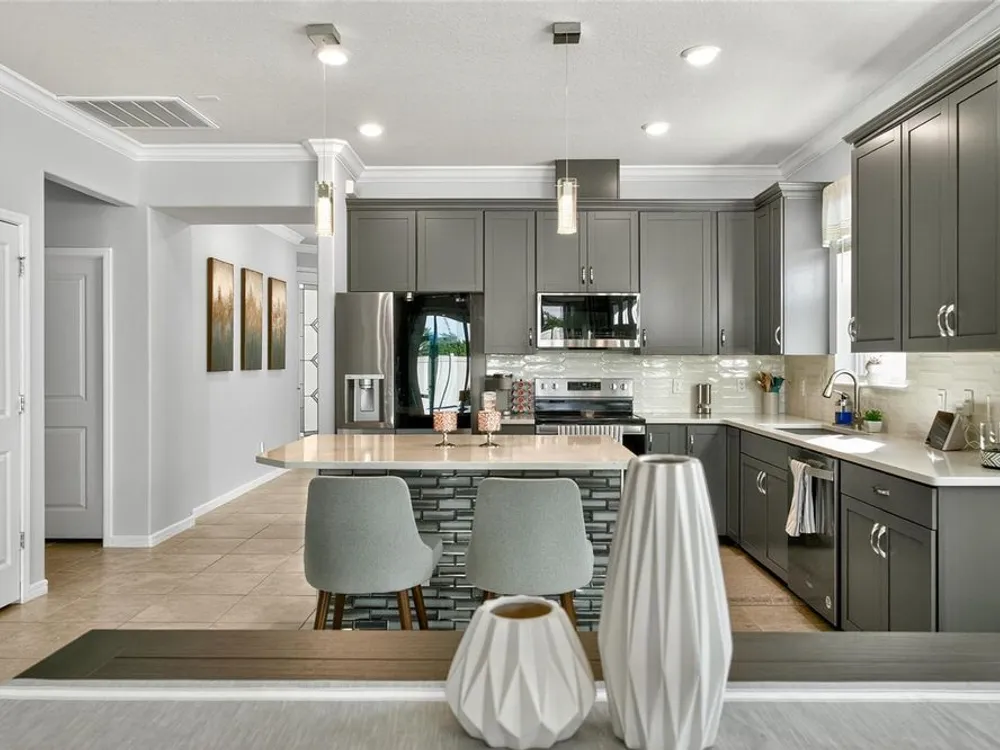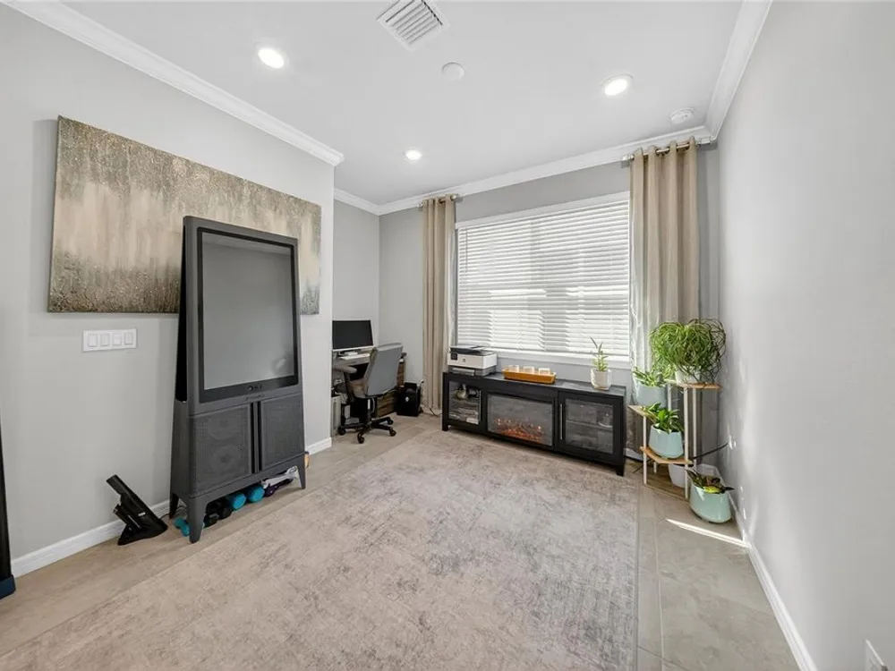 Beautiful meticulously maintained Villa in a 55+ gated community, Tohoqua Reserve. This move-in ready home features lots of upgrades. This spacious 2-bedroom, 2-bathroom home features a versatile flex room, perfect for an office, or can be easily converted into a third bedroom. Upon entering the home, you’ll notice the beautiful crown molding throughout the home, and an abundance of natural light filling the living space. The open floor plan combines the kitchen, dining, and living areas, creating a beautiful large open, bright and welcoming space. Tile throughout home, no carpet. The kitchen features lots of storage space, a pantry, gray cabinets, quartz countertops, an island, and stainless-steel appliances. Through the triple sliding glass doors is a screened-in covered lanai, with extended pavers and artificial grass, perfect for relaxation. The large main bedroom offers a bathroom with a dual sink vanity, tile shower, linen closet, and a large walk-in closet. The 2-car garage features an upgraded epoxy floor for improved durability and sleek appearance. Fenced in yard. This community offers excellent recreational amenities, including access to 2 resort-style pools, clubhouse, tennis and pickleball courts, bocce ball court, fire pits, fitness centers, playground, and scenic walking trails. Tohoqua Reserve is conveniently located near US-192 and the FL Turnpike and is within 30 minutes of Orlando International Airport and Disney World. Lots of shopping centers near by and close to the beautiful Saint Cloud Lake Front area. Furnished - By Appointment Only