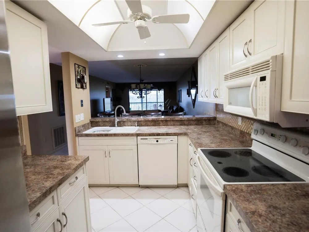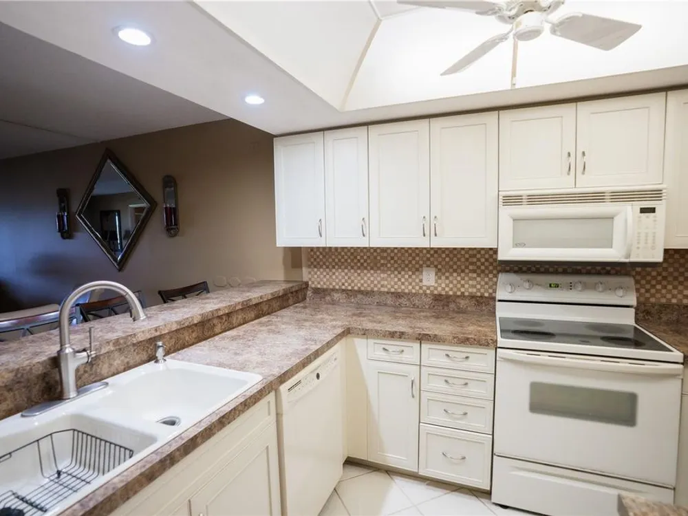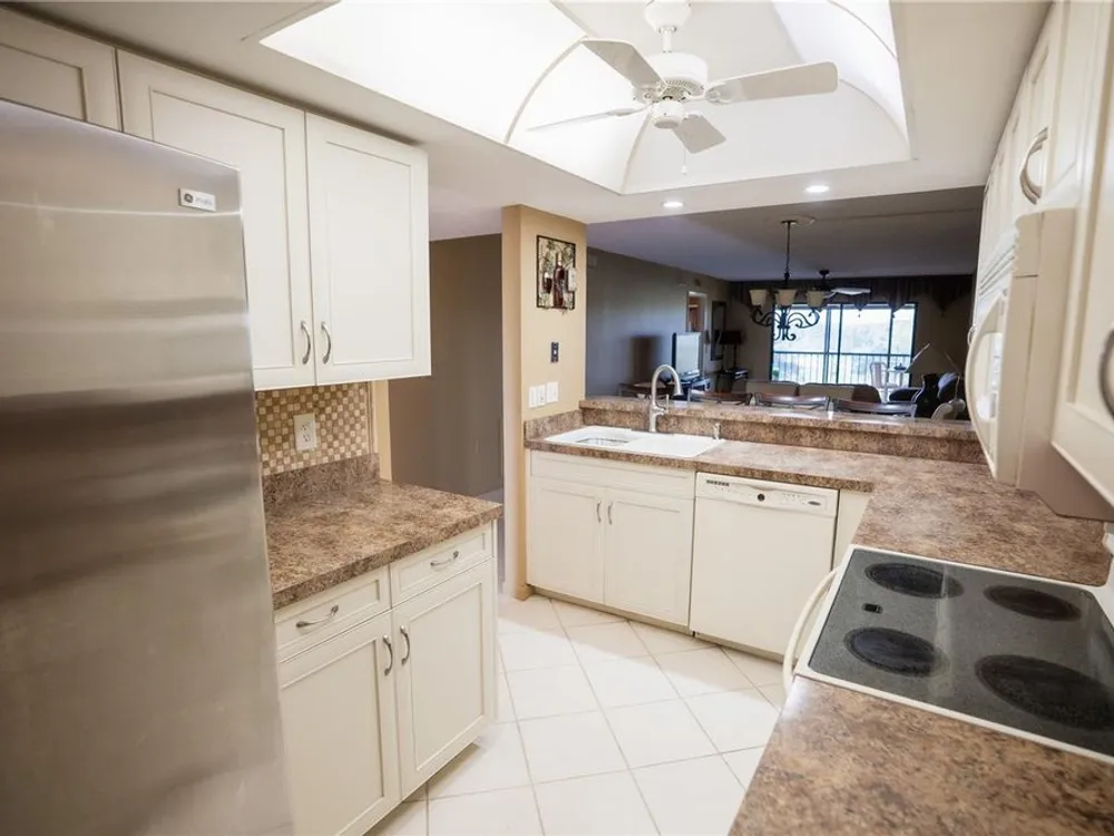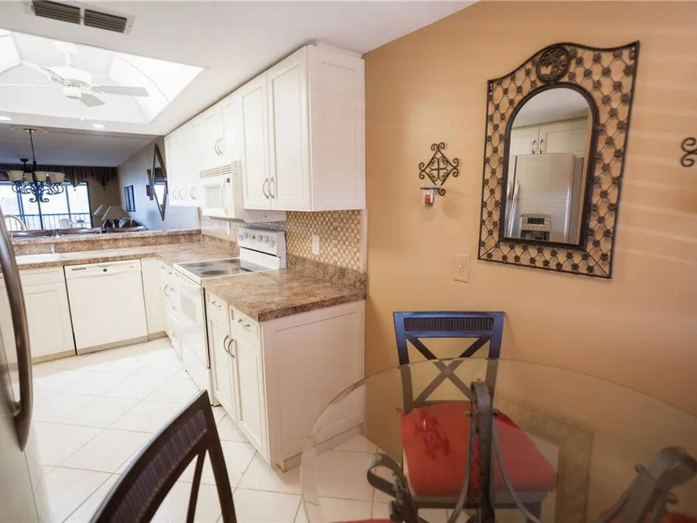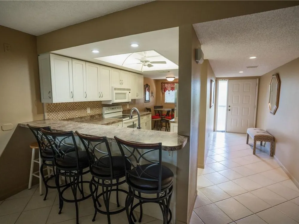 Golf Course Condo Near Tarpon Springs Sponge Docks – Fully Furnished & Move-In Ready. Welcome to easy living in this top-floor 2-bedroom, 2-bath condo with elevator access and sweeping views of the golf course. This fourth-floor unit offers privacy, natural light, and a spacious screened lanai where you can unwind while overlooking the fairways and listening to the peaceful sounds of nature. Inside, the open layout connects the living and dining areas, creating a comfortable space for everyday living or entertaining guests. The split-bedroom floor plan gives each bedroom its own sense of privacy. The primary suite features a walk-in closet, dual sinks, and a tub/shower combo, while the guest bedroom is paired with a full bath and step-in shower. A large interior closet includes a full-size washer and dryer for added convenience. This condo comes fully furnished and includes key updates: refreshed kitchen and bath cabinetry, a new roof (2024), newer A/C (2022), and a recently paid assessment—giving you peace of mind. Green Dolphin is a well-kept 55+ community with low HOA fees that cover water, trash, cable, internet, exterior maintenance, and elevator service. Residents enjoy resort-style amenities including a heated pool, clubhouse, fitness center, tennis and pickleball courts, shuffleboard, billiards, BBQ area, and scenic walking paths. The location puts you just minutes from the famous Sponge Docks, downtown Tarpon Springs dining and shops, the Pinellas Trail, local beaches, and top medical facilities. This is your chance to enjoy turnkey living in a prime Tarpon Springs location—with the golf course as your backdrop.