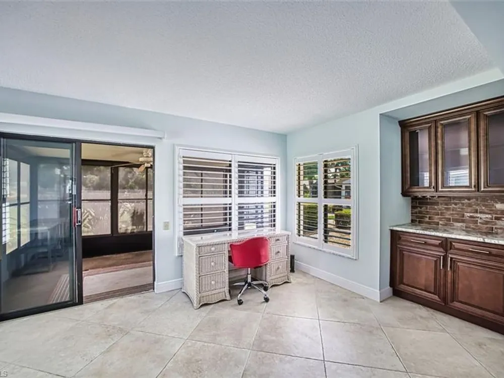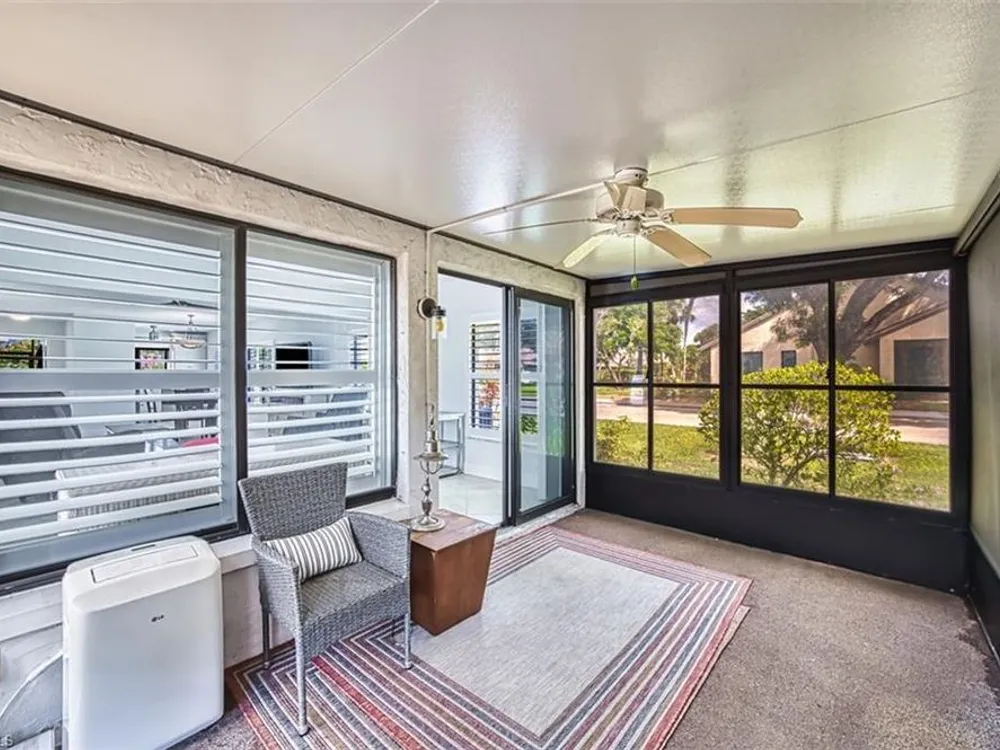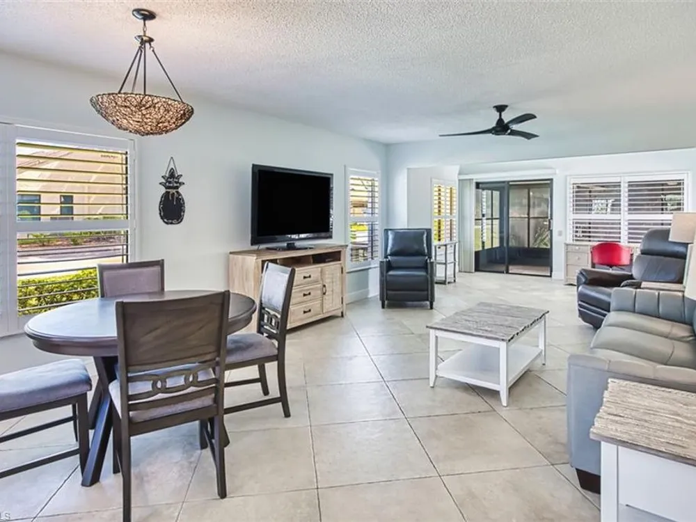Amazing Price! Welcome to this Nicely Furnished and Updated 2 Bedroom, 2 Bath Garden Villa! The "Lido" Floorplan is 1230 Sq Ft. Located in the Seven Lakes Golf & Tennis Community. Granite Kitchen Countertops, Stainless Steel Appliances, Plantation Shutters and Tile flooring throughout. Split Bedroom Floorplan. Screened in Lanai with Interior Windows, Electronic Shades and Portable A/C. Updated Electrical, insulation and ductwork cleaning 2023. Halo Air Purification system 2023. Reverse Osmosis. Full Size Maytag Washer & Dryer. A/C is 2018. Hot Water Heater is 2016. Roof is 2023. Bundled Golf Community. Executive Golf Course is Newer! Active Adult 55+ Community offers 6 Heated Pools, 6 Har Tru Tennis Courts, Shuffleboard, Bocce ball, Pickle ball, Library Card rooms, Exercise room, Billiards, Wood Shop, Hobbies, Crafts, Cards, Restaurant, Full Time Recreational Area with Dinners, Movies and Dancing Events. Pet Friendly (1 pet under 25 lbs). 24 hour manned guard gate. The monthly Fee includes Bundled Golf for 2, Internet Wi-Fi, Cable, Water, Sewer, Structure Insurance, Trash & Building Maintenance. You only pay for Electricity! NO Golf Transfer fees, NO Golf Green Fees & NO Food Minimum in the restaurant. Minutes to Restaurants, Beaches & RSW Airport! Quick closing is possible. Come visit paradise!