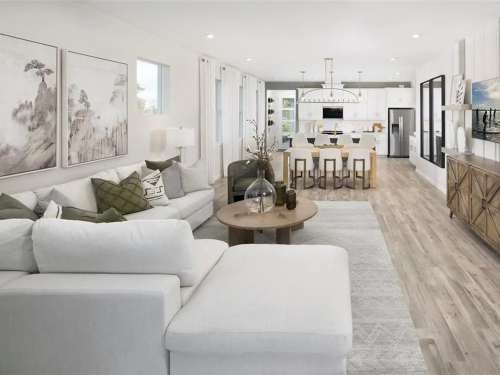 READY NOW! Welcome to your move-in ready villa in Brightmore, Wellen Park’s only 55+ community! This 1,754 sq. ft. Champagne model with a charming Craftsman elevation features 2 bedrooms, 2 bathrooms, a private study, and a 2-car garage. The open layout is filled with natural light, enhanced by 8' interior doors and wide sliding glass doors that create a bright, airy feel throughout. Elegant stone-gray ceramic tile runs front to back in a staggered pattern across the main living areas and bathrooms, while soft dove-colored carpet adds comfort in the bedrooms. The kitchen is beautifully appointed with painted linen cabinetry, crown molding, smooth soapstone mist quartz countertops, and a modern linear backsplash in soft white and gray tones. Whirlpool stainless steel appliances include a heavy-duty dishwasher (ENERGY STAR® certified), microwave hood combo, freestanding electric range, and a counter-depth French door refrigerator (ENERGY STAR® certified). The owner’s suite includes a spacious walk-in closet, dual sinks, and a walk-in shower with a bench seat and full tile surround. The second bathroom has been upgraded to feature a recessed shower in lieu of a tub. Notable structural upgrades include a study in place of the flex room, a high window in the great room, and a screen enclosure under the lanai roof. Recessed LED lighting adds ambiance in the great room and lanai, pendant prewiring is ready over the kitchen island, and a TV wall mount package has been installed in the great room for easy entertainment setup. Located in Brightmore, Wellen Park’s only 55+ community, residents will enjoy a future 21,000 sq. ft. amenity center with 8 pickleball courts, a stadium court, two pools (lap and resort-style), a state-of-the-art fitness center, bar and café overlooking the pools, dog park, outdoor exercise lawn, hot tub, full-time lifestyle director, and more. Just minutes from beaches, downtown Wellen Park, dining, and shopping—accessible by golf cart, bike, or a leisurely walk—this home is ready now! *** Photos, renderings and plans are for illustrative purposes only and should never be relied upon and may vary from the actual home. Pricing, dimensions and features can change at any time without notice or obligation. The photos are from a furnished model home and not the home offered for sale.