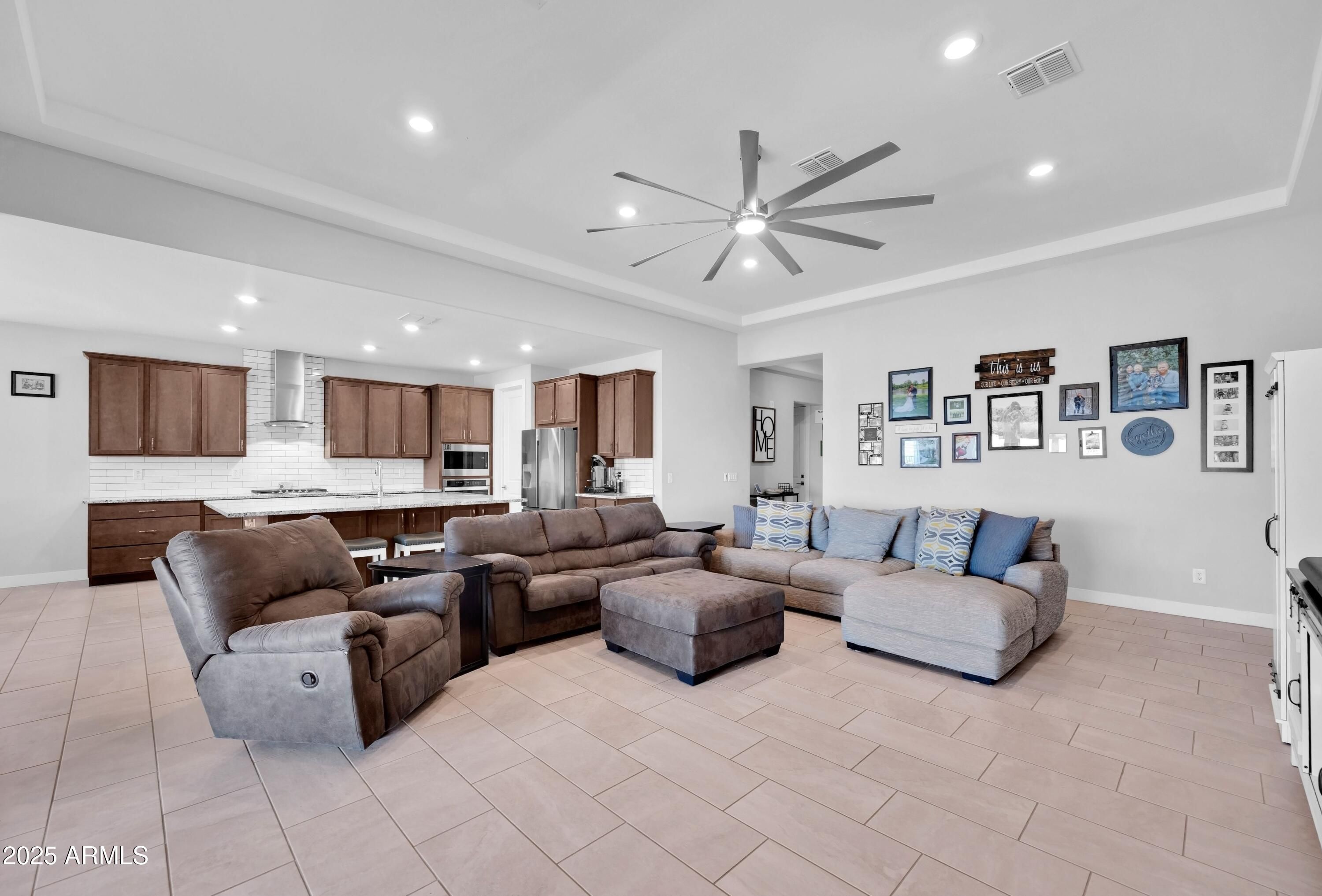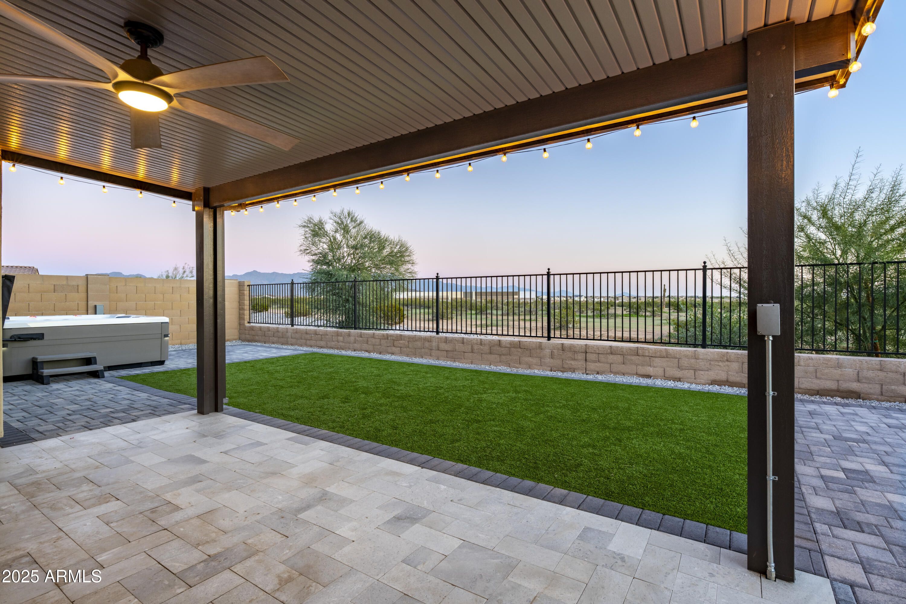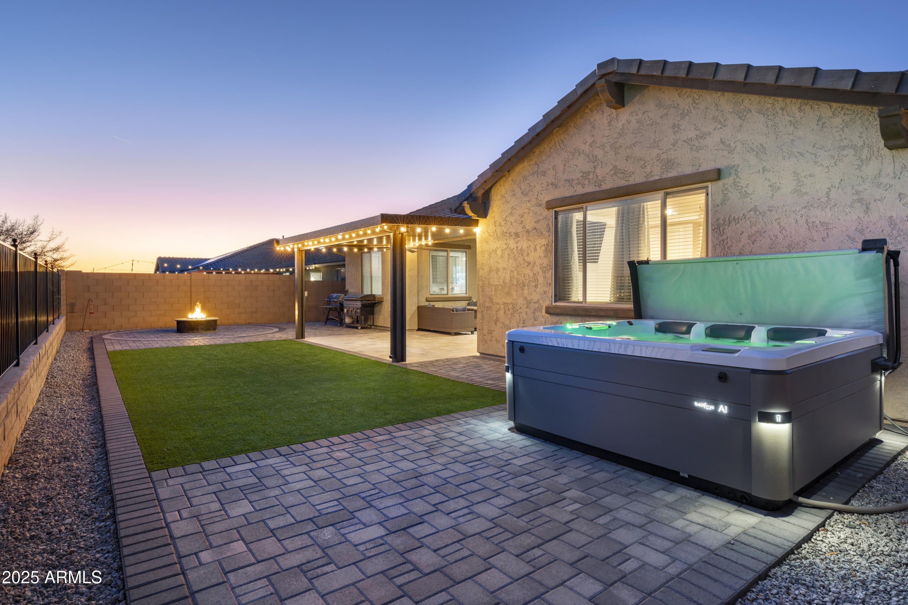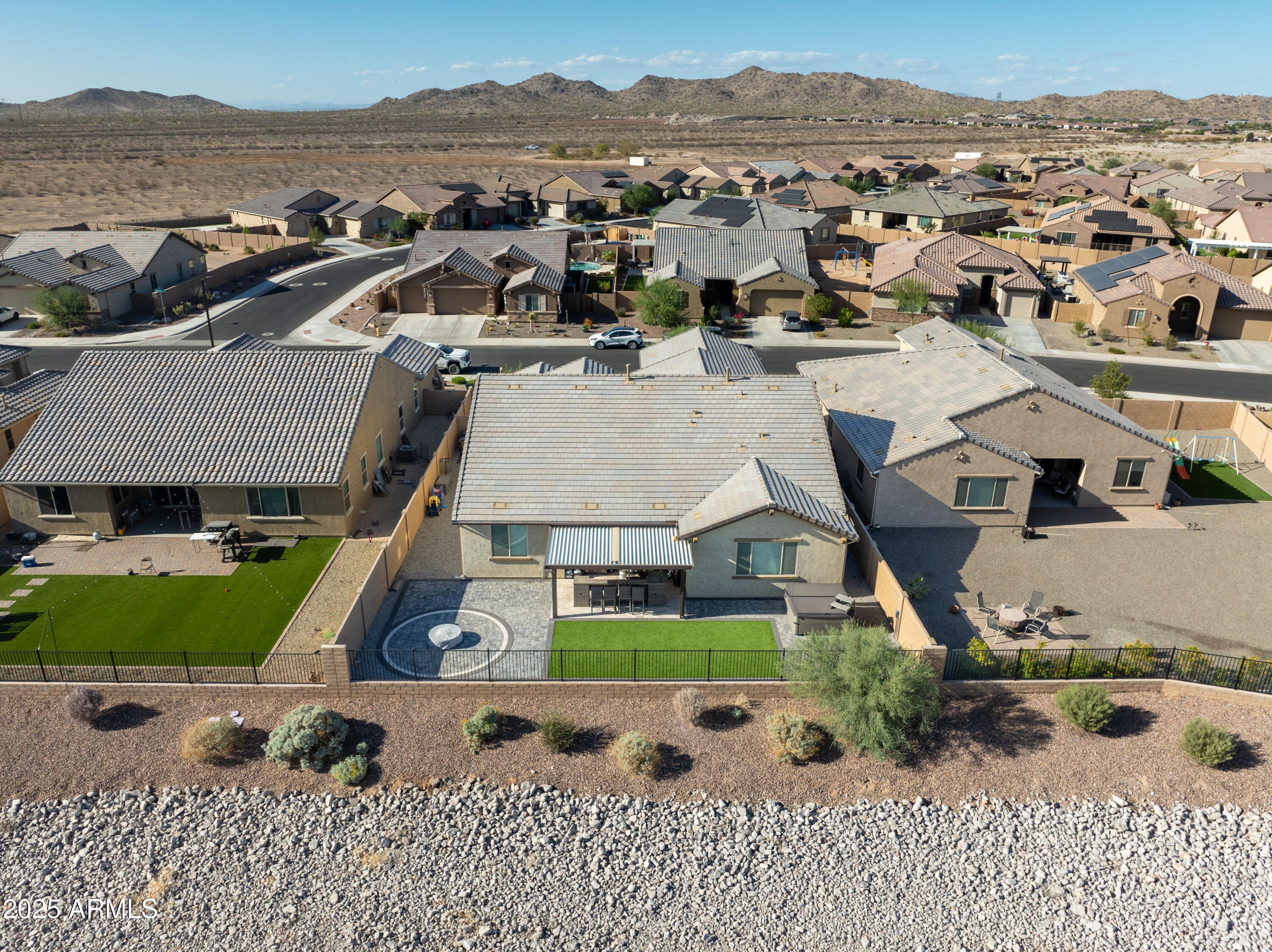 Seller offering a $7,500 credit toward buyer closing costs or rate buydown with an acceptable offer! Welcome to your single-story desert retreat in Estrella! Built in 2022, this beautifully designed home offers 5 bedrooms PLUS a teen room/office, 3 bathrooms, and a functional layout perfect for families, multi-gen living, remote work, or anyone seeking modern comfort on one level. The open-concept living space is filled with natural light, upgraded flooring, and designer finishes. The chef-inspired kitchen features a large quartz island, stainless appliances, upgraded cabinetry, a walk-in pantry, and clear views into the great room and backyard oasis. The flexible teen room/office adds space for work, play, hobbies, or media, and all five bedrooms are generously sized. The primary The primary suite includes a walk-in closet, dual vanities, and an upgraded shower. The backyard is a true highlightyour private oasis with a heated Bullfrog spa, pergola, gas fire pit, extended pavers, low-maintenance landscape, and no rear neighbors. Enjoy beautiful mountain views, peaceful mornings, and sunset evenings year-round. A 3-car garage, energy-efficient construction, and premium lot location complete this exceptional home. Located in the desirable Estrella community with lakes, pools, fitness centers, trails, parks, and events.