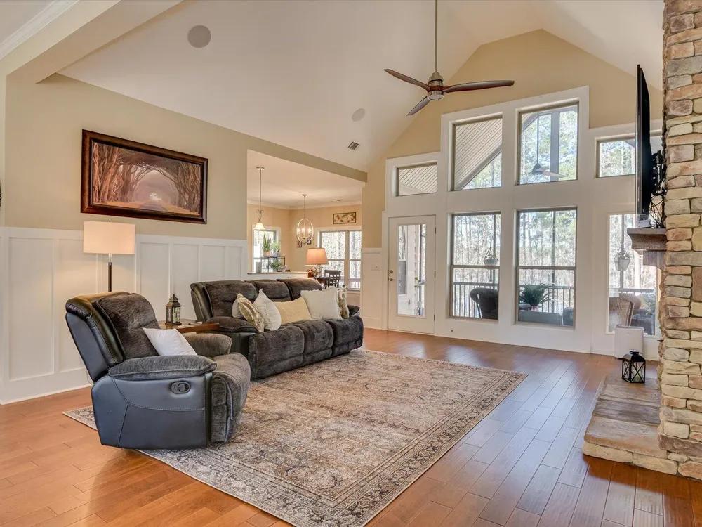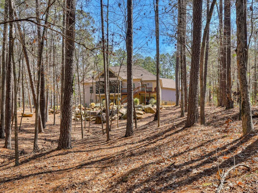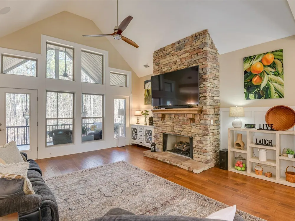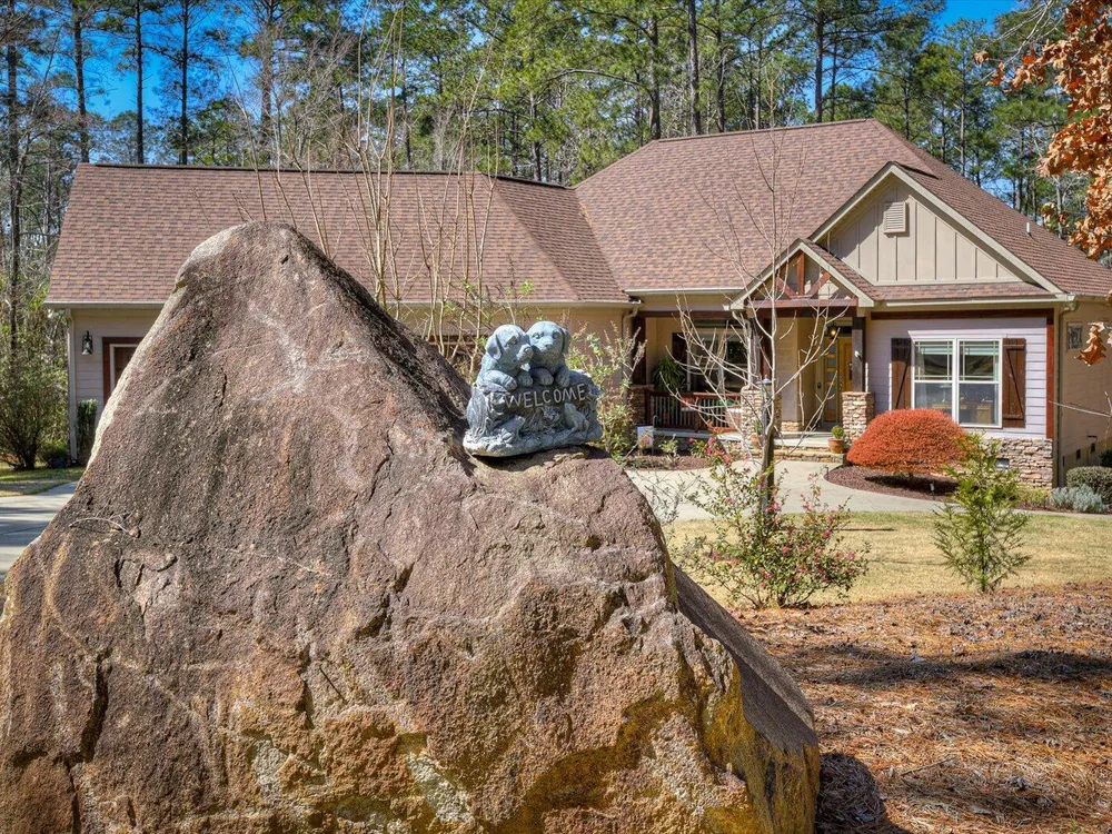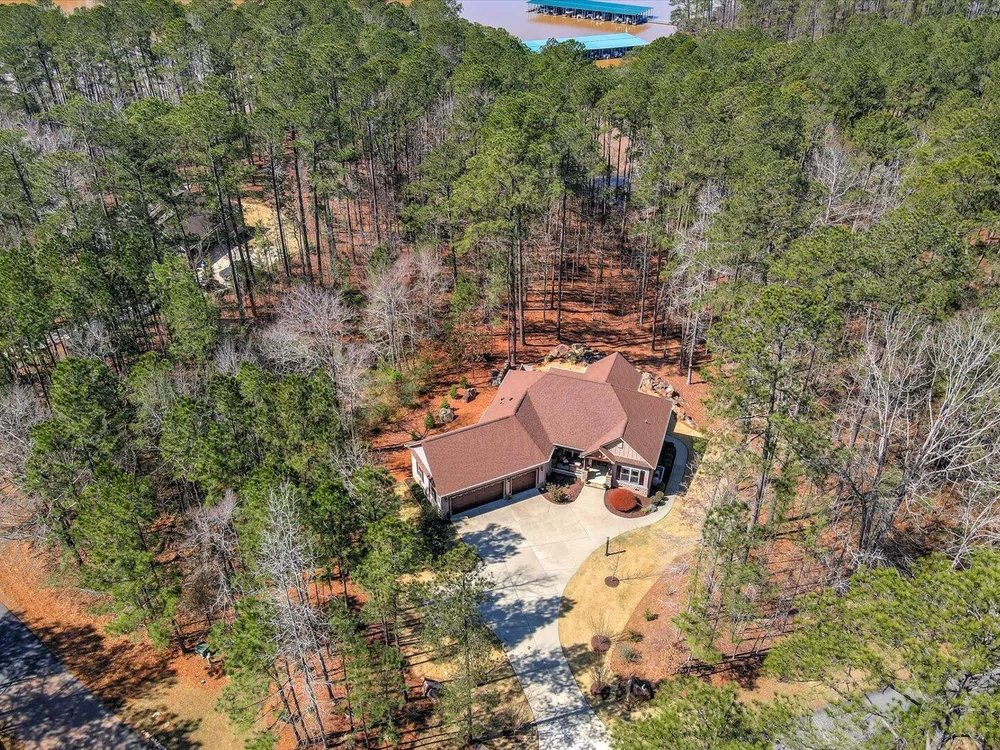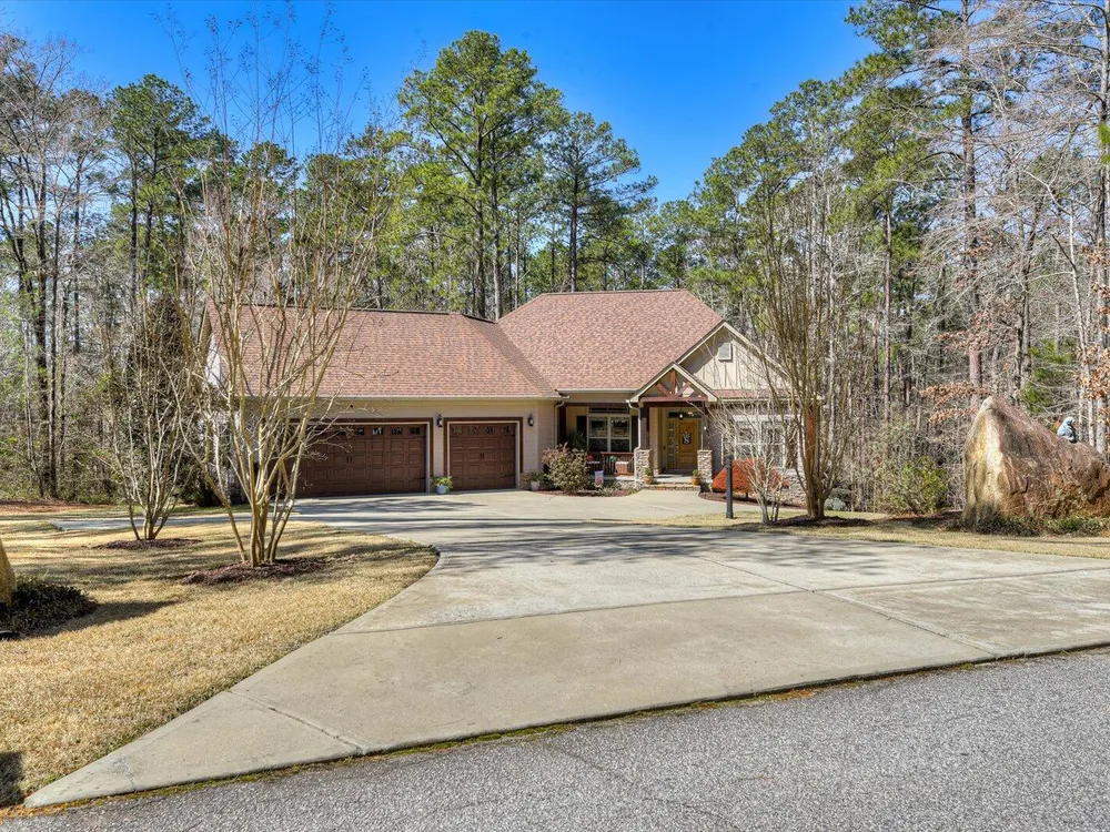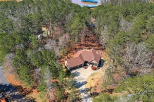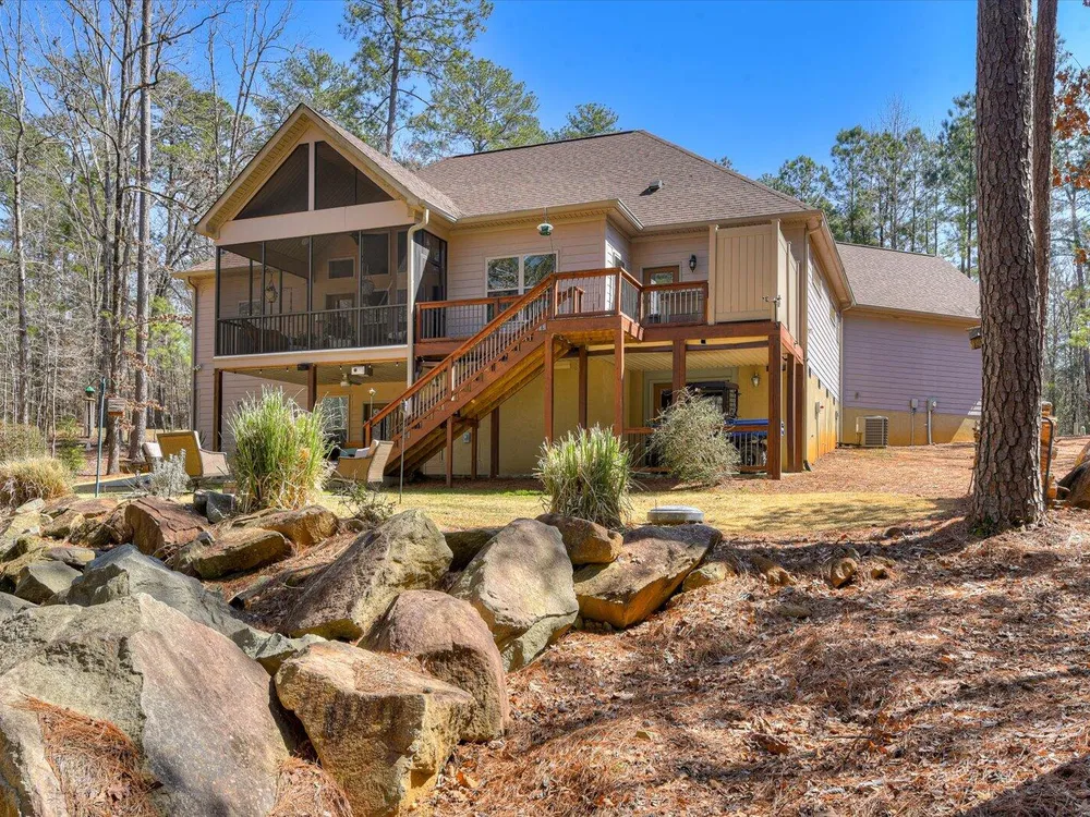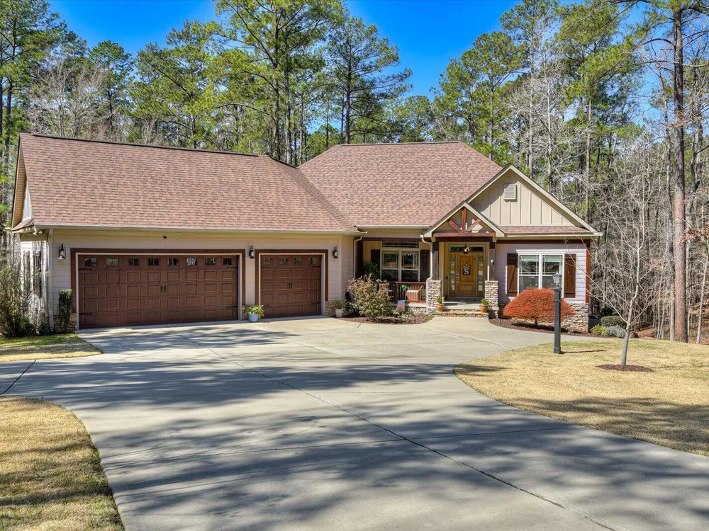 Located in Savannah Point in Savannah Lakes Village this great lake front home offers 3 bedrooms and 2.5 bathrooms and a desired 3 car garage. Plus a great custom Man Cave. Enter the foyer and step into the family room with stacked stone fireplace, vaulted ceiling and large windows overlooking the Lake Thurmond. Large screened porch just off the family room. Kitchen and breakfast area is open with a lot of widows, granite countertops and beautiful wood cabinets. Split floor plan offers a nice private primary suite with access door to the outdoor deck, walk in shower, double sinks and large closet. There are two nice guest bedrooms and full bath between them. Nice concrete sidewalk takes you around the home to the great fire pit area overlooking the water and an awesome workshop area and man cave area, large enough for a 9 foot pool table and more. There is a dock permit, so new owner would need to complete a dock lease with community services. Mature maintained landscape is ready for spring and large rock boulders throughout the landscape were collected off the property during the building process, they are amazing.