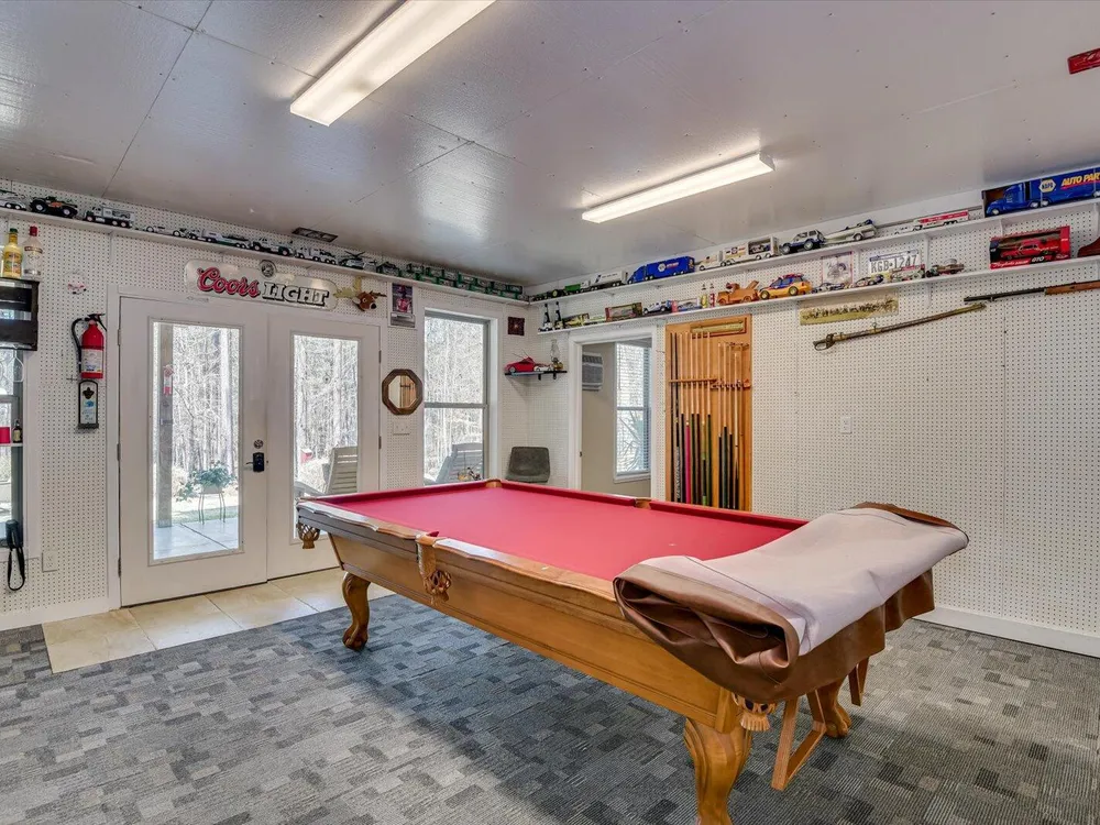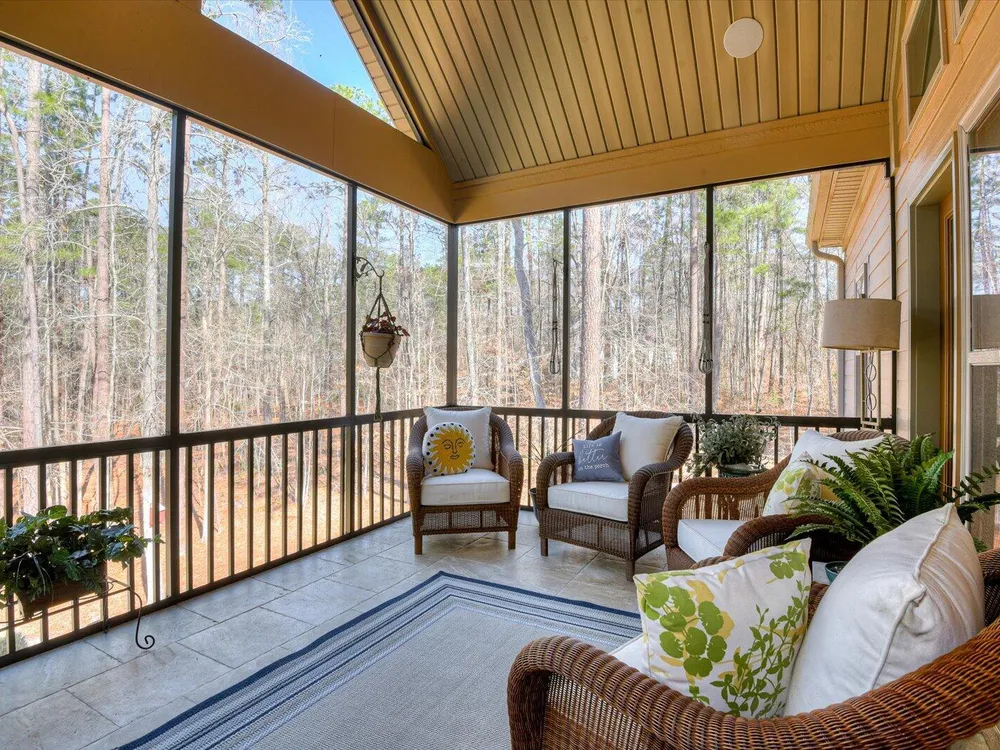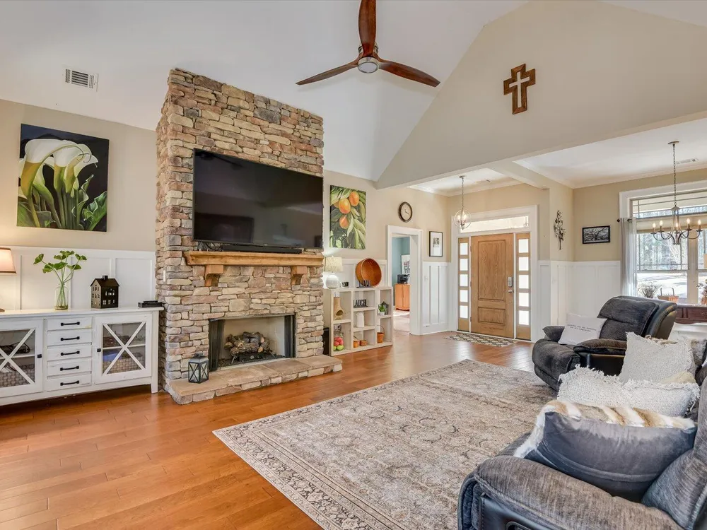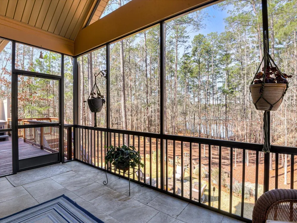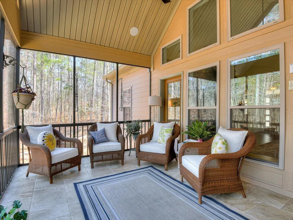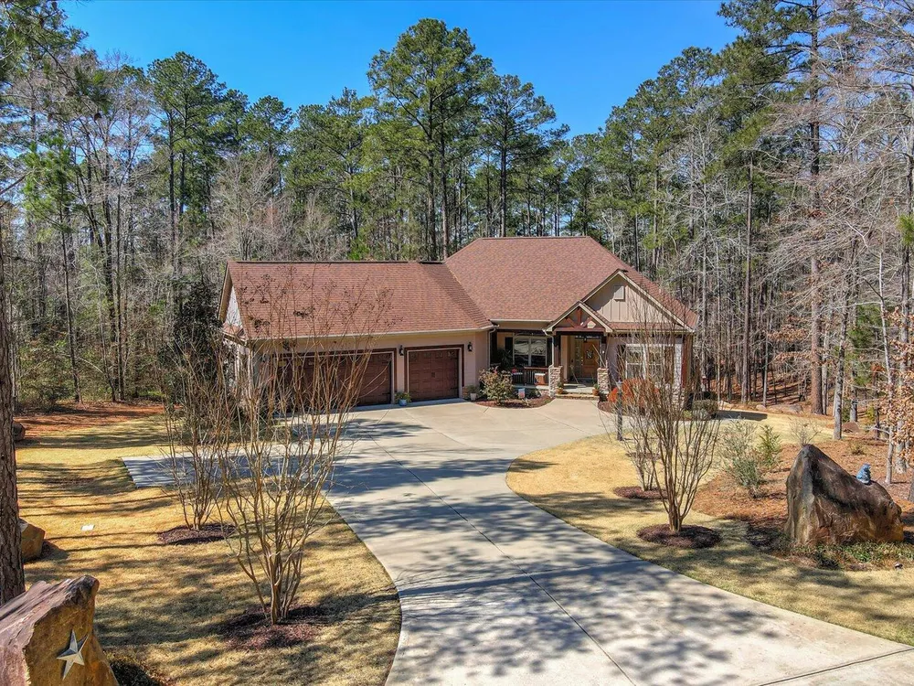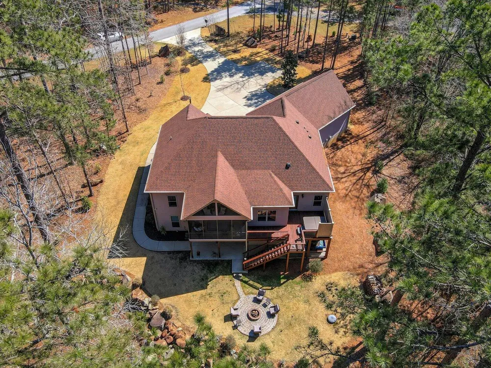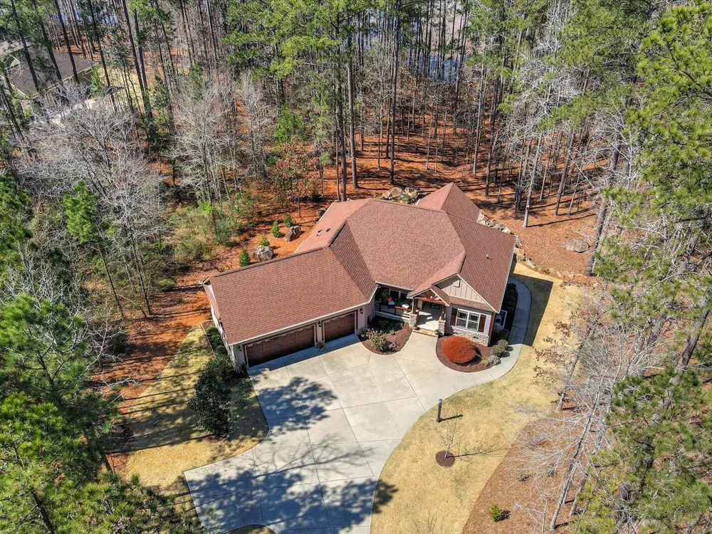 Located in Savannah Point in Savannah Lakes Village this great lake front home offers 3 bedrooms and 2.5 bathrooms and a desired 3 car garage. Plus a great custom Man Cave. Enter the foyer and step into the family room with stacked stone fireplace, vaulted ceiling and large windows overlooking the Lake Thurmond. Large screened porch just off the family room. Kitchen and breakfast area is open with a lot of widows, granite countertops and beautiful wood cabinets. Split floor plan offers a nice private primary suite with access door to the outdoor deck, walk in shower, double sinks and large closet. There are two nice guest bedrooms and full bath between them. Nice concrete sidewalk takes you around the home to the great fire pit area overlooking the water and an awesome workshop area and man cave area, large enough for a 9 foot pool table and more. There is a dock permit, so new owner would need to complete a dock lease with community services. Mature maintained landscape is ready for spring and large rock boulders throughout the landscape were collected off the property during the building process, they are amazing.