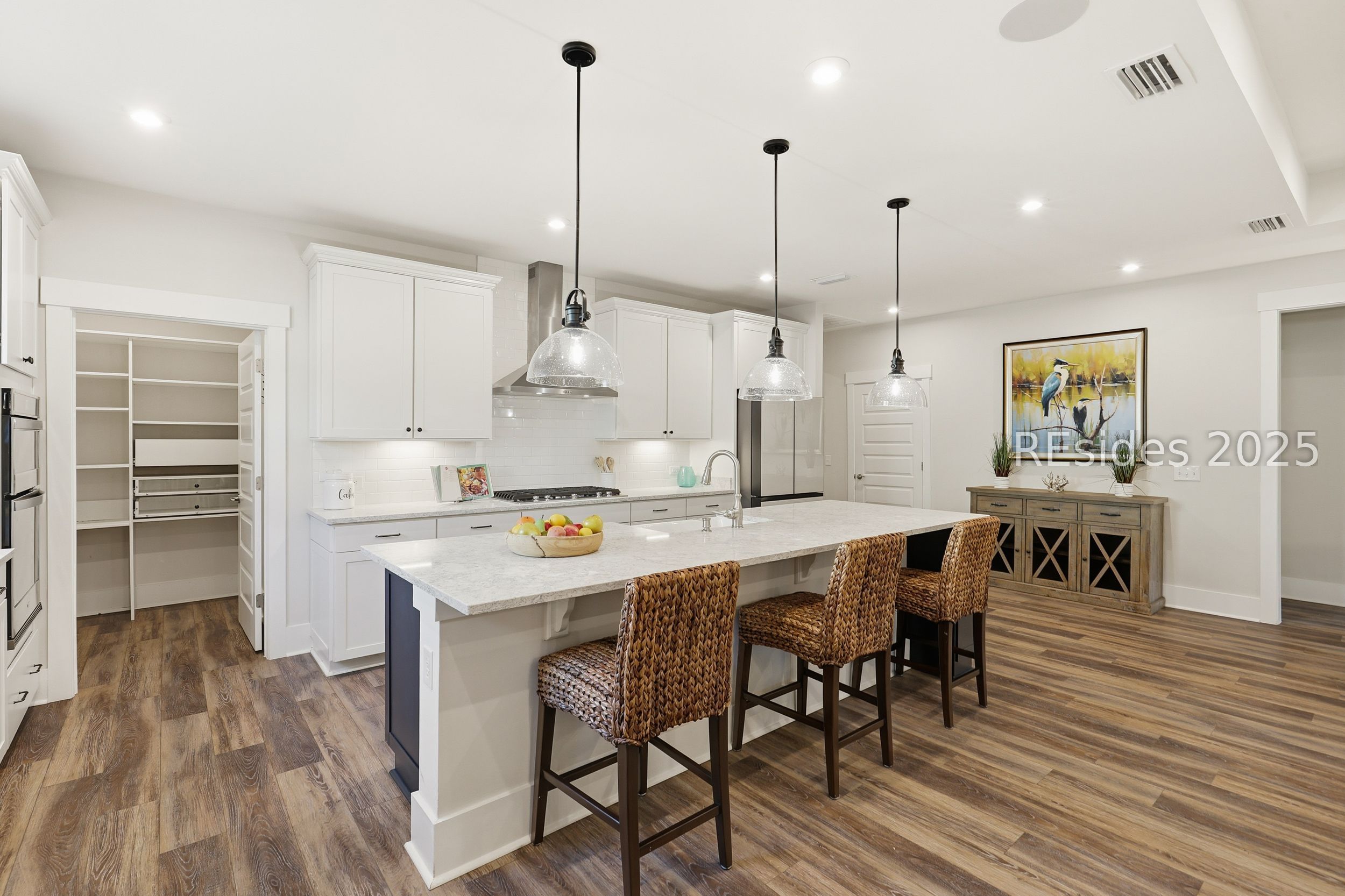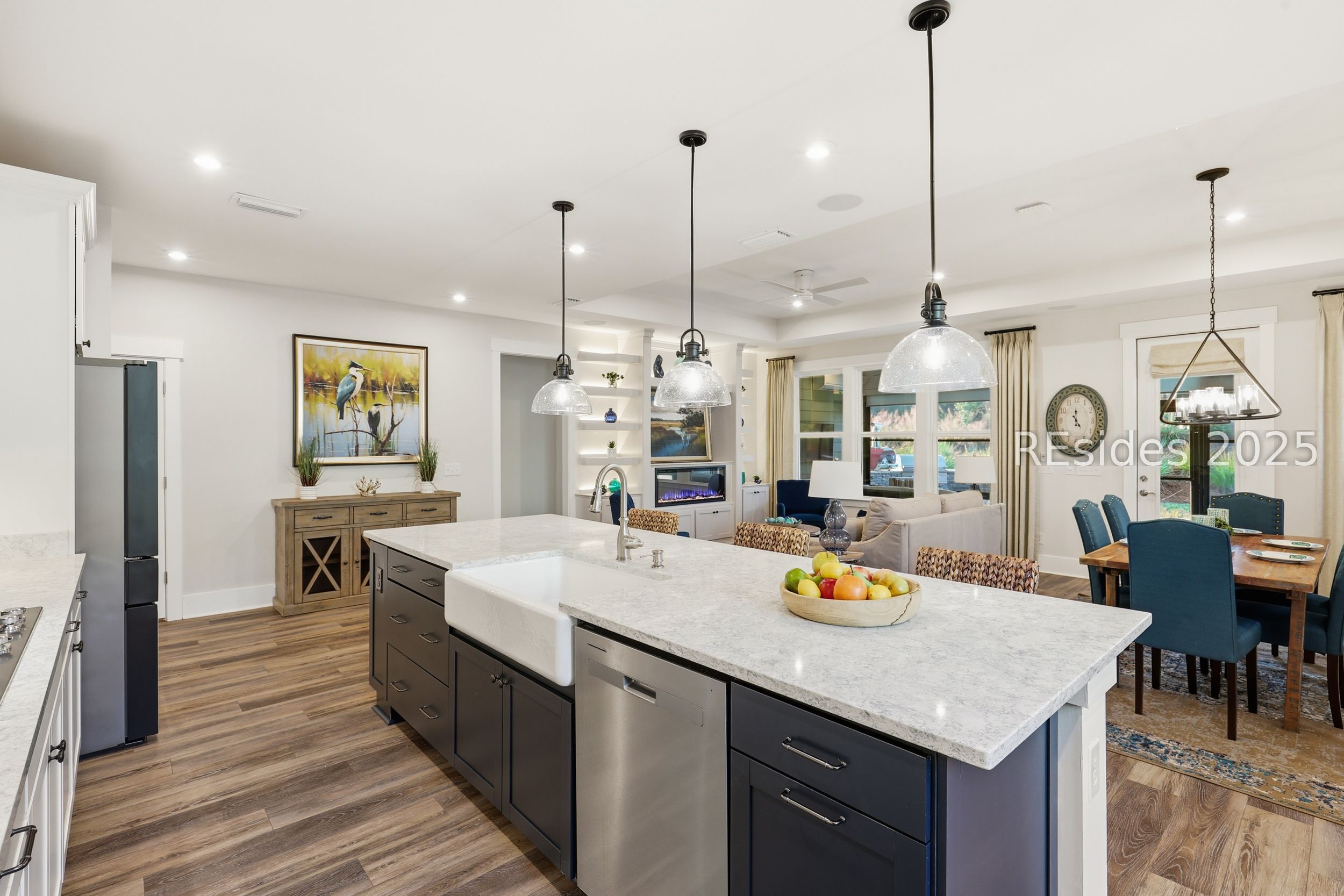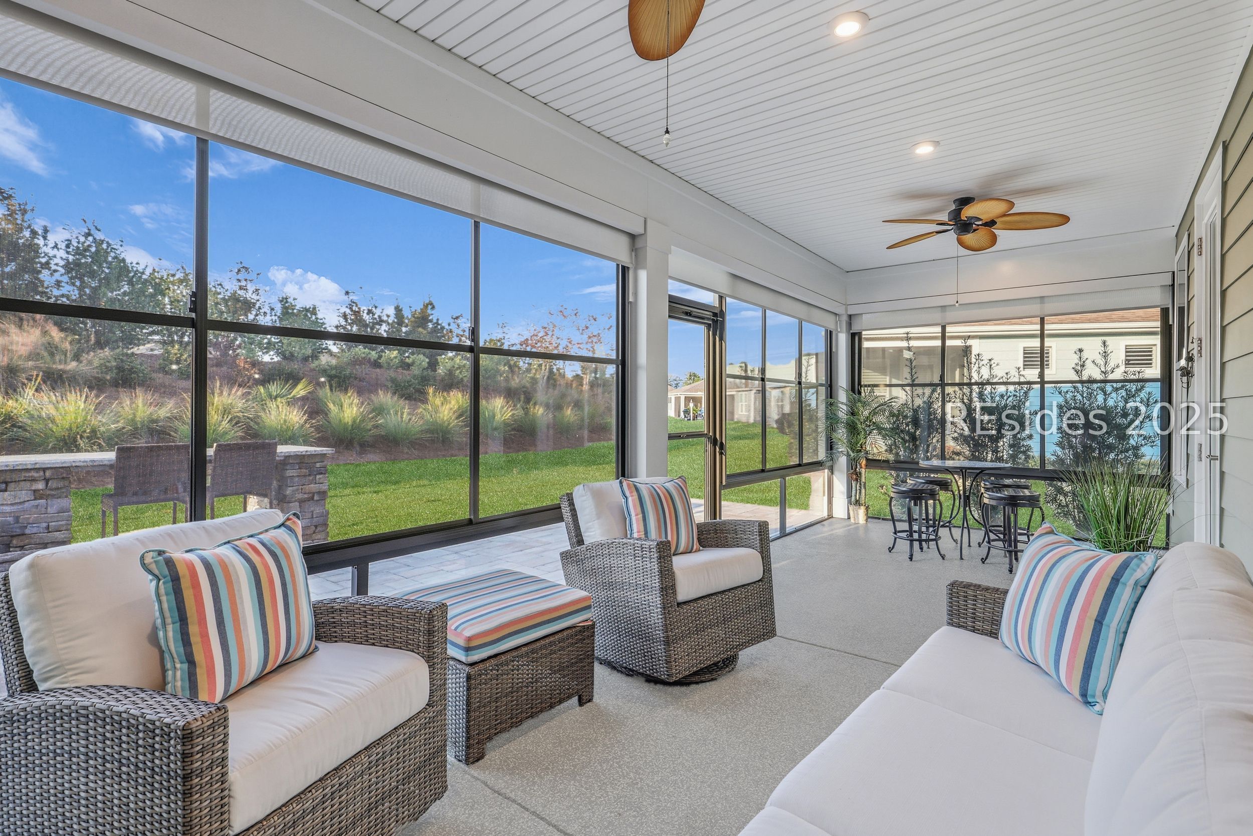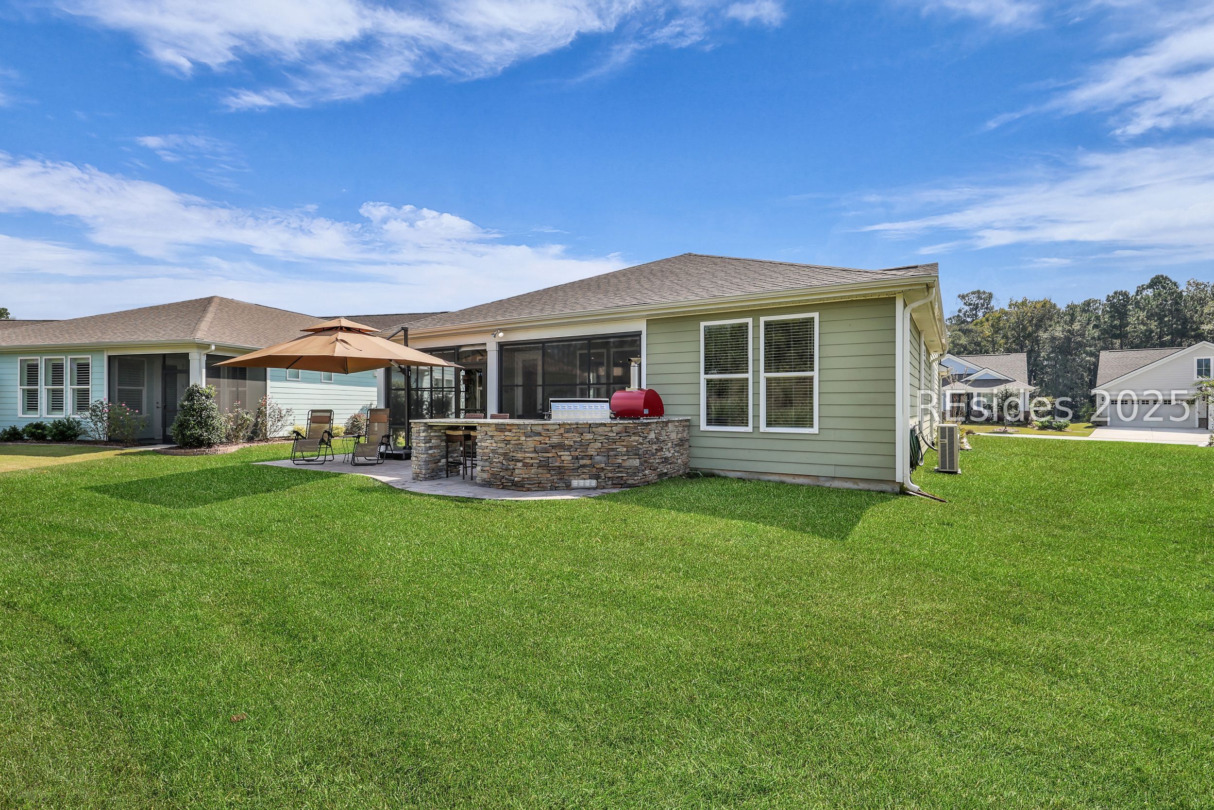 This stunning Palmary model in Sun City Hilton Head is packed with upgrades and designed for easy Lowcountry living. The chef's kitchen features quartz countertops, farmhouse sink, gas range, Samsung Bespoke refrigerator, custom pantry, and stylish lighting, opening to a gathering room with tray ceiling, built-ins, electric fireplace, surround sound, and an inviting yet elevated feel. The office includes built-ins with a Murphy bed, while the primary suite offers a spa-inspired super shower and custom-organized closet. Outdoor living steals the show with a climate-controlled lanai featuring vinyl windows, mini-split system, epoxy floors, and TV hookup, plus a paver patio and full outdoor kitchen with grill and pizza oven. Additional highlights include an extended driveway and garage. With over $116,000 in owner investments and $135,000 in Pulte upgrades, this home is priced to sell and is an exceptional opportunity to own one of Sun Citys most impressive residences while enjoying golf, pools, fitness centers, pickleball, tennis, dog parks, trails, and hundreds of clubs. Please see full list of owner investments and Pulte upgrades in MLS documents.