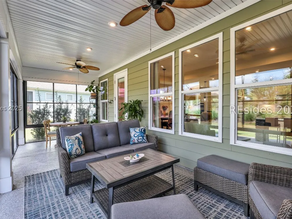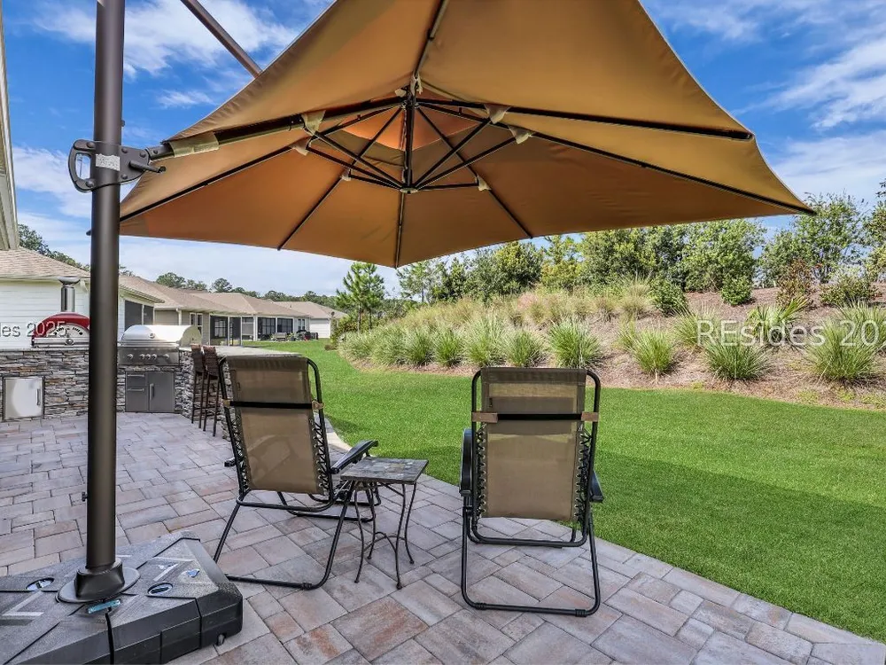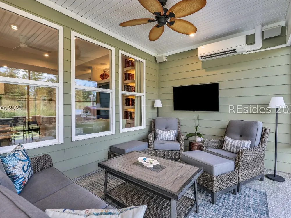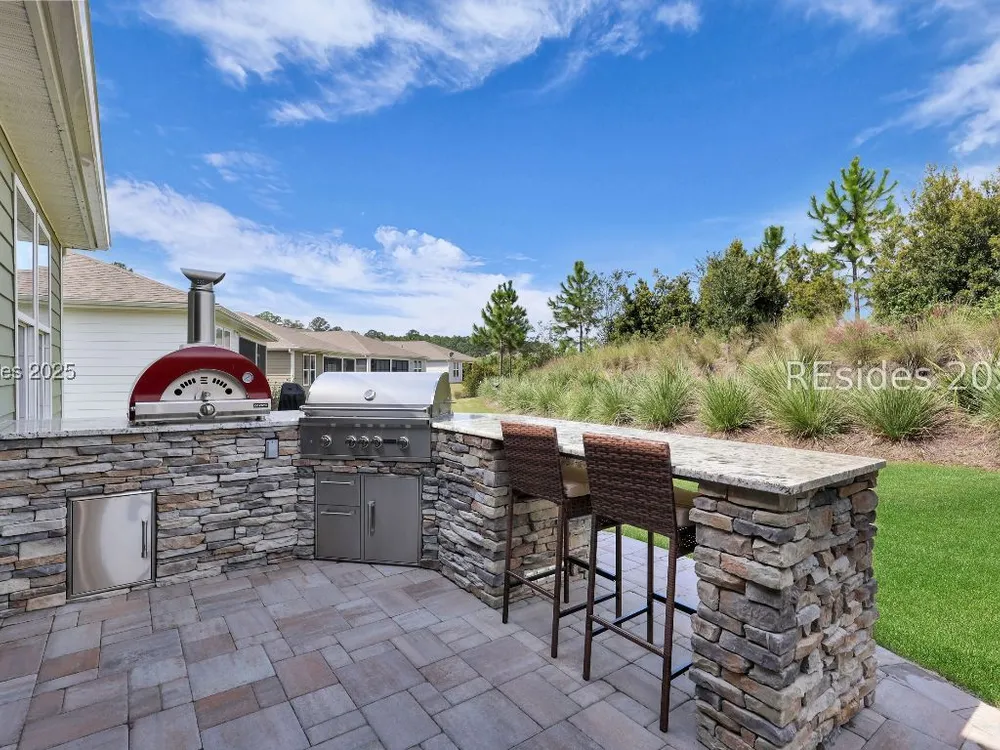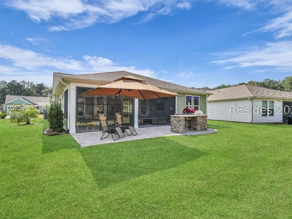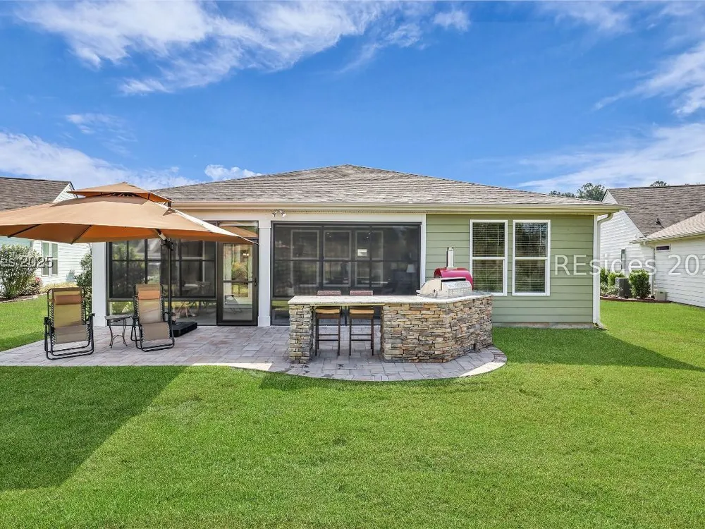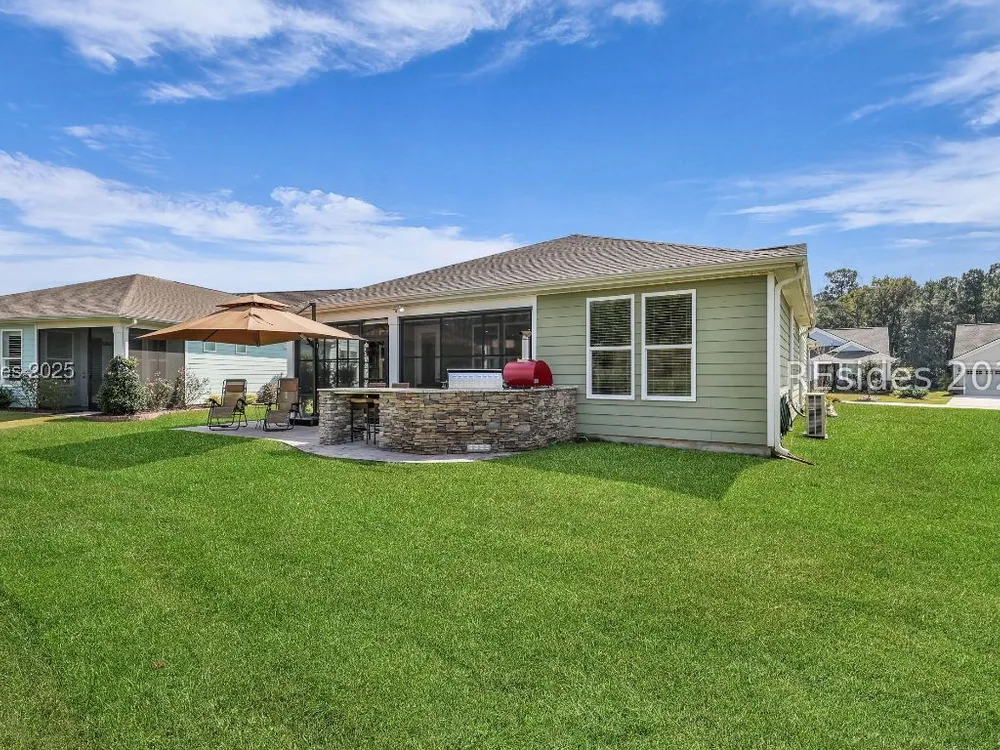 This stunning Palmary model in Sun City Hilton Head is packed with upgrades and designed for easy Lowcountry living. The chef's kitchen features quartz countertops, farmhouse sink, gas range, Samsung Bespoke refrigerator, custom pantry, and stylish lighting, opening to a gathering room with tray ceiling, built-ins, electric fireplace, surround sound, and an inviting yet elevated feel. The office includes built-ins with a Murphy bed, while the primary suite offers a spa-inspired super shower and custom-organized closet. Outdoor living steals the show with a climate-controlled lanai featuring vinyl windows, mini-split system, epoxy floors, and TV hookup, plus a paver patio and full outdoor kitchen with grill and pizza oven. Additional highlights include an extended driveway and garage. With over $116,000 in owner investments and $135,000 in Pulte upgrades, this home is priced to sell and is an exceptional opportunity to own one of Sun Citys most impressive residences while enjoying golf, pools, fitness centers, pickleball, tennis, dog parks, trails, and hundreds of clubs. Video coming soon! Please see full list of owner investments and Pulte upgrades in MLS documents.