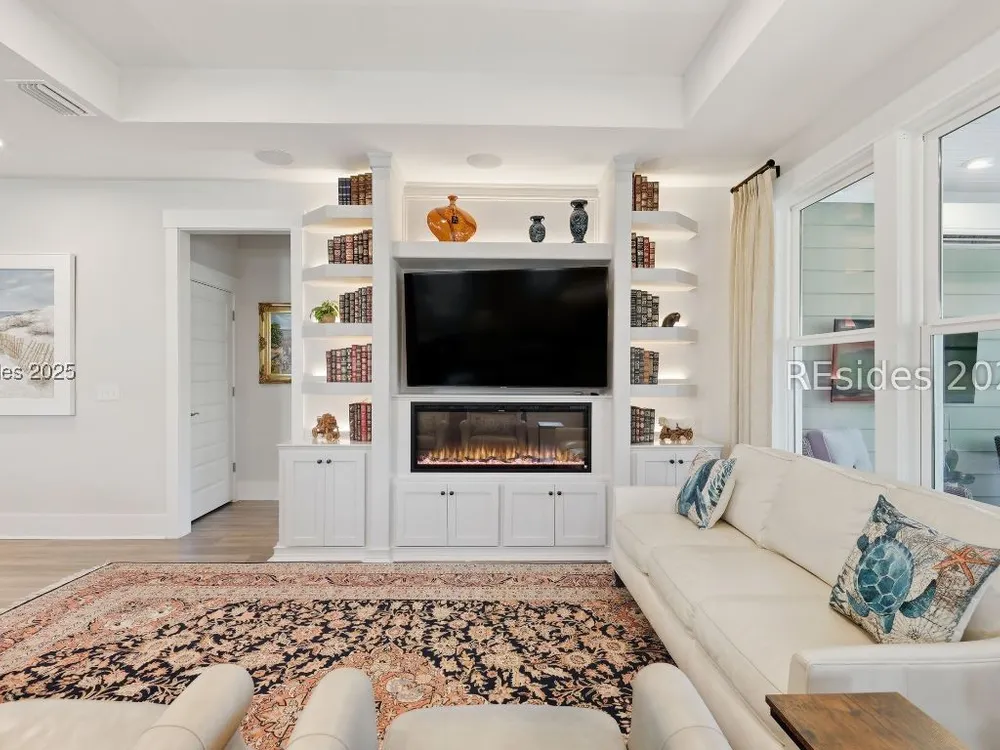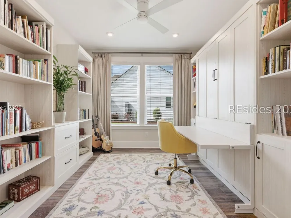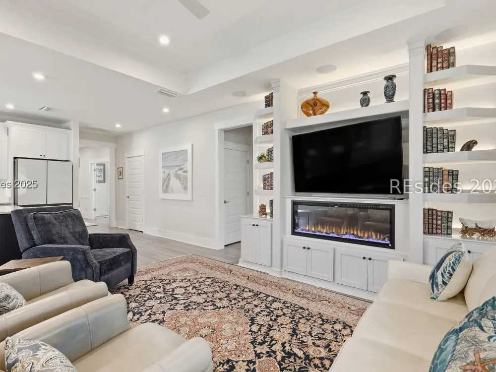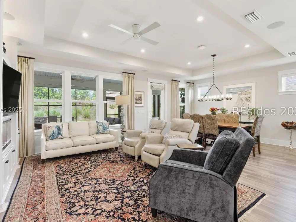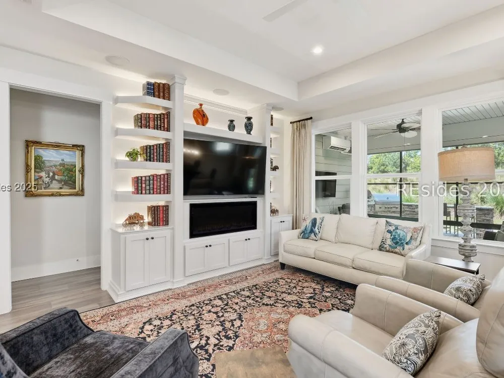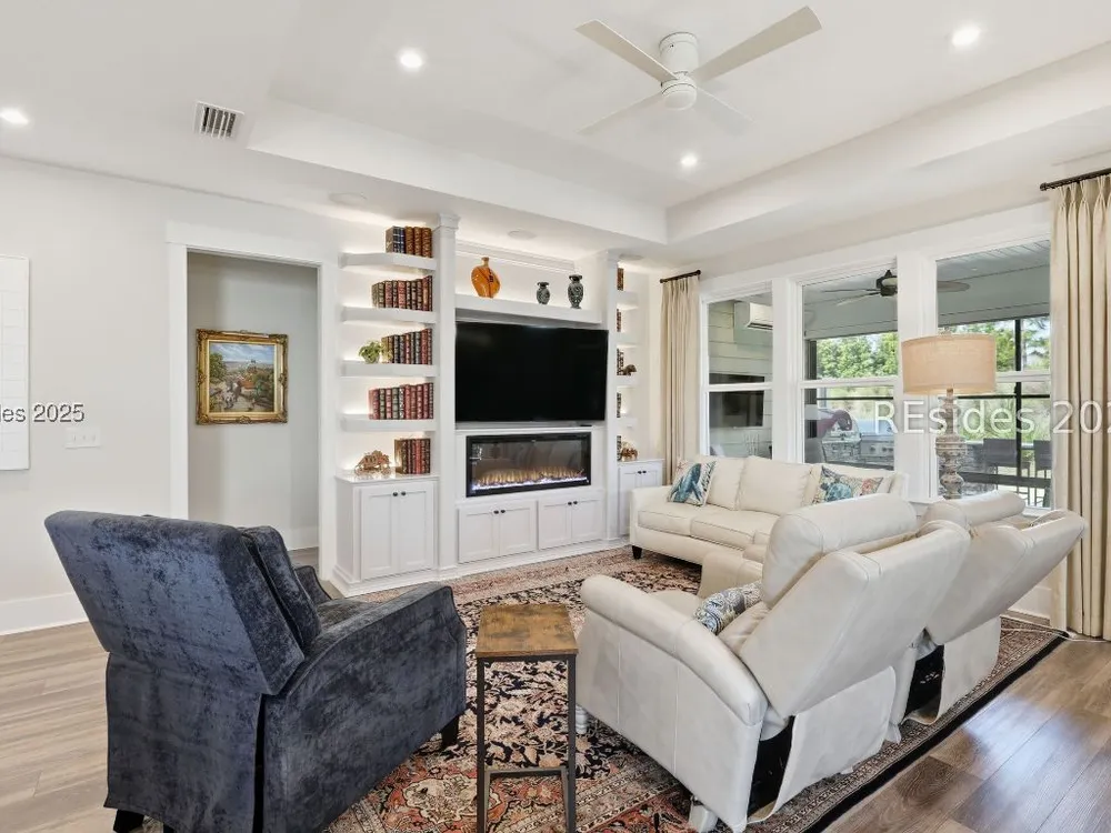 This stunning Palmary model in Sun City Hilton Head is packed with upgrades and designed for easy Lowcountry living. The chef's kitchen features quartz countertops, farmhouse sink, gas range, Samsung Bespoke refrigerator, custom pantry, and stylish lighting, opening to a gathering room with tray ceiling, built-ins, electric fireplace, surround sound, and an inviting yet elevated feel. The office includes built-ins with a Murphy bed, while the primary suite offers a spa-inspired super shower and custom-organized closet. Outdoor living steals the show with a climate-controlled lanai featuring vinyl windows, mini-split system, epoxy floors, and TV hookup, plus a paver patio and full outdoor kitchen with grill and pizza oven. Additional highlights include an extended driveway and garage. With over $116,000 in owner investments and $135,000 in Pulte upgrades, this home is priced to sell and is an exceptional opportunity to own one of Sun Citys most impressive residences while enjoying golf, pools, fitness centers, pickleball, tennis, dog parks, trails, and hundreds of clubs. Video coming soon! Please see full list of owner investments and Pulte upgrades in MLS documents.