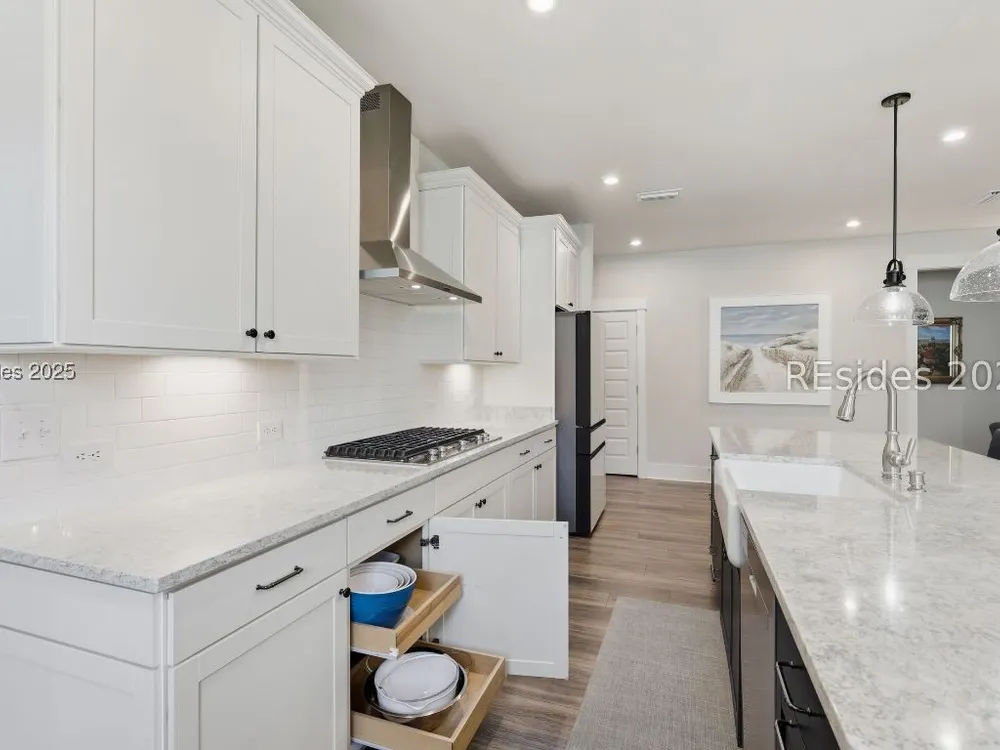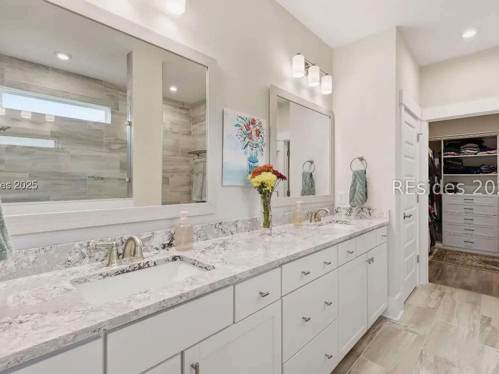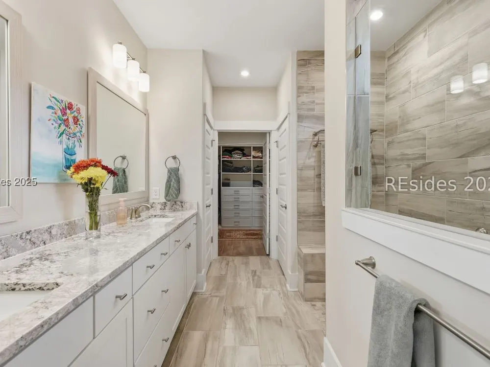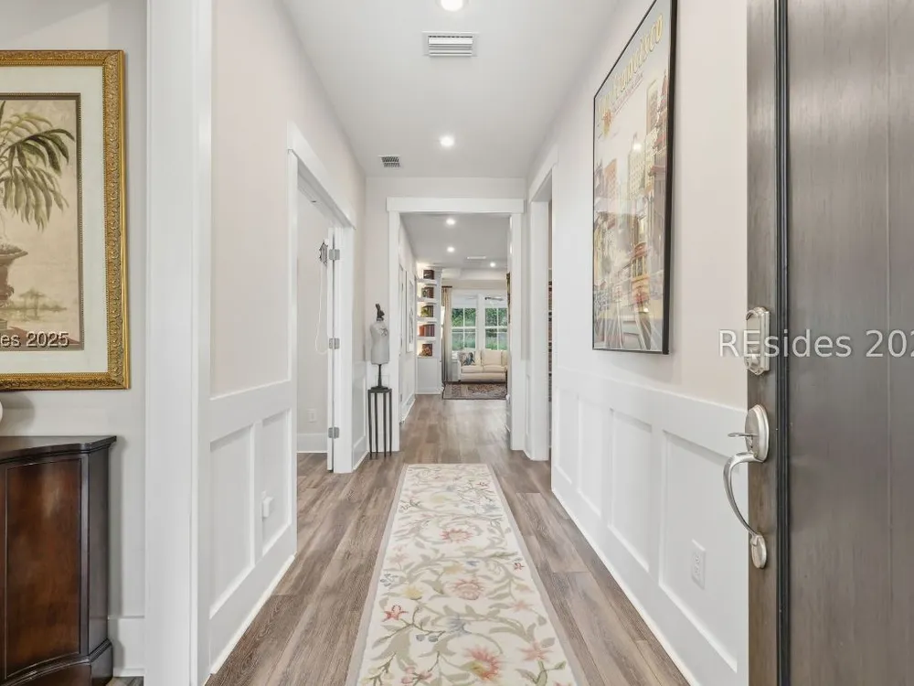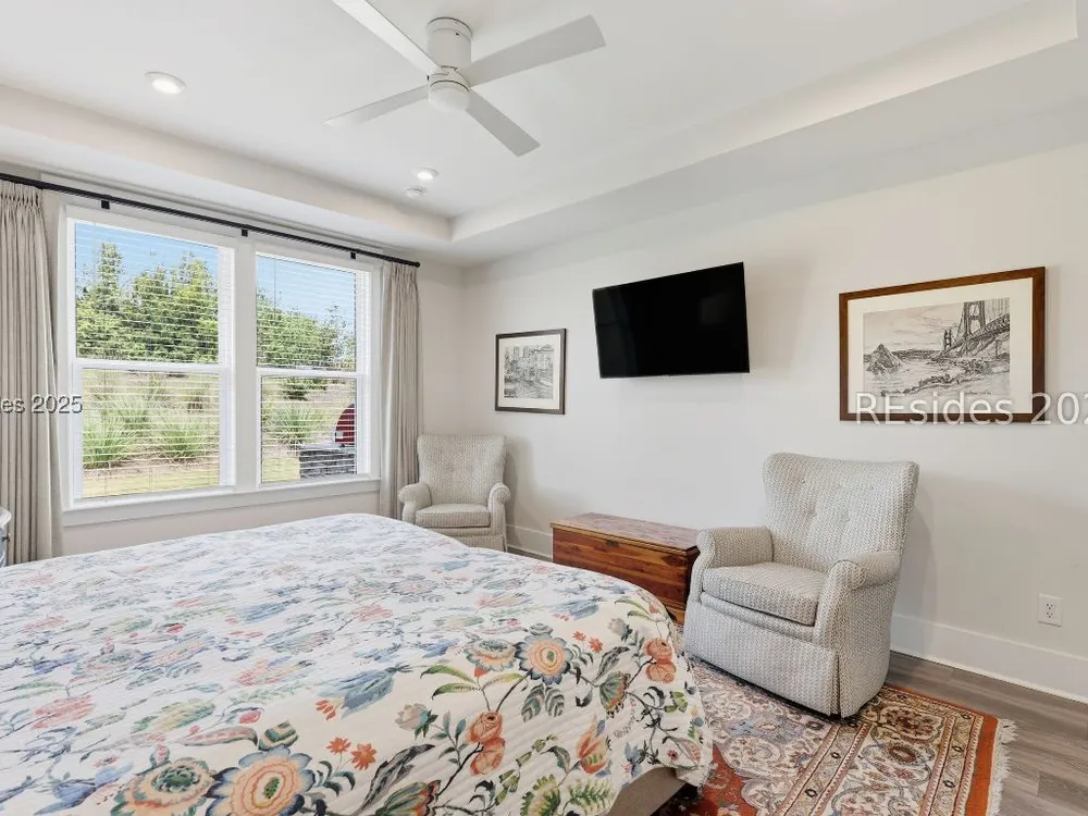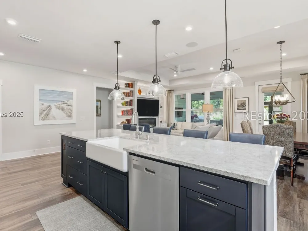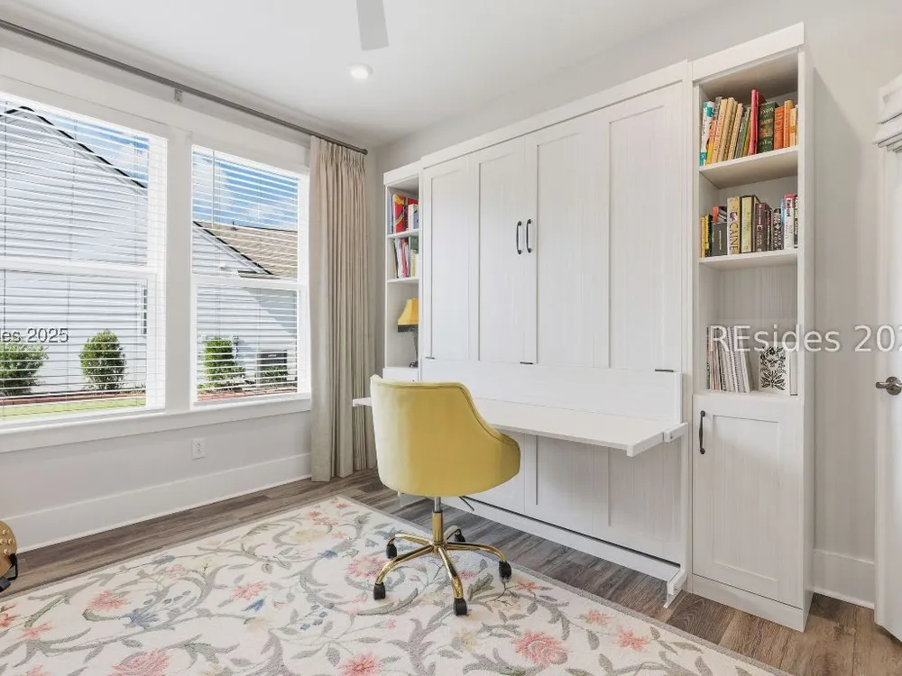 This stunning Palmary model in Sun City Hilton Head is packed with upgrades and designed for easy Lowcountry living. The chef's kitchen features quartz countertops, farmhouse sink, gas range, Samsung Bespoke refrigerator, custom pantry, and stylish lighting, opening to a gathering room with tray ceiling, built-ins, electric fireplace, surround sound, and an inviting yet elevated feel. The office includes built-ins with a Murphy bed, while the primary suite offers a spa-inspired super shower and custom-organized closet. Outdoor living steals the show with a climate-controlled lanai featuring vinyl windows, mini-split system, epoxy floors, and TV hookup, plus a paver patio and full outdoor kitchen with grill and pizza oven. Additional highlights include an extended driveway and garage. With over $116,000 in owner investments and $135,000 in Pulte upgrades, this home is priced to sell and is an exceptional opportunity to own one of Sun Citys most impressive residences while enjoying golf, pools, fitness centers, pickleball, tennis, dog parks, trails, and hundreds of clubs. Video coming soon! Please see full list of owner investments and Pulte upgrades in MLS documents.