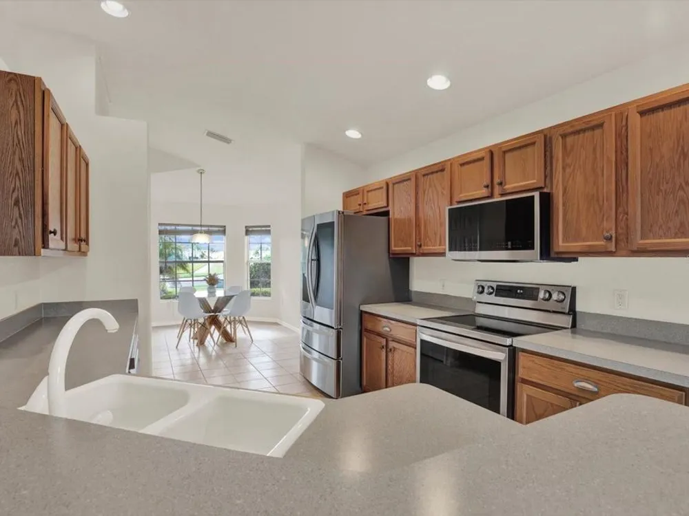 Fabulous Home in Trinity’s Coveted Heritage Springs Village! Don’t miss this rare opportunity to own a beautifully maintained home on a premium corner lot in the sought-after, gated Heritage Springs Village—a pet-friendly, age-restricted community known for its pristine landscaping and resort-style amenities. Enjoy serene pond views from your oversized, screened patio, perfect for relaxing or entertaining. This spacious split-bedroom floor plan features soaring ceilings, a well-appointed kitchen with abundant cabinetry, stainless steel appliances, and a cozy dinette area. The open-concept living and dining space offers seamless indoor-outdoor living with sliding glass doors that frame the tranquil water view. The primary suite includes two walk-in closets and a private en-suite bath with a dual sink vanity and walk-in shower. The second bedroom is conveniently located near a full guest bath with a tub/shower combo. A versatile bonus room provides flexibility for a home office, den, or guest space. Additional highlights include an interior laundry room, oversized two-car garage, and lush, mature landscaping. Heritage Springs offers a clubhouse, fitness center, golf course, tennis courts, resort-style pool and spa, and an active social calendar. Located in a non-flood zone, close to Gulf beaches, shopping, restaurants, and Tampa International Airport. Schedule your private showing today!