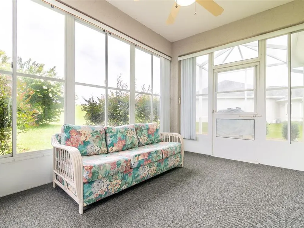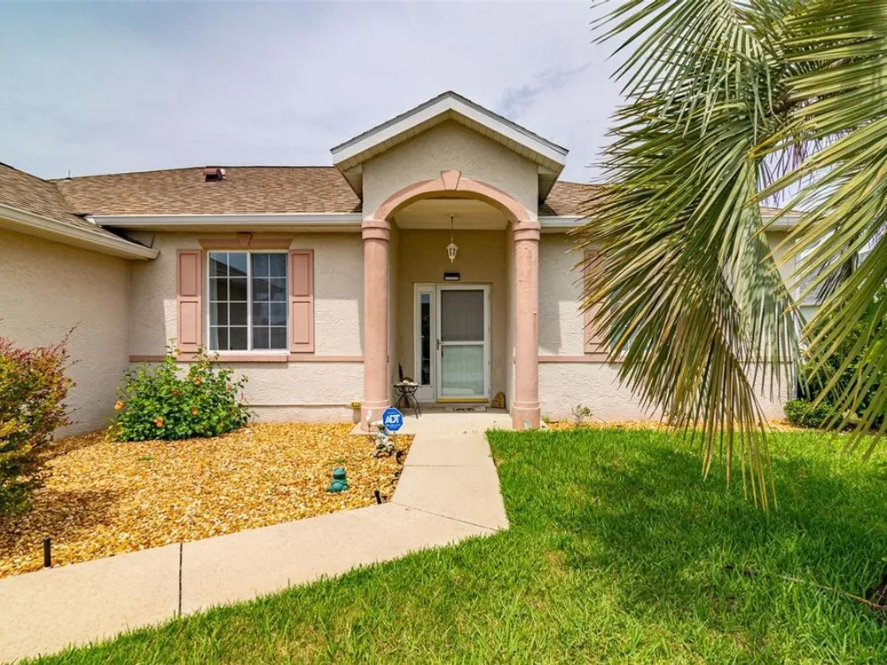 Adult 55+ Community, this is one of the few homes in the Ocala Palms Golf & Country Club that has a full 3 car garage, including a built-in generator with its own built-in electric connection on the wall, a Workshop, (including an Electric grinder) built in air pressure hose, Water softener system, sprinkler system and plenty of cabinets for storage. This 3 bedroom 2-bathroom home includes a complete security system with remote control, glass breakage, and motion sensor. Immediately notice high ceilings throughout, a large living room, with a beautiful brick gas fireplace for those chilly nights, a formal dining room, as well as an eat-in kitchen with a bay window overlooking the golf course. The split floor plan gives you that extra privacy in your master suite. The third bedroom includes a murphy bed which folds into the wall. Therefore this 3rd room can also be used as an office! Located near the 15th hole on a .26-acre oversized lot, backing up to a raised green area on the Golf Course making your backyard view extremely private! Enjoy watching the sunset from one of the two lanais. One is enclosed with new windows installed March 22, 2023; couch will be staying. The adjacent lanai is screened in and includes a grill, making it perfect for entertaining and grilling. Upgrades include a New A/C in 2020, Laminate Flooring & Roof Replacement in 2014. The Community Amenities include the following: an indoor heated pool, outdoor pool, hot tub, pool tables, Library, tennis courts, pickleball, exercise room & periodic functions including concerts to name a few. Freezer in the garage will be removed by the seller. This property is for lease or sale, whichever happens first.