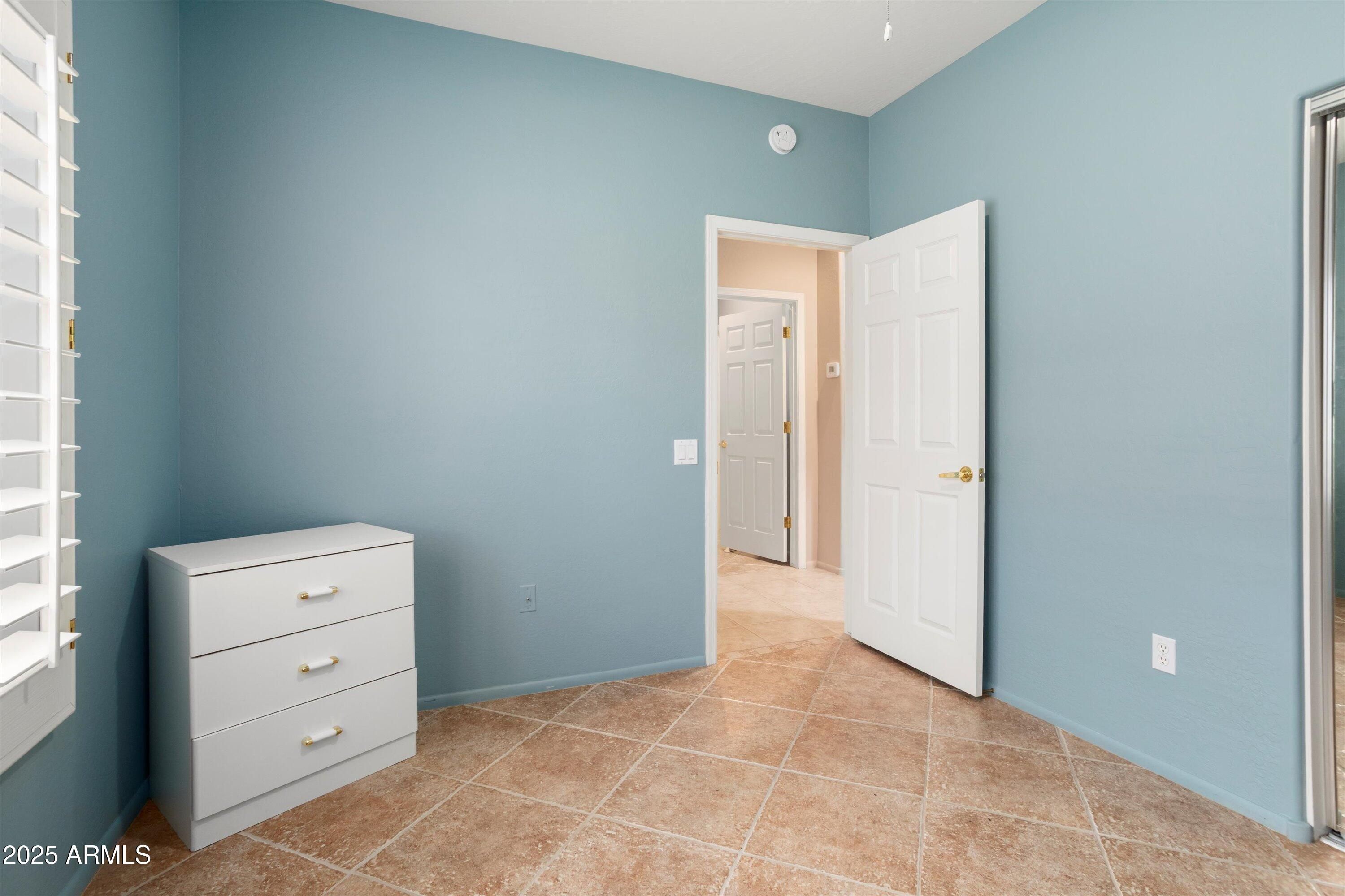 One of the nicest lots and one of Sun City Grand's most sought-after floor plans! This 2-bed, 2-bath home with double garage exudes comfort & low-maintenance living in a vibrant community lifestyle. Inside, enjoy the open layout, plantation shutters, and a kitchen with ample cabinetry and a cozy breakfast nook. The spacious primary suite features a bay window bump-out and a large walk-in closet, with a guest room for visitors or hobbies. Step into one of the most serene backyards in The Grand with a covered extended patio, perfect for enjoying AZ evenings. Residents have access to four championship golf courses, two fitness centers, a spa, pools, tennis and pickleball courts, walking trails, and restaurants. This floor plan sells fast, don't miss your chance to make it yours