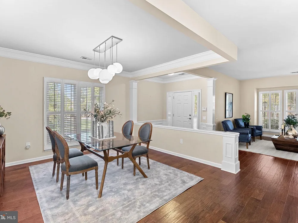 ✨ RARE ONE-LEVEL LIVING IN RIVER RIDGE! ✨ Welcome to this beautifully maintained Thurston model, a highly desirable and rarely available one-level floor plan offering 1,960 sq. ft. of elegant living space in the sought-after River Ridge 55+ community. Situated on a premium .26-acre lot—one of the largest and most private in the neighborhood—this home combines comfort, style, and convenience all on a single level. Step inside to find an inviting open floor plan with hardwood and tile flooring, elegant crown molding, and plantation shutters throughout. The formal living and dining rooms boast a tray ceiling and abundant natural light, flowing seamlessly into a spacious family room with a gas fireplace. The large eat-in kitchen features stainless steel appliances, refinished cabinets, and a layout that’s perfect for everyday living and entertaining. Enjoy the bright sunroom with vaulted ceiling, which opens to a fenced-in brick patio with garden uplighting—a serene outdoor retreat. The primary suite offers a generous layout with a luxurious renovated bath, complete with a soaking tub, separate shower, and double vanity. Recent Updates: 🪟 Windows (2020) ❄️ HVAC (2019) – 10-year warranty 💧 Water Heater (2021) 🛁 Bathrooms fully renovated (2019) 🎨 Interior paint by John the Painter (2016–2019) 🌿 Hardwood & Tile Floors (2016) 🍽️ Kitchen appliances: refrigerator, stove & dishwasher (2016); microwave (2020) 🚪 Garage door & opener (2020) 🌞 Plantation shutters (2016–2017) 🌳 Fence refinished & stained (2025) 💦 Power washed (2025) Enjoy resort-style living with access to the clubhouse, pool, fitness center, tennis, walking trails, and a community filled with friendly neighbors. All of this just minutes from the Occoquan River, shopping, dining, and major commuter routes. Don’t miss your chance to own one of River Ridge’s most desirable homes — where elegance meets effortless one-level living.