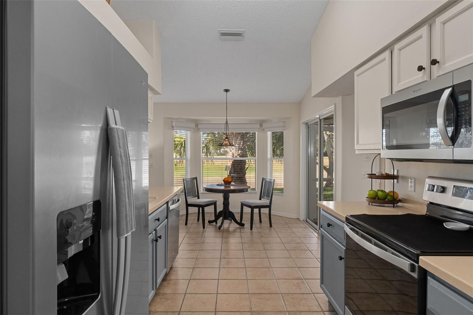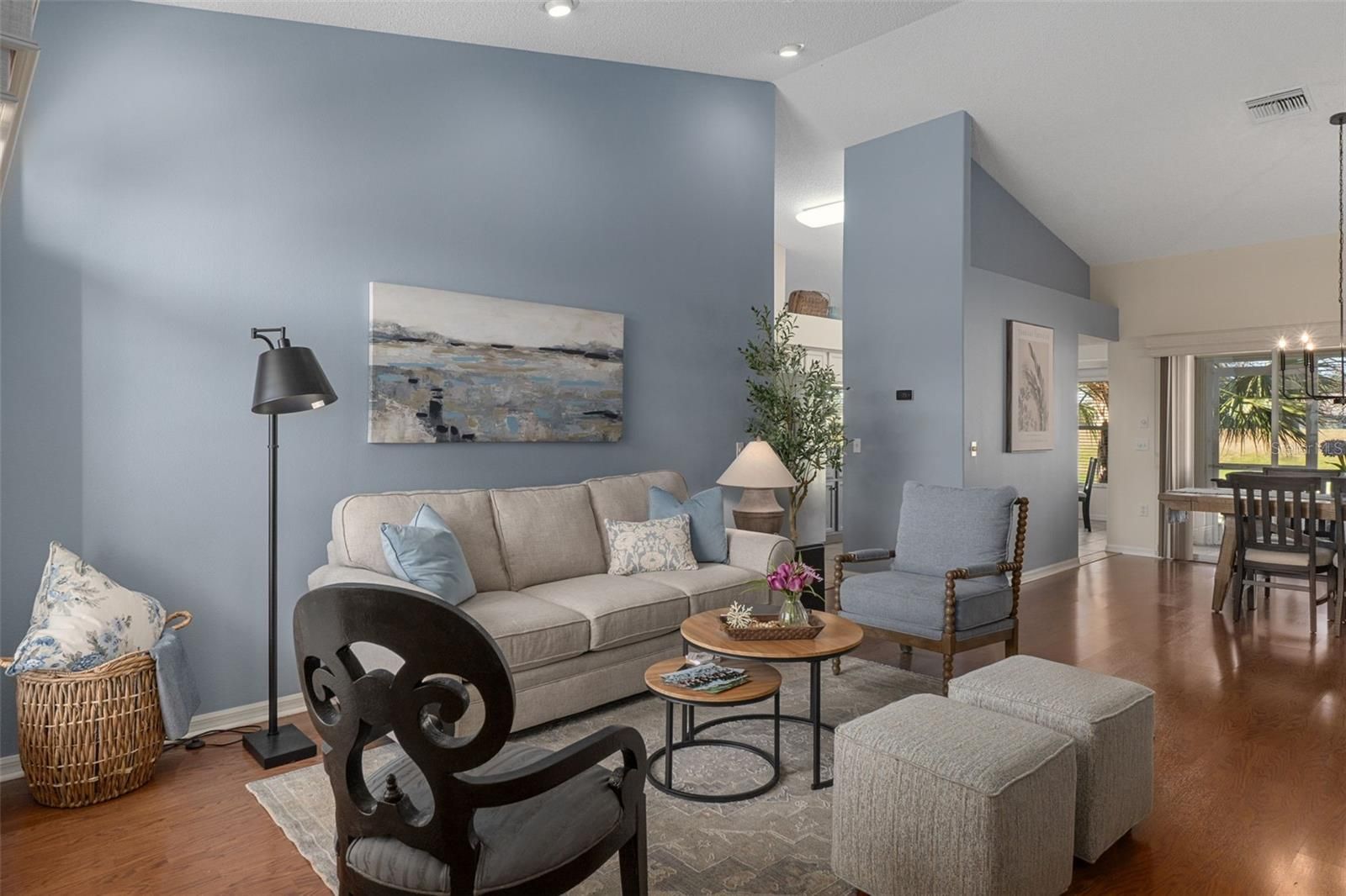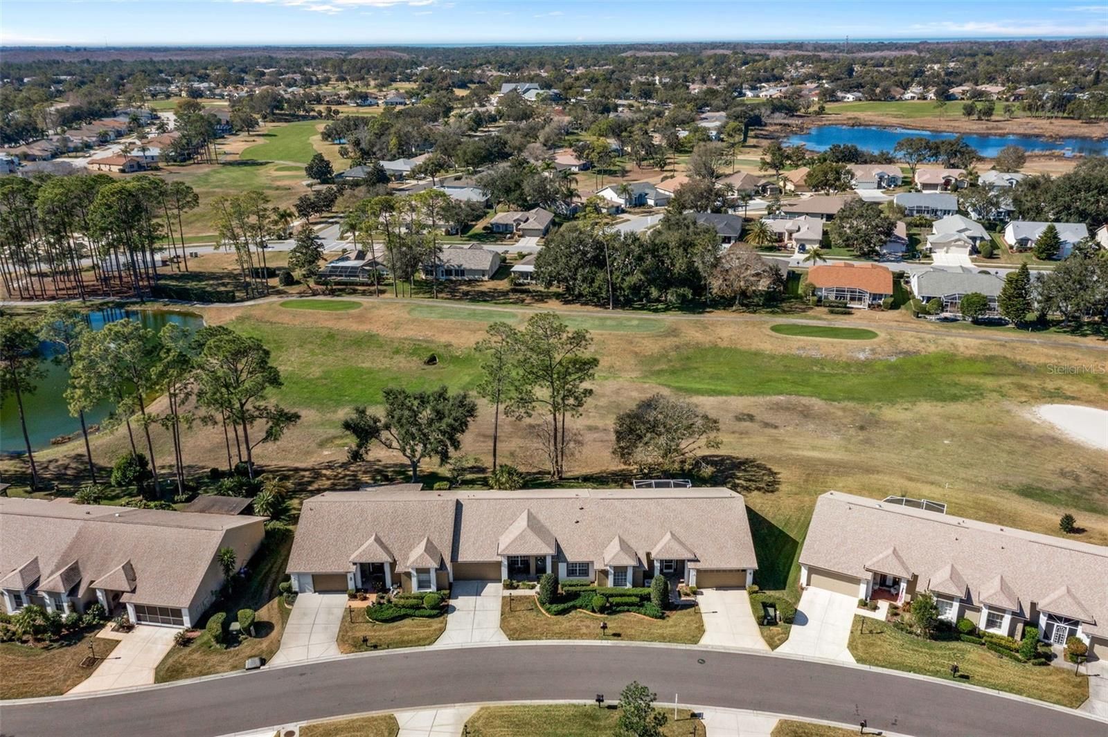 Stunning Golf-Course Villa in Heritage Pines! Welcome to carefree Florida living in this beautifully updated villa overlooking serene golf course views with no rear neighbors. This spacious residence offers two bedrooms, two bathrooms, and a two-car garage, all designed with comfort and style in mind. The open floor plan is enhanced by gorgeous laminate and ceramic tile flooring, fresh interior and exterior paint, and a bright, modern kitchen featuring updated and attractive cabinetry, gorgeous quartz countertops, and newer stainless-steel appliances. Recent upgrades provide peace of mind, including a roof replaced in 2022, AC system (2018) with Nest thermostat, and a large-capacity hot water heater (2021). The convenient inside laundry room includes a newer washer and brand-new dryer. Step outside to the screened rear porch and enjoy tranquil golf course views—perfect for morning coffee or relaxing sunsets. The home may be sold fully furnished if desired, making it truly move-in ready. Located in the 24-hour gated, guard-secured community of Heritage Pines, residents enjoy an unmatched resort-style lifestyle. Amenities include a newly renovated clubhouse, restaurant with amazing chefs and bar, performing arts center, heated pool and jacuzzi, library, craft and woodworking rooms, and countless social clubs and activities. Stay active with golf on the pristine resident-owned course, pickleball, tennis, bocce ball, billiards, yoga, aerobics, and more. The HOA fee covers high-speed internet, cable, lawn care, and pest control, allowing you to focus on enjoying life. Conveniently located near the Tampa Bay beaches and the natural beauty of Florida’s Nature Coast, this home offers the perfect blend of relaxation, recreation, and community. This is more than a home—it’s an opportunity to embrace a vibrant, resort-like lifestyle in a welcoming community. Schedule your private showing today and start your next chapter at Heritage Pines.