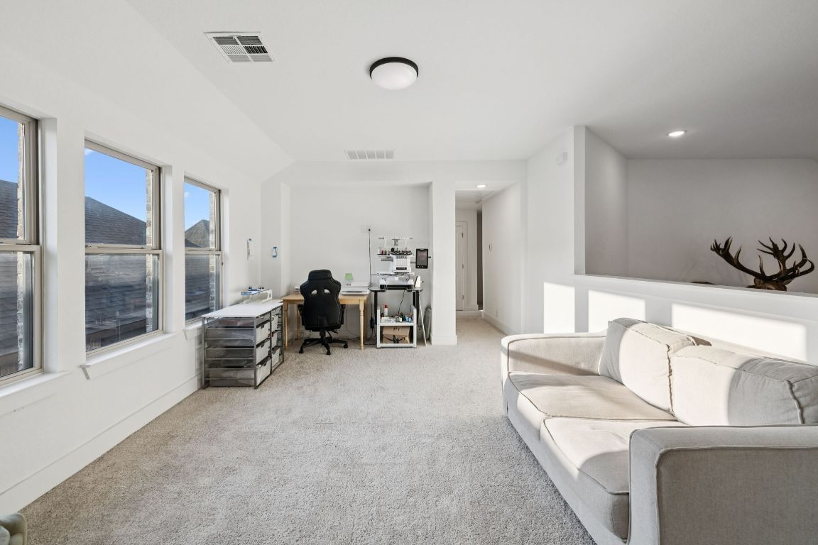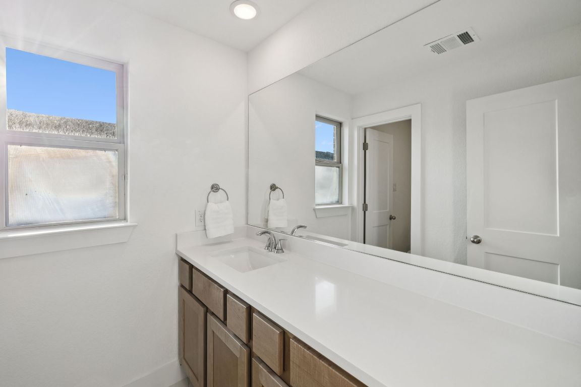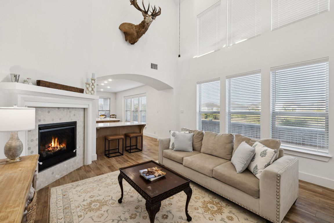 Welcome to Veramendi — New Braunfels living at its best! This corner-lot home blends privacy, style, and function, all while keeping you minutes from downtown, rivers, and the Hill Country. The neighborhood itself is a lifestyle upgrade with a resort-style pool, parks, and miles of jogging trails right outside your door. Step inside this 2023 build to a bright, open-concept layout where soaring ceilings and expansive windows fill the home with natural light. The living room centers around a fireplace, while the chef’s kitchen shines with quartz countertops, stylish backsplash, premium appliances, a walk-in pantry, and under-cabinet lighting. Perfect flow between kitchen, dining, and living makes entertaining effortless. The downstairs primary suite is a true retreat, complete with a large window seat and a fully remodeled en-suite bath boasting a marble double vanity with gold accents, standalone soaking tub, tiled walk-in shower, and an expansive walk-in closet with built-ins. Upstairs, a versatile loft pairs with spacious bedrooms, each with walk-in closets, and a full bath with quartz vanity. Additional features include wood tile flooring in main spaces, multiple storage closets, utility room with hanging rod, two tankless water heaters, reverse osmosis system, water softener, and security pre-wire. The covered back porch is ideal for relaxing, and the epoxy-floored garage with built-in shelving adds both function and style. Here in Veramendi, you’re not just buying a house — you’re stepping into the New Braunfels lifestyle.