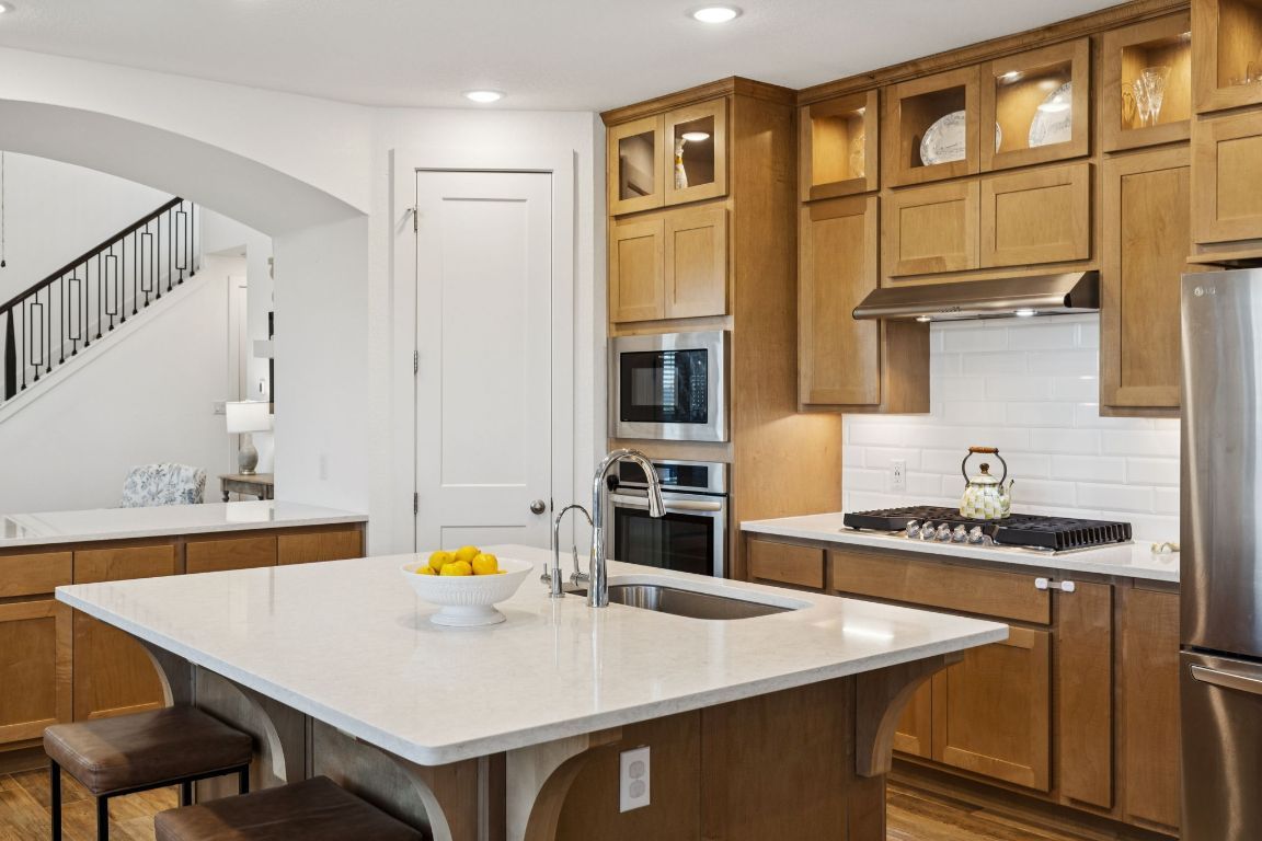 - Built-In Electric Oven, Dishwasher, Gas Cooktop, Disposal, Microwave, Water Softener Owned, Tankless Water Heater