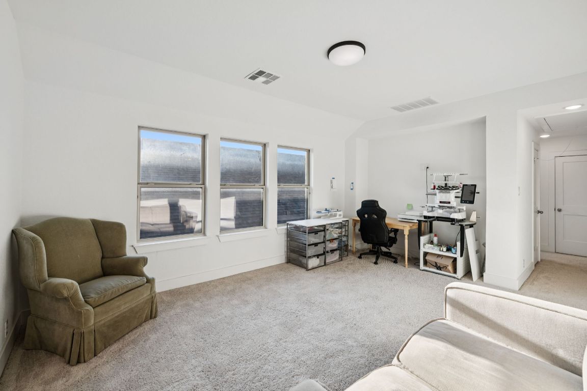 - Breakfast Bar, Ceiling Fan(s), Double Vanity, Eat-in Kitchen, High Ceilings, Multiple Living Areas, Main Level Primary, Pantry, Quartz Countertops, Stone Counters, Recessed Lighting, Storage, Soaking Tub, Walk-In Closet(s)