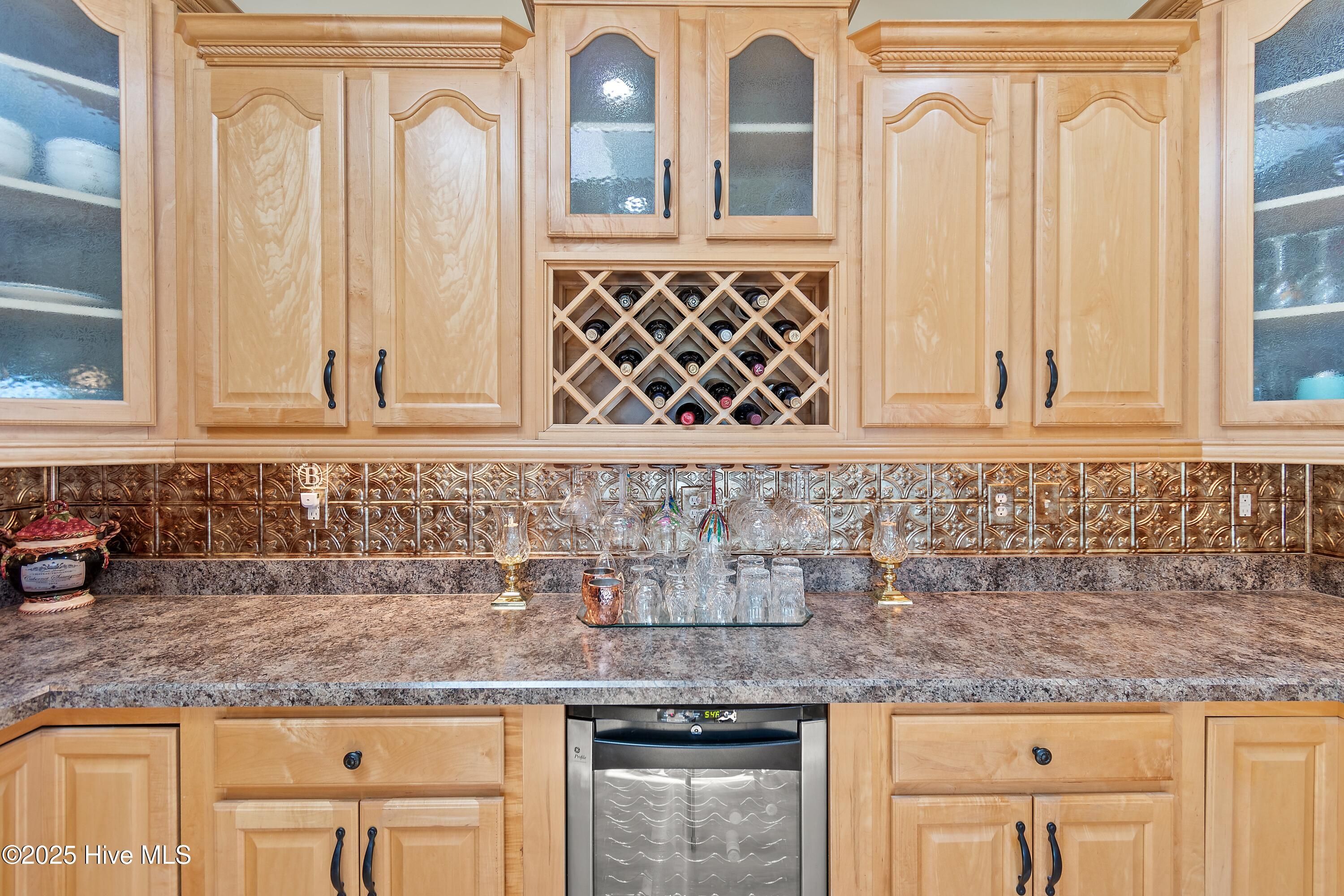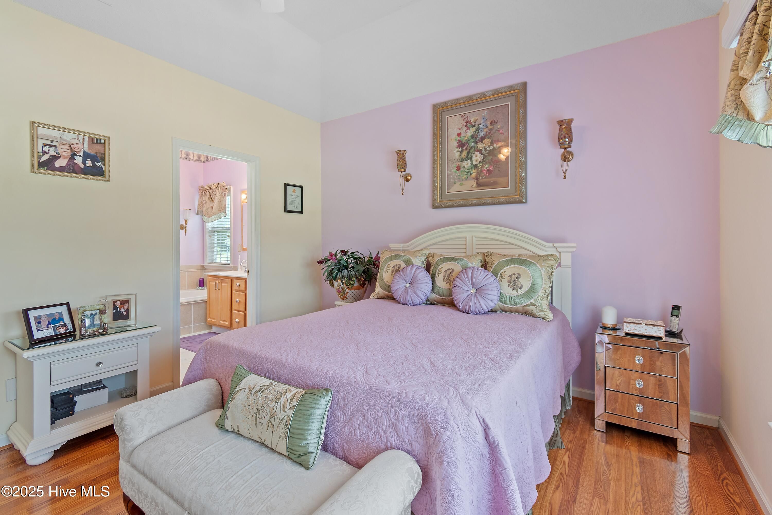 Welcome HOME! Located in the Charleston Place section of Brunswick Plantation, this is a one owner home that has been impeccably maintained. Enjoy a golf-front view of the 7th tee box on the Magnolia's course. Views are enjoyed from your primary suite as well as your open concept living/dining area. This home is truly ''one of a kind'', with a specially crafted floorplan unlike any other within this private gated community. Your kitchen is enlarged to include a wine chiller and wet bar. A movable kitchen island to maximize space, extra-large pantry, undercounter lighting, new built-in microwave and tons of counter-top space. Your living area will be complete with high vaulted ceilings, a built-in electric fireplace and LVP wood floors. In your spacious primary suite enjoy a walk-in closet and en-suite bathroom. The primary bath will feature double vanity sinks, low entry level shower, garden soaker tub, ceramic tile and a heat lamp for added comfort in the cooler months. The ground floor level guest bedroom will include a large inviting front window and spacious closet. The upstairs guest bedroom will have its own en-suite bathroom, built in drawers for storage and to maximize space and have a separately zoned air conditioning control for added ease when you have guests in town. This home did not spare a detail from the upgraded stained glass windows in the front entryway foyer, to the decorative cornices on the windows, a central vacuum and extra large closet space on the ground floor. Have peace of mind when purchasing this home with a full appliance package and transferable termite bond. Here you will have an upgraded hot water heater in 2016 and upgraded HVAC unit in 2014. This home has a large double car garage, fully zoned irrigation system and large exterior storage room. Enjoy community indoor/outdoor pools, tennis/pickleball courts, spa, fitness facility, on-site bar and restaurant, 3 on-site golf courses and the Brunswick house. View today
