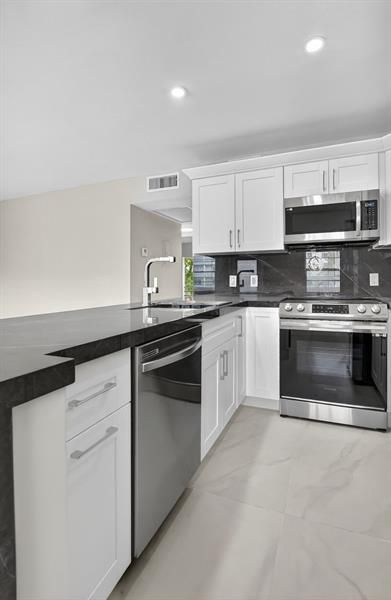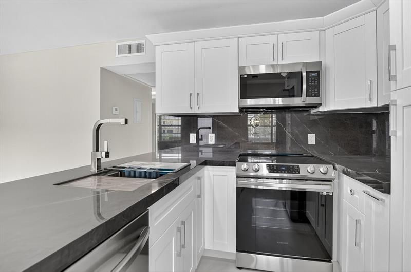 This completely renovated 2-bedroom, 1.5-bath condo on the 2nd floor has been transformed with over $80K in upgrades, blending modern elegance with cozy charm. The stylish interior boasts brand-new appliances, sleek marble countertops, and immaculate bathrooms that radiate sophistication. Enjoy relaxing on the spacious private screened-in balcony, offering tranquil garden views. Ideally located close to the beach, I-95, and within walking distance of the Upminster community pool, house of worship, and numerous other amenities. The community offers a clubhouse with a state-of-the-art fitness center, movie theater, indoor pool, tennis, pickleball, saunas and shuffleboard courts, plus a free shuttle service to malls and grocery stores. This unit is vacant, easy to show. 55+ community.