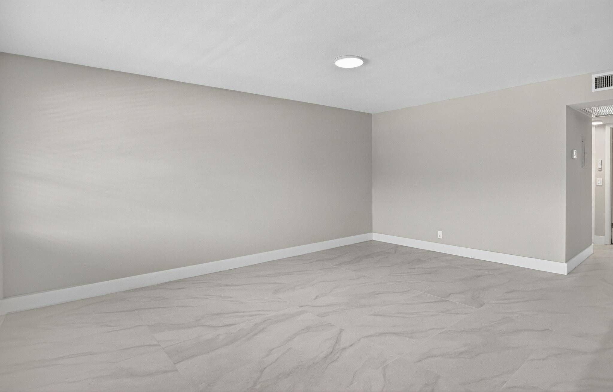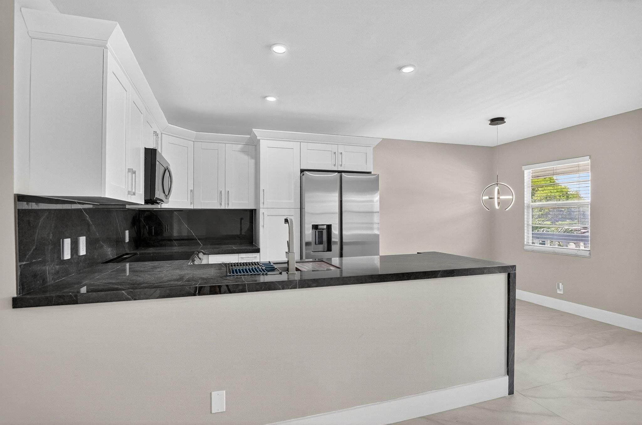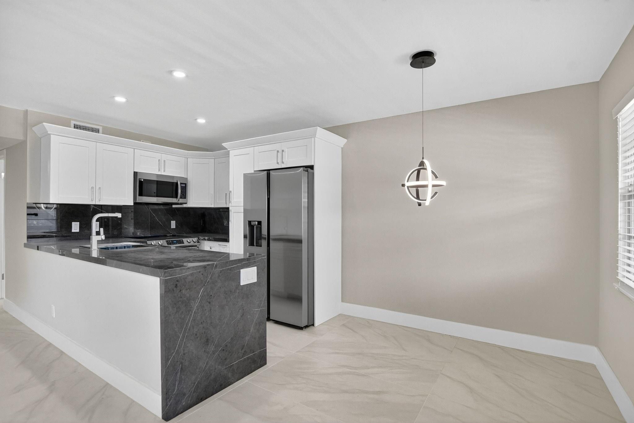 This completely renovated 2-bedroom, 1.5-bath condo on the 2nd floor has been transformed with over $80K in upgrades, blending modern elegance with cozy charm. The stylish interior boasts brand-new appliances, sleek marble countertops, and immaculate bathrooms that radiate sophistication. Enjoy relaxing on the spacious private screened-in balcony, offering tranquil garden views. Ideally located close to the beach, I-95, and within walking distance of the Upminster community pool, house of worship, and numerous other amenities. The community offers a clubhouse with a state-of-the-art fitness center, movie theater, indoor pool, tennis, pickleball, saunas and shuffleboard courts, plus a free shuttle service to malls and grocery stores. This unit is vacant, easy to show. 55+ community.