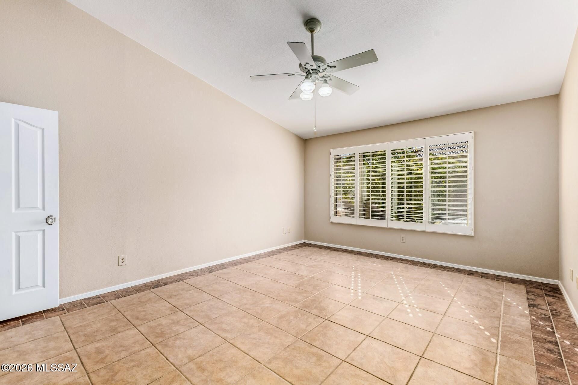 Welcome to Quail Creek, a Resort Community offering first-class amenities for an active lifestyle that is both physically and socially engaging. This home features a 1,569 sq. ft. split floor plan with two bedrooms, two bathrooms, and a den. Ceramic tile flooring and wood plantation shutters on all windows. Outside, the covered back patio and mostly enclosed yard are designed for privacy and easy maintenance, including built-in seating. The front yard is completely enclosed, providing saftey and shade for you and your fur babies. This home also has a 3 car garage that is large enough to use as a craft room, workshop or golf cart parking.