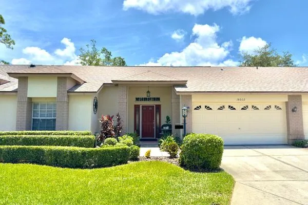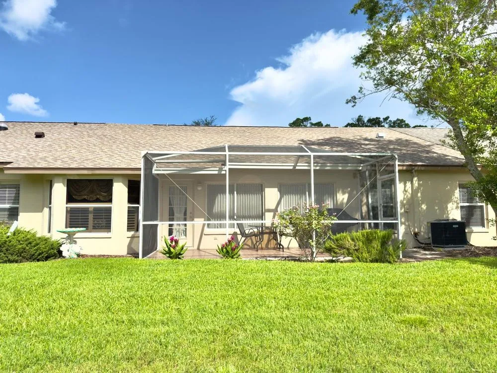 Welcome to your new turnkey villa in the highly sought-after Heritage Pines 55+ Golf Community. This beautifully maintained 2-bedroom, 2-bathroom villa offers a spacious and open split-bedroom floor plan with soaring ceilings that create a spacious feel. The open-concept layout seamlessly connects the family room, living room, and dining area—perfect for both everyday living and entertaining guests. The remodeled kitchen features granite countertops, updated cabinetry, a closet pantry, a breakfast bar, and a cozy dinette area. The primary suite boasts LVP flooring, dual walk-in closets, and a private en-suite bathroom complete with a walk-in shower, large vanity, and built-in makeup desk. The guest bedroom offers newer carpeting and its own spacious walk-in closet. Enjoy the convenience of an indoor laundry room, complete with built-in cabinets, a utility sink, and a washer and dryer included. Step outside to a screened-in patio overlooking a peaceful greenbelt—offering privacy and no rear neighbors. Major updates provide peace of mind, including a brand-new roof (June 2025), new HVAC system (2023), and water heater (2019). The foundation was professionally remediated and reinforced in 2024 and comes with a transferable lifetime warranty—fully insurable. Offered mostly furnished included (with the option to clear out upon request). Heritage Pines is a gated, amenity-rich community featuring a private 18-hole championship golf course, a heated pool and spa, clubhouse, fitness center, restaurant and bar, and courts for tennis, pickleball, bocce, and much more. HOA fees cover cable, internet, lawn care, irrigation, and exterior painting—making for a low-maintenance lifestyle. Be sure to check out the 3D virtual tour and schedule your private showing today.