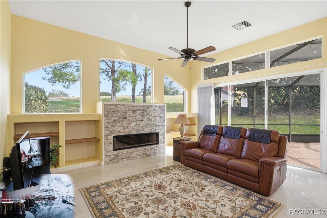 Beautifully updated 4-bedroom home where no expense was spared during the remodel. This open and bright residence features soaring 12-foot ceilings throughout and an abundance of windows that fill the home with natural light. The interior has been freshly painted, including the garage. Elegant 24" x 24" porcelain tile runs throughout the home except in the primary suite and fourth bedroom. Some of the recent upgrades include striking new double entry front doors, a fully remodeled kitchen with new cabinetry, quartz countertops, updated lighting, new appliances and more. The primary bathroom has also been tastefully upgraded with a new vanity, cabinetry, quartz countertops, and additional enhancements. Enjoy a large, private rear lanai with brick pavers, recently rescreened, and no rear neighbors for added privacy. The home offers both a formal living room and a spacious family room featuring a stacked stone fireplace and oversized windows. The over 800 sq. ft. 3-car garage is a standout feature, complete with heat and air conditioning, fully insulated garage doors and ceiling, polyaspartic floor coating, and upgraded lighting—ideal for a hobbyist or car enthusiast. New landscaping and landscape lighting complete this exceptional property. Too many upgrades to list—this home has been meticulously maintained, with true pride of ownership evident throughout. Every detail reflects the care and attention the owners have invested, making this a truly move-in-ready property.