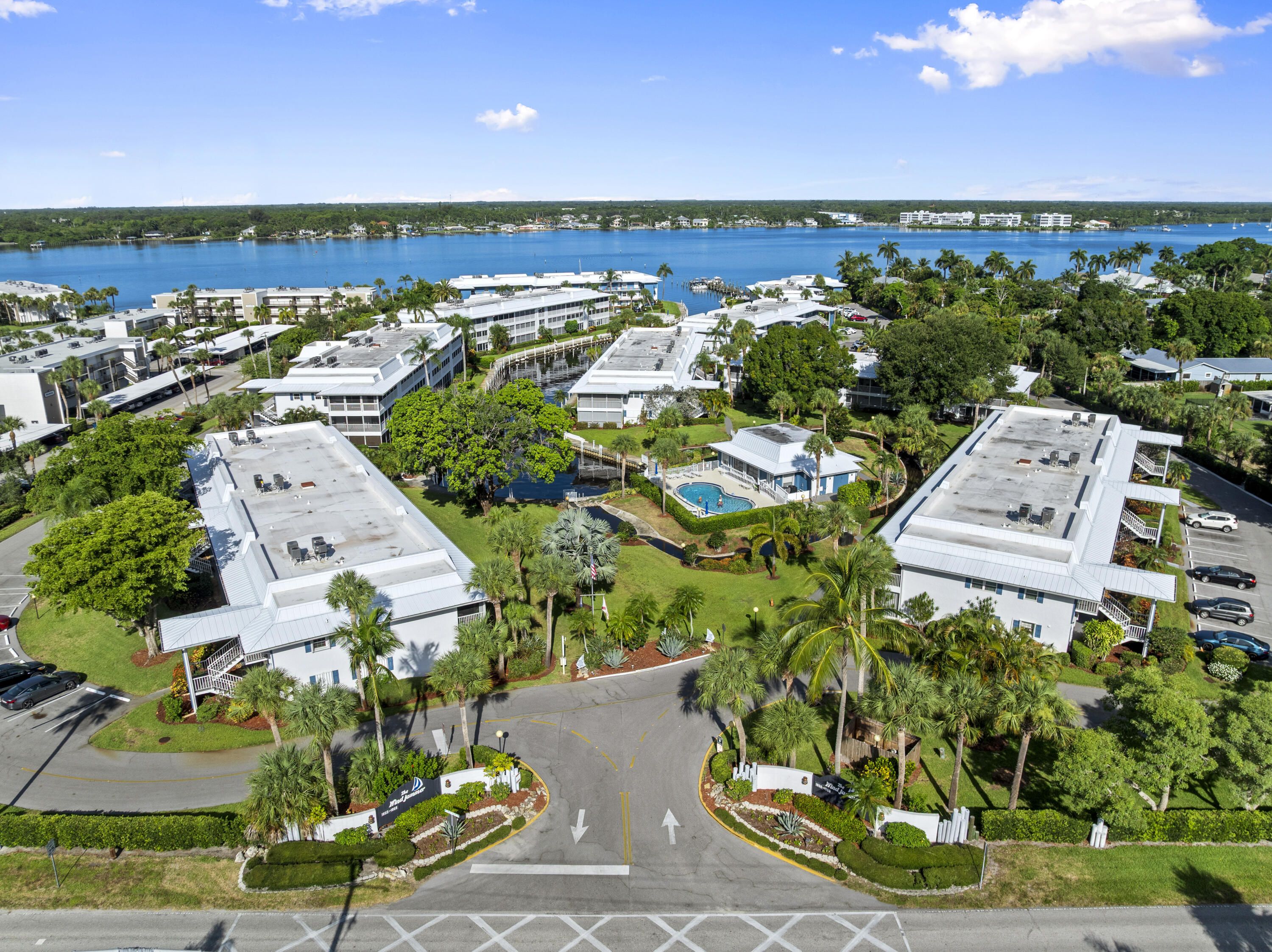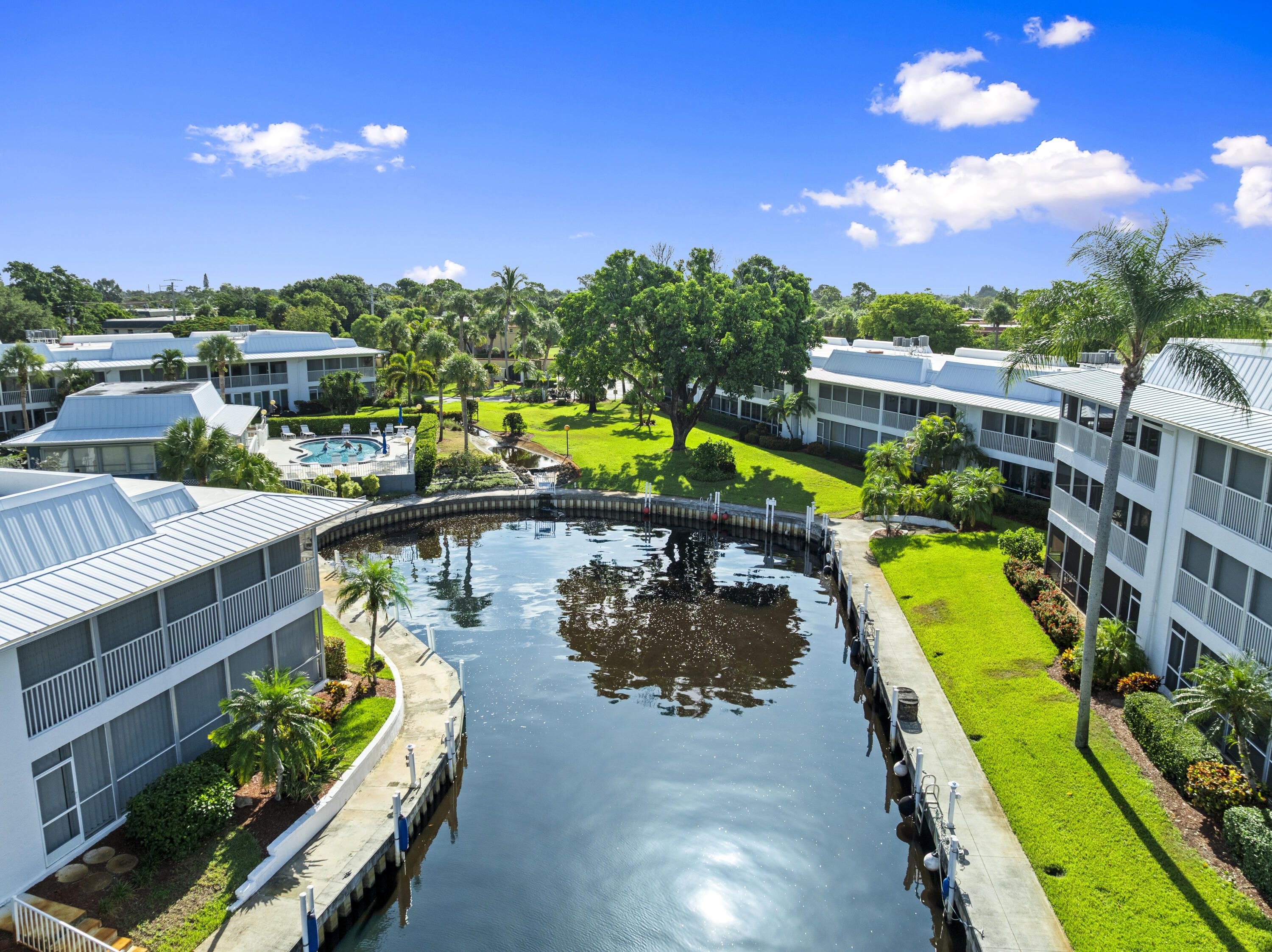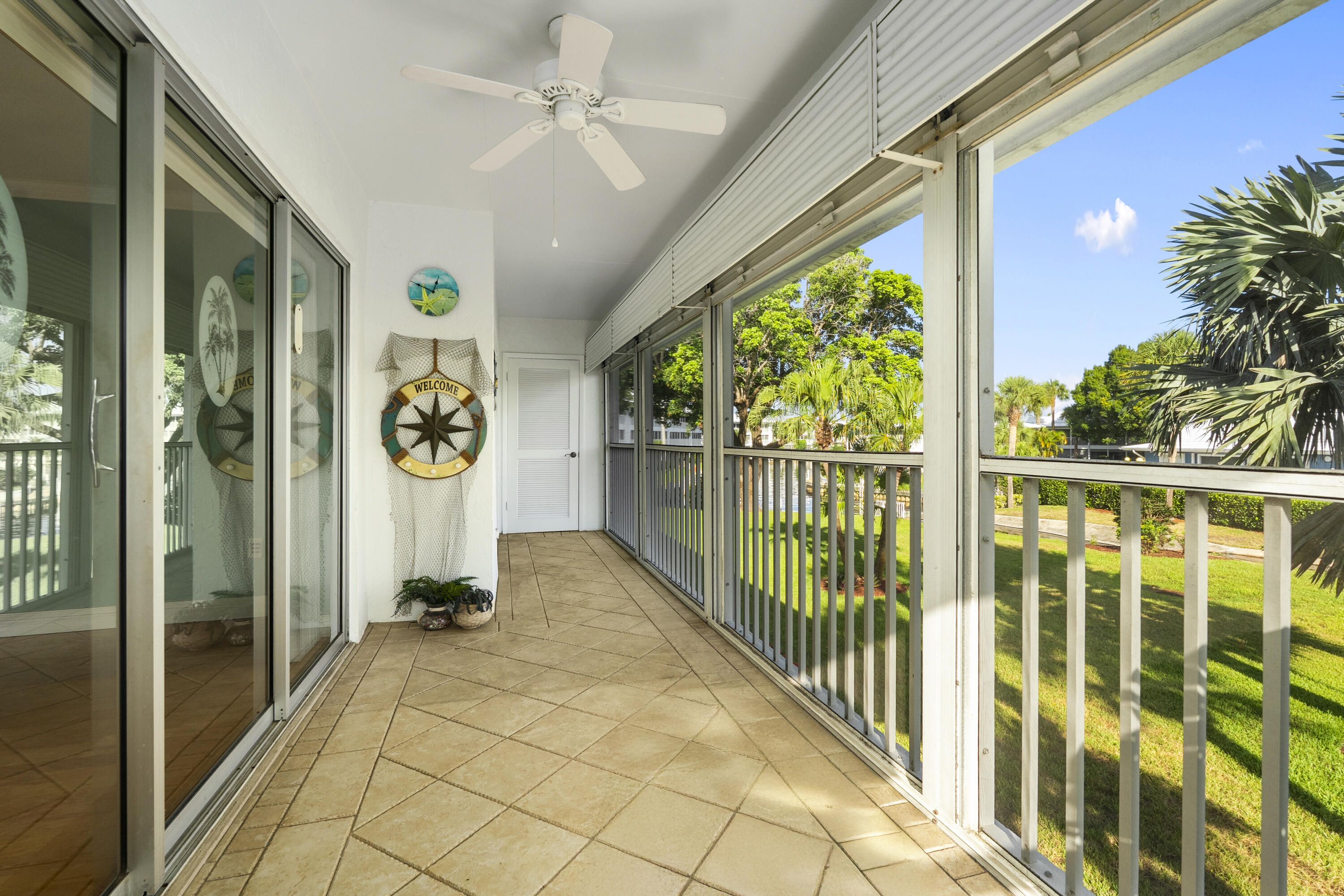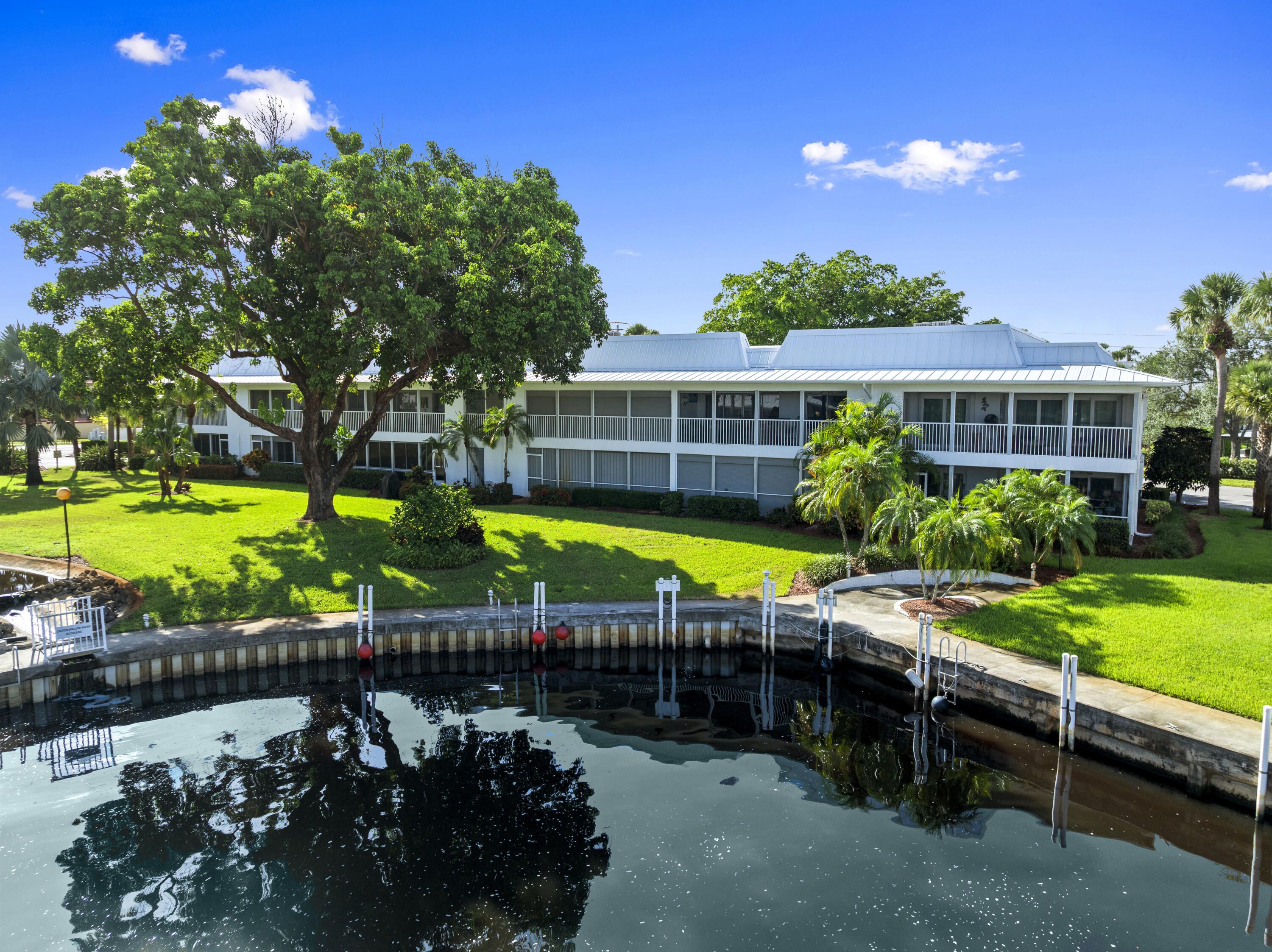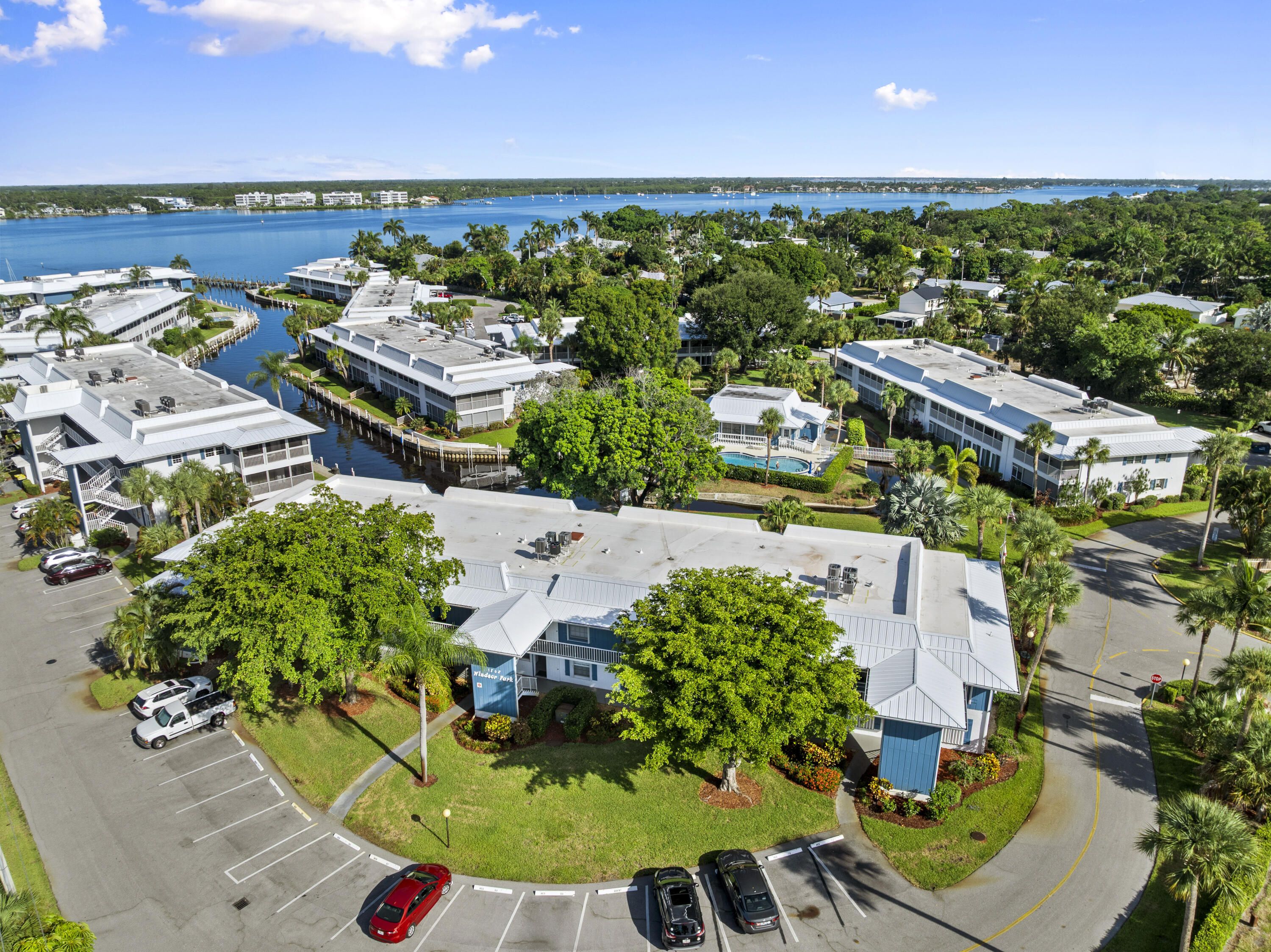 Waterfront 2Bed 2Bath corner condo in Windjammer with 30' Boat Dock (Slip #119). Windjammer offers Community Marina, Clubhouse & 3 Heated Swimming Pools. Kitchen features 30'' White cabinets with Corian counters with waterfall edge, spacious breakfast bar. Updated insulated windows with accordion hurricane shutters. Master bedroom has sliding glass doors to screen porch & large walk-in closet. Master bath features dual sinks & tub/shower combination. Large guest bedroom has 2 closets. 2nd bath has separate shower with glass doors. Large screen patio with tile floors, storage closet & roll down shutters. Additional storage closet in laundry room. Water Heater was replaced in 2008 & A/C is 2004. Windjammer is a 55+ Adult community. Conveniently located near historic downtown Stuart.