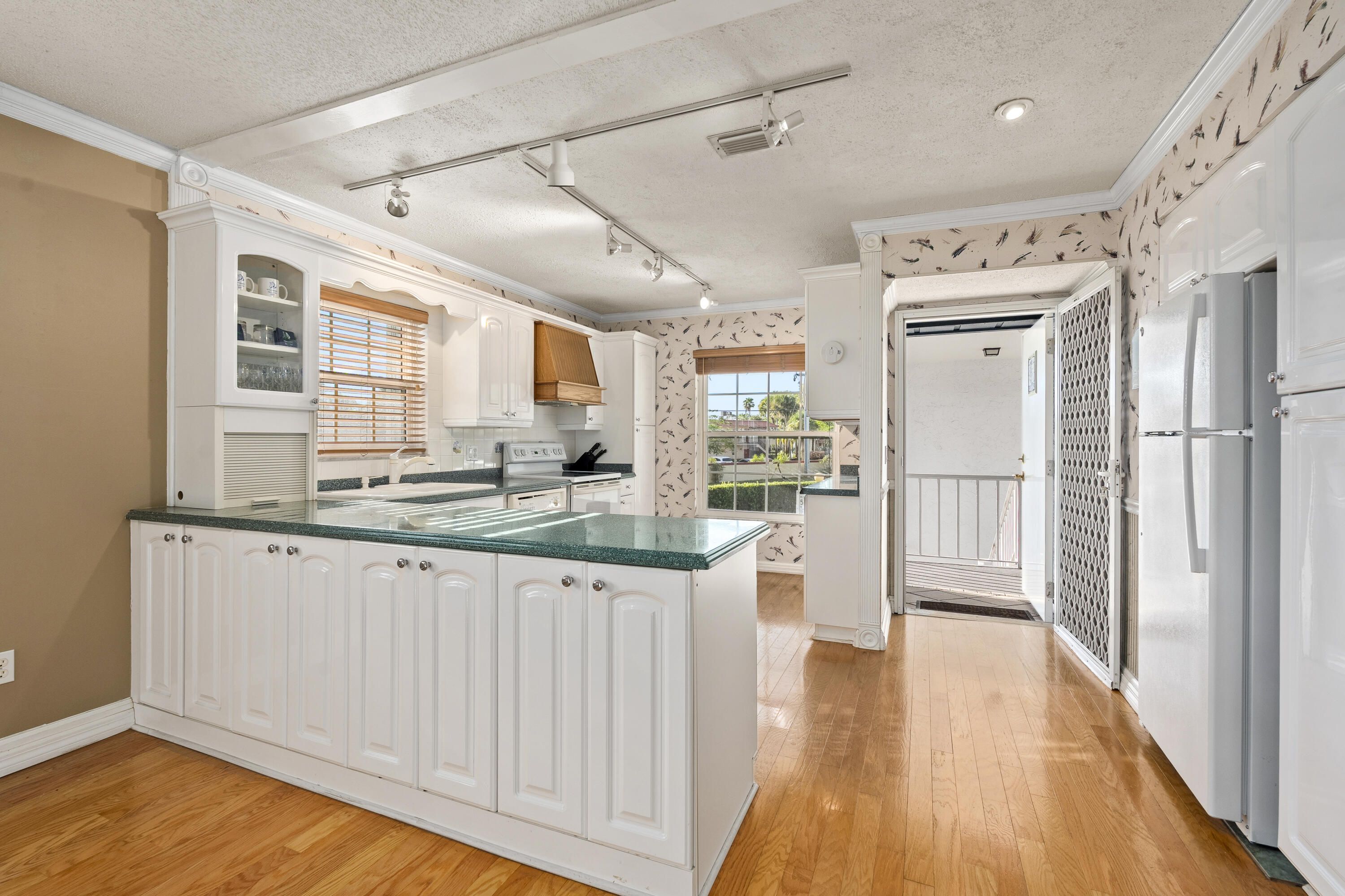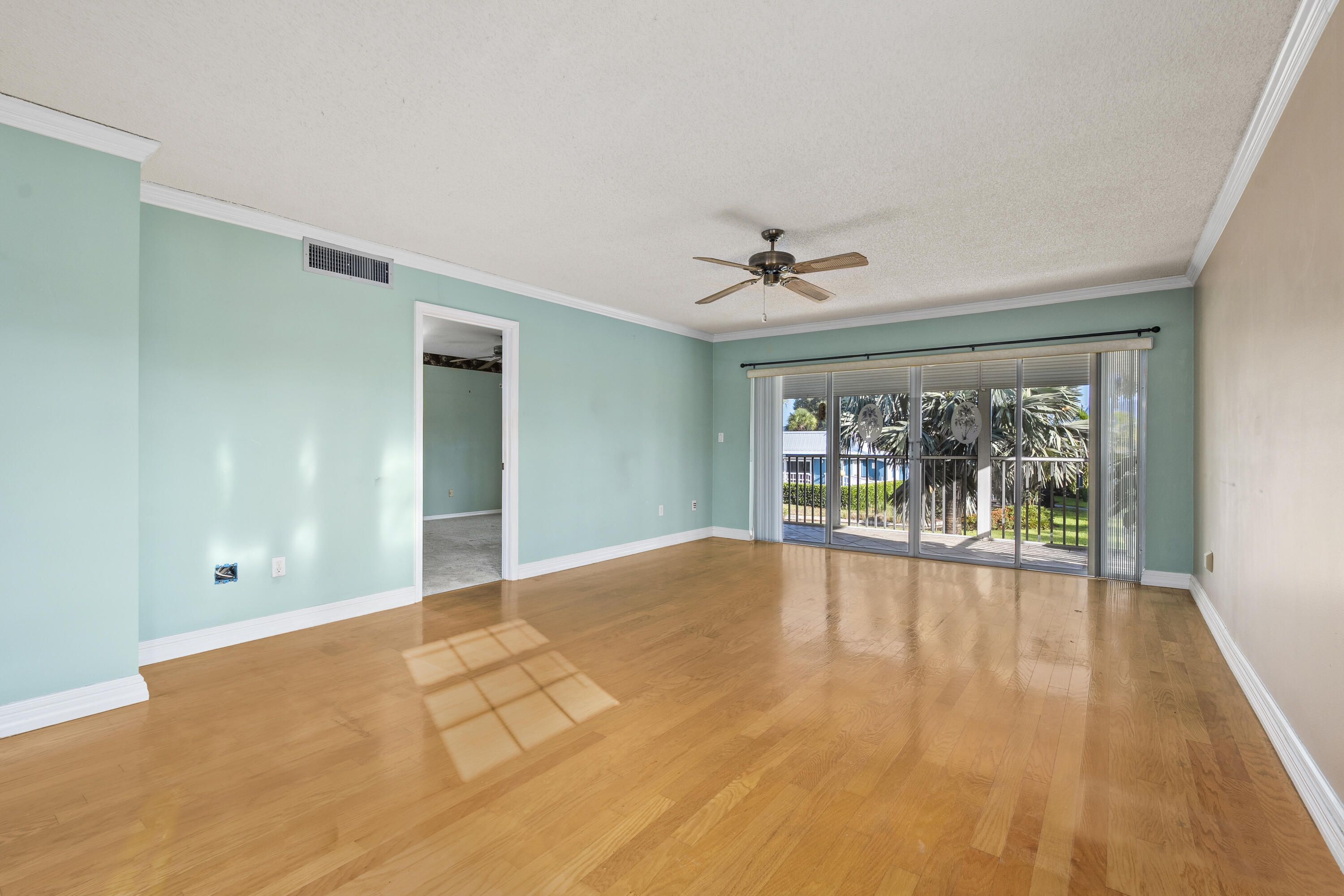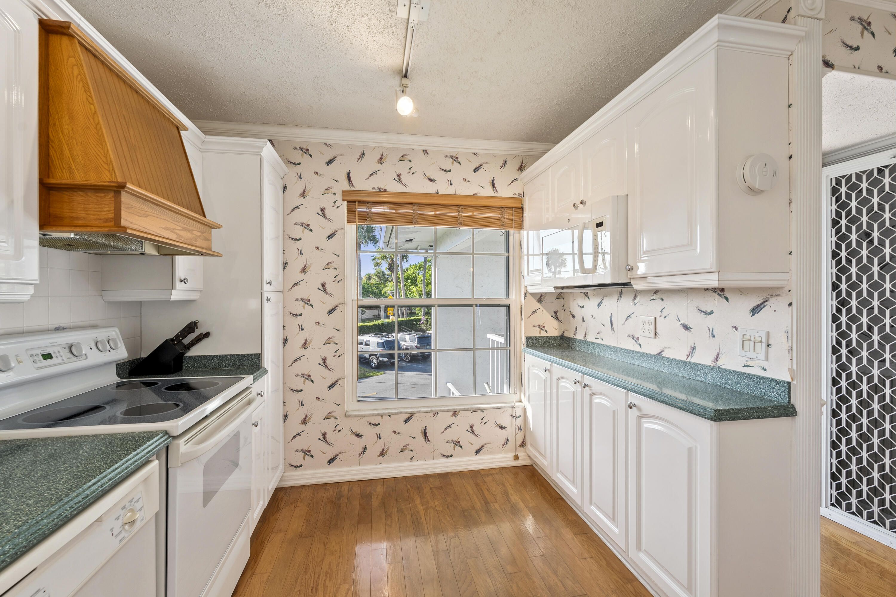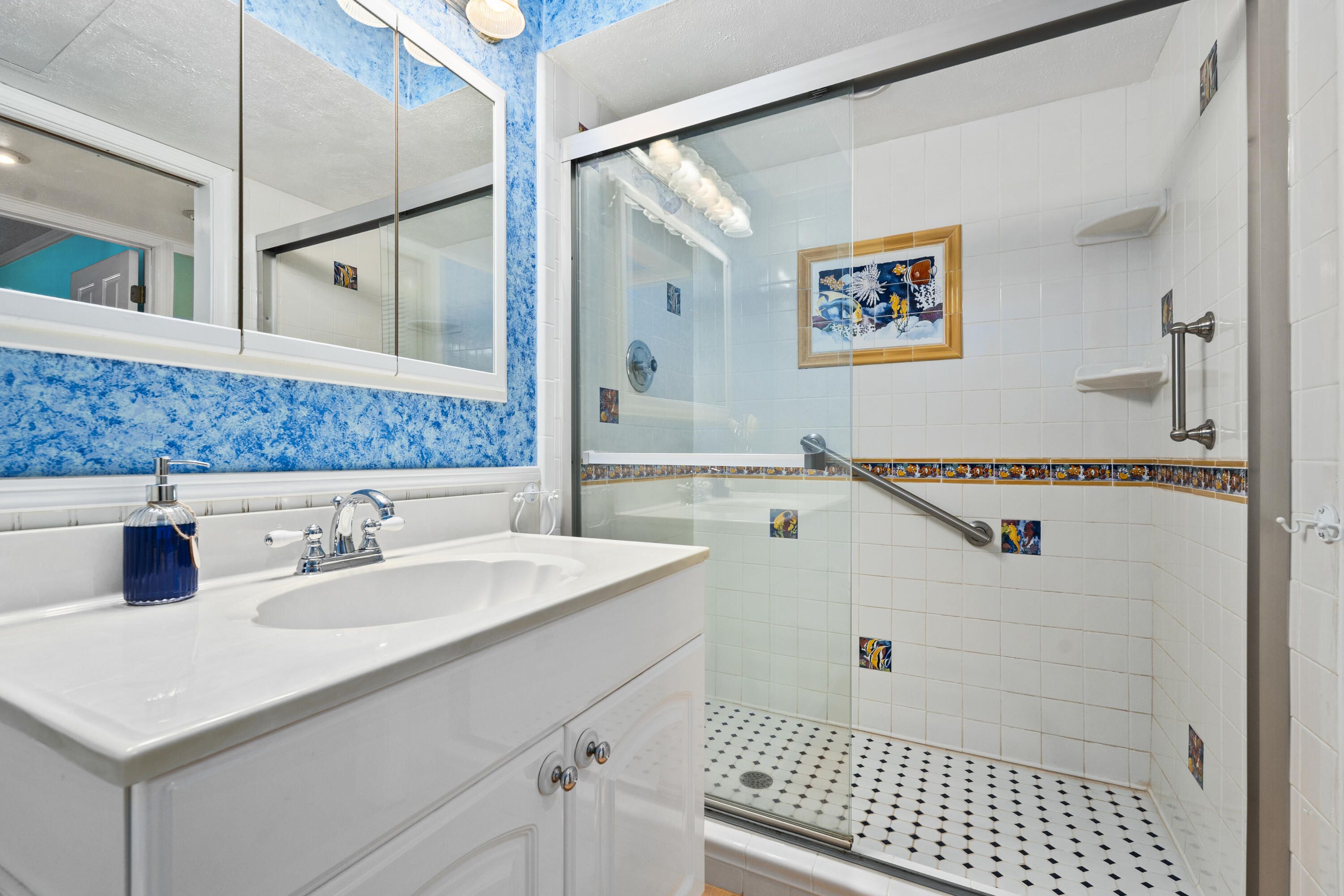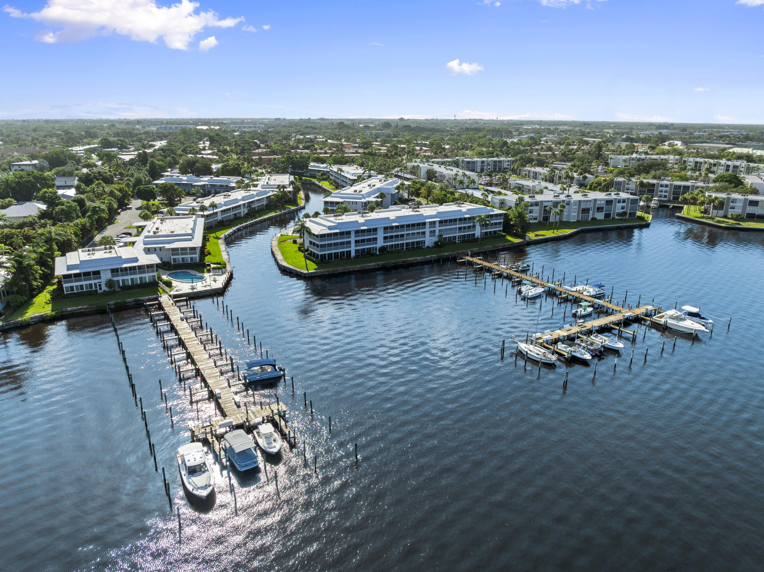 Waterfront 2Bed 2Bath corner condo in Windjammer with 30' Boat Dock (Slip #119). Windjammer offers Community Marina, Clubhouse & 3 Heated Swimming Pools. Kitchen features 30'' White cabinets with Corian counters with waterfall edge, spacious breakfast bar. Updated insulated windows with accordion hurricane shutters. Master bedroom has sliding glass doors to screen porch & large walk-in closet. Master bath features dual sinks & tub/shower combination. Large guest bedroom has 2 closets. 2nd bath has separate shower with glass doors. Large screen patio with tile floors, storage closet & roll down shutters. Additional storage closet in laundry room. Water Heater was replaced in 2008 & A/C is 2004. Windjammer is a 55+ Adult community. Conveniently located near historic downtown Stuart.