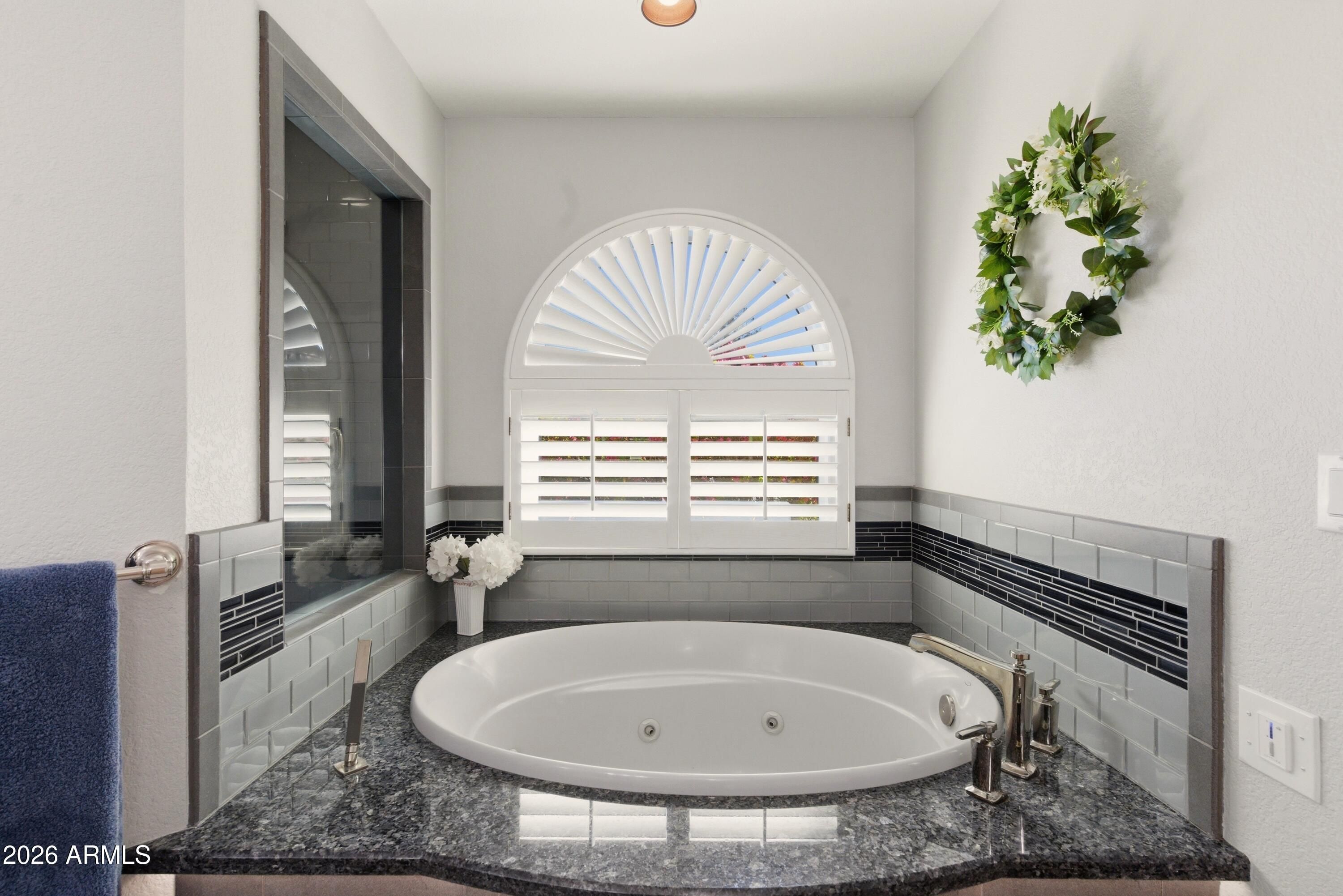 - Granite Counters, Double Vanity, Eat-in Kitchen, Breakfast Bar, No Interior Steps, Wet Bar, Kitchen Island, Full Bth Master Bdrm, Separate Shwr & Tub, Tub with Jets