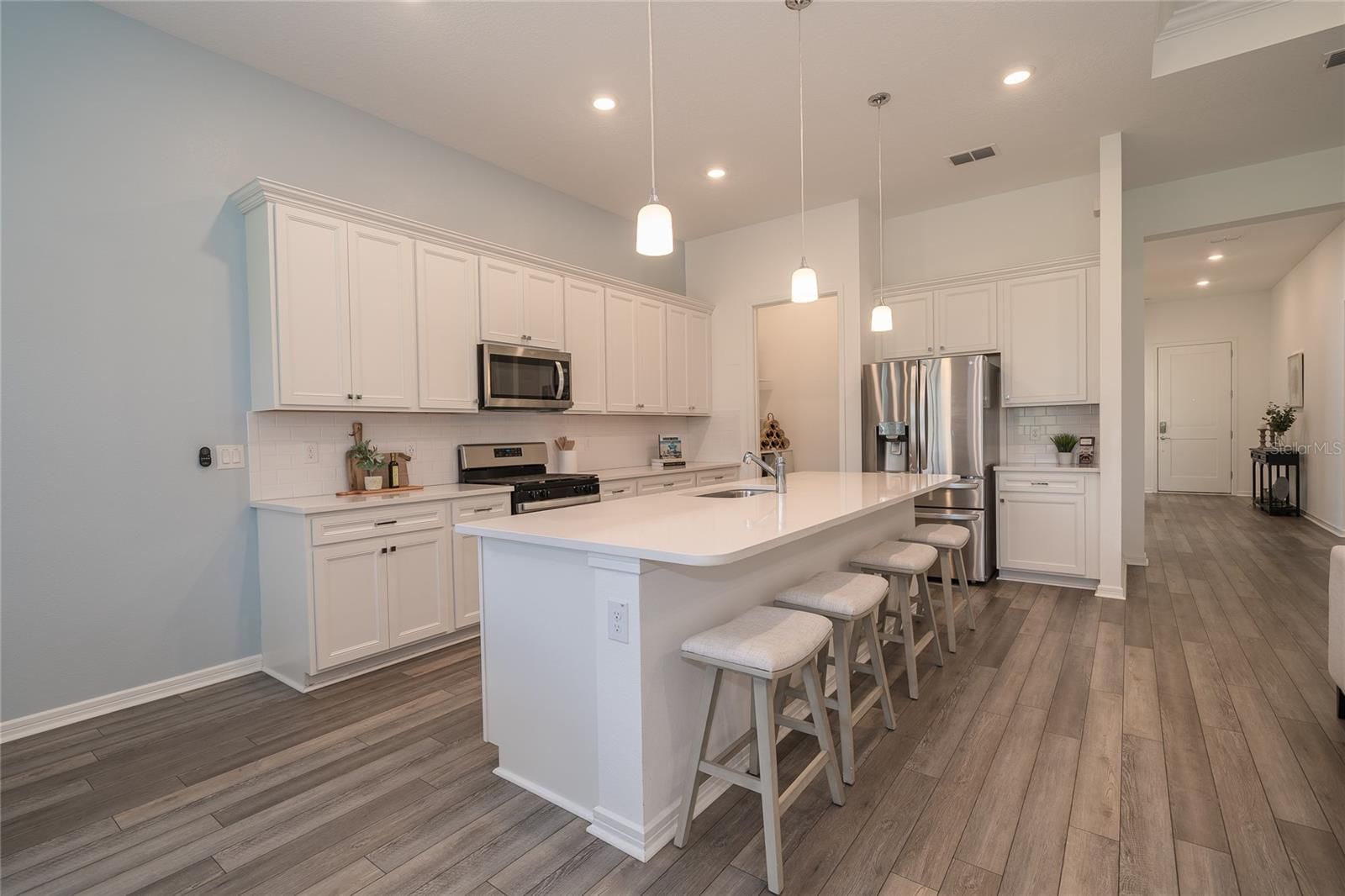 Imagine waking up every day to peaceful views that will never change. This beautiful home sits on a premium conservation lot, giving you ultimate privacy, tranquility, and the assurance that nothing will ever be built behind you. From your large covered and screened lanai, you can savor your morning coffee surrounded by nature or unwind with an evening cocktail while soaking in the serenity. Just beyond the lanai, you’ll find the ideal spot for your barbecue grill or a sunny area to relax outdoors—perfect for owners who enjoy both shade and sunshine. Inside, you’ll find the ever-popular Prestige floor plan, loved for its rare design featuring two primary suites. Guests will enjoy their own private retreat in the front suite, complete with a full bath and spacious walk-in closet. A versatile flex room with double doors, a closet, and built-in shelving gives you endless possibilities—use it as a home office, hobby room, or even a third bedroom. Throughout the home, luxury vinyl plank flooring offers the perfect blend of style and function—durable, easy to clean, and with no carpet anywhere, it’s ideal for both comfort and low maintenance. The kitchen is a showstopper, featuring a center island with quartz counters, an undermount sink, pendant lighting, and space for a breakfast bar. With 42-inch soft-close cabinets topped with crown molding, pull-out shelving, and stainless steel appliances, everything you need is right at your fingertips. Just off the kitchen, a perfect nook awaits—ready to be transformed into a coffee bar or wine station. The adjacent dinette is bright, airy, and overlooks the conservation, with a ceiling fan adding comfort while you dine. You’ll also love the oversized pantry with extensive shelving, perfect for storing all your essentials and more. The kitchen seamlessly flows into the great room, where you’ll appreciate the tray ceiling, recessed lighting, ceiling fan, and surround sound system—all designed for both comfort and entertainment. A large sliding glass door opens to the screened lanai, blending indoor and outdoor living with ease. The owner’s suite is tucked at the back of the home, where large windows frame the conservation view. The spa-like ensuite bath features quartz counters, dual sinks, a spacious shower with a bench, and not one but two walk-in closets. A thoughtful pass-through window connects the closet to the laundry room, making laundry a breeze. The laundry itself is well-appointed with cabinets, a sink, and space for your washer and dryer. A conveniently placed half bath for guests rounds out this smart, functional floor plan, along with a two-car garage for storage and parking. Living in Del Webb Bexley, a premier 55+ gated community in Land O’ Lakes, is like being on vacation every day. Enjoy the resort-style heated pool with lap lanes and a resistance pool, a snack bar, tennis and pickleball courts, a community garden, and even a dog park. The vibrant clubhouse offers daily activities, clubs, and events—giving you countless ways to stay active and connect with neighbors. Whether you prefer a full social calendar or quiet relaxation at home, you’ll find it here. And with easy access to major highways, shopping, dining, medical facilities, and just 30 minutes to Tampa International Airport and downtown Tampa, the location couldn’t be more convenient. Perfect as a full-time residence or a winter retreat, this home offers the lifestyle you deserve and have been waiting for. Call today!