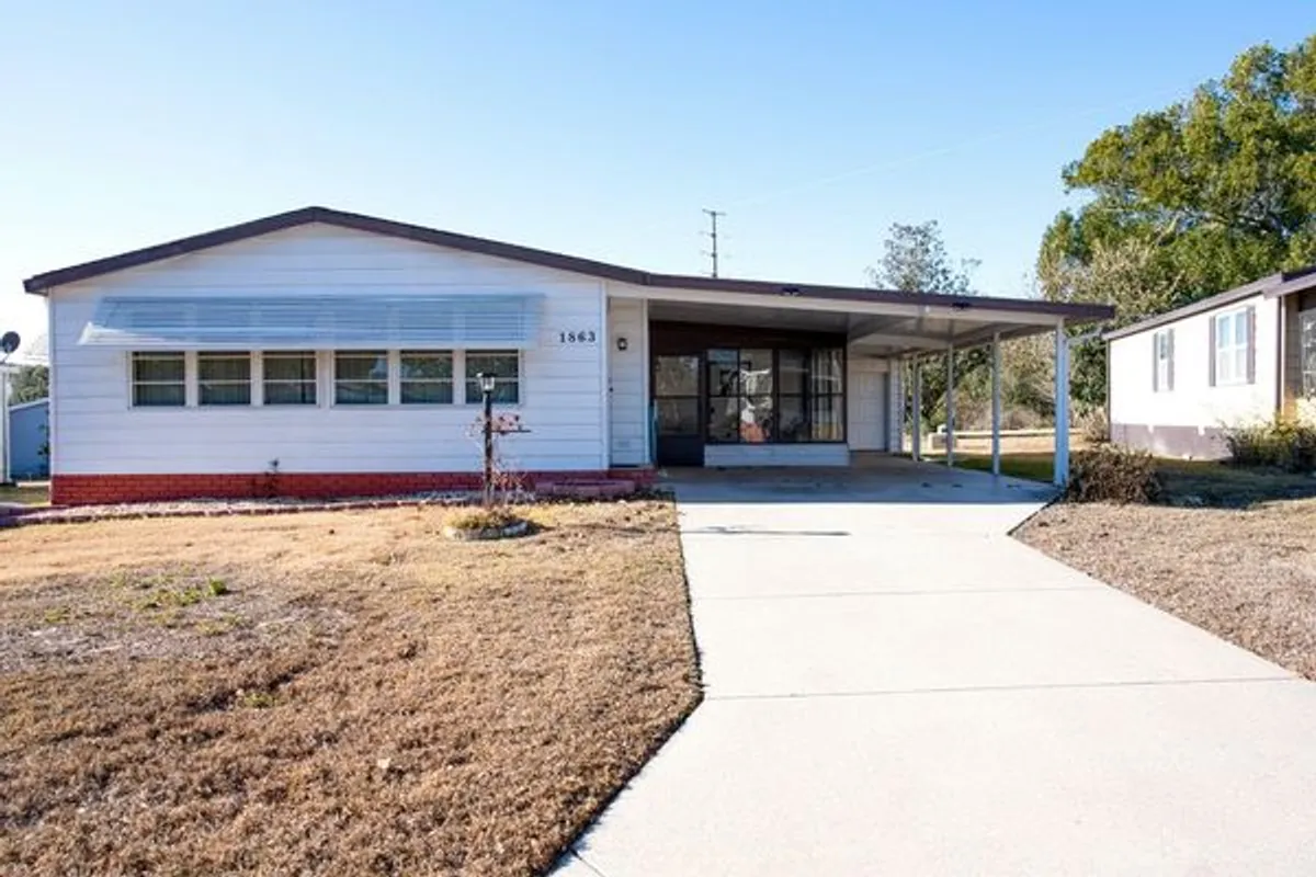 Short Sale. Welcome home to this unique single-wide manufactured residence located in the highly sought-after Village of Orange Blossom Gardens. Built in 1986, this 2-bedroom, 2-bath home offers 1,442 square feet of comfortable living space on an oversized 5,347 sq ft lot, larger than most in the area. Step inside to a warm and inviting living room that flows into the kitchen and dining area, with an additional bonus room perfect for an office, hobby space, or Florida room. The spacious primary bedroom features a large walk-in closet and private bath. Carport parking adds everyday convenience. Enjoy Florida living at its best with a generous backyard offering space for flowers, an herb garden, or additional landscaping, plus a peaceful water view to relax and unwind. Nestled in one of the most serene and established neighborhoods in The Villages, this home is close to golf, shopping, dining, and community amenities. Don’t miss this chance to own in one of Florida’s most beloved communities!