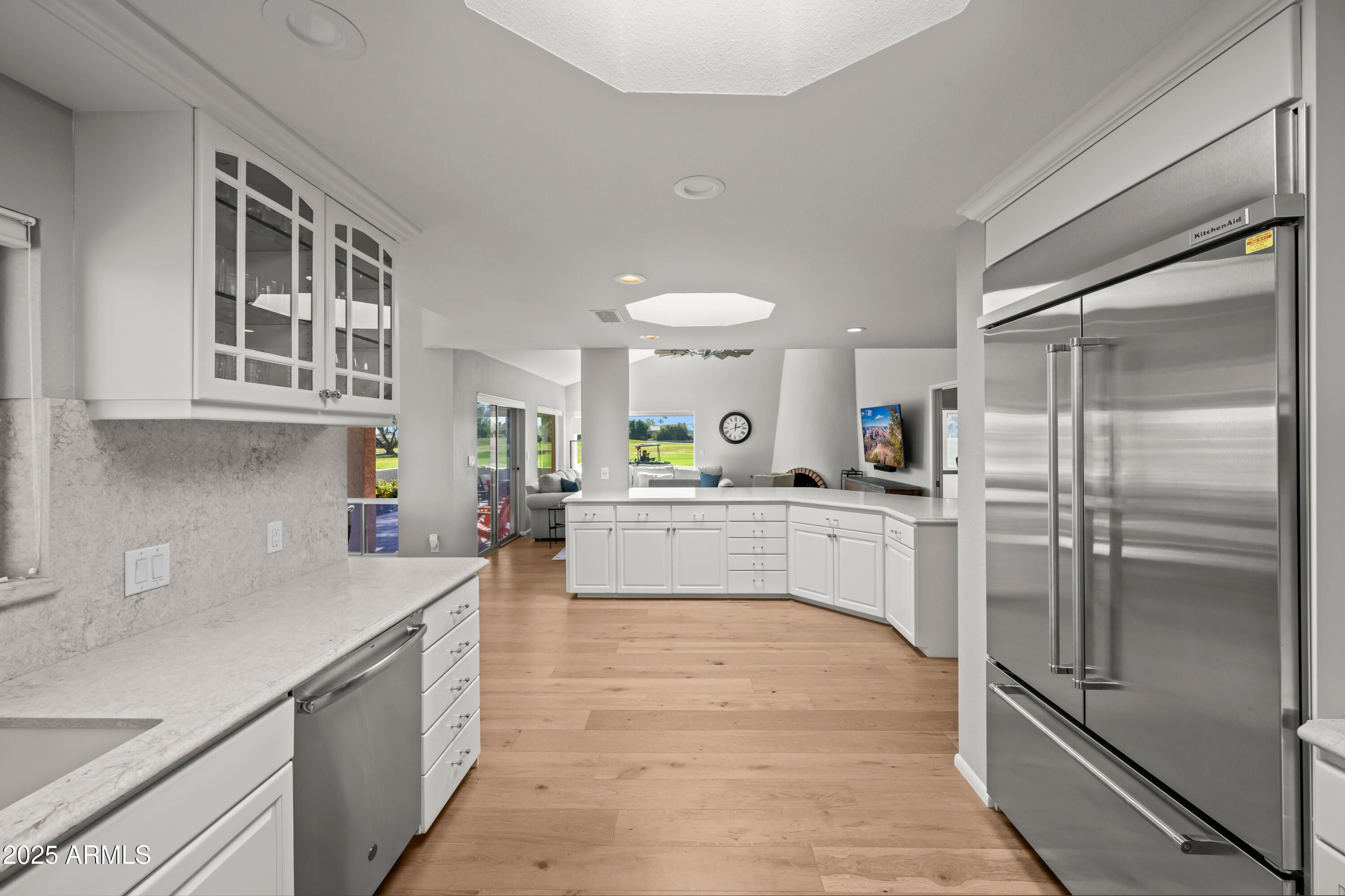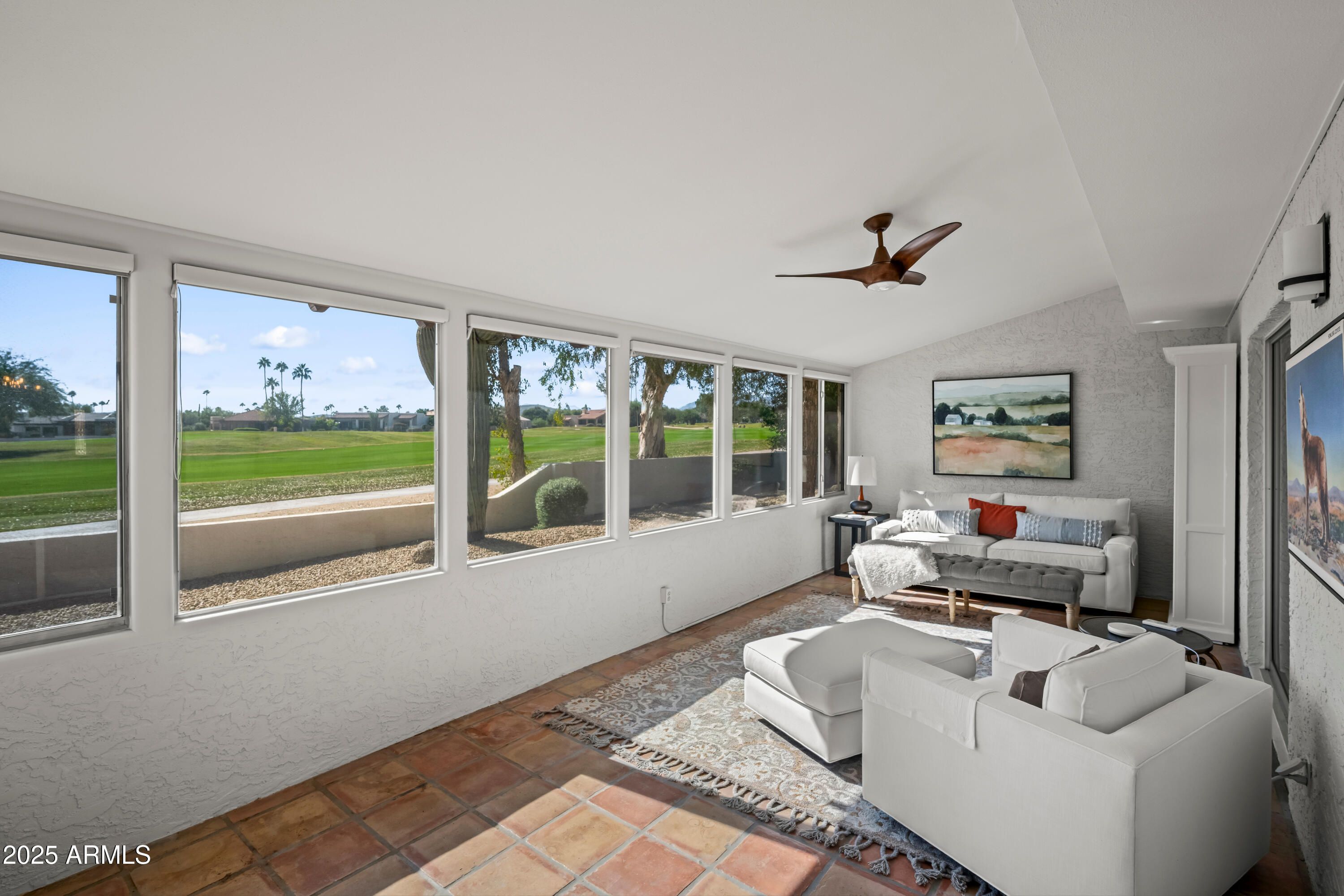 Beautiful turnkey remodeled home on the golf course with mountain views. Enjoy this comfy home with lots of room for company with 3 bedrooms and an Arizona room, great room and family room. The new wood flooring is gorgeous and adds to the light and bright feel of the kitchen, breakfast nook and family room. The kitchen features new appliances, Quartsite countertops and a breakfast nook surrounded by windows.Nice patio area for watching the golfers and taking in the mountain view. The master bath has a lovely double vanity and walk-in shower. The guest bath has also been updated.The third bedroom could be a den, but is ideal for extra company. There is also a bonus Arizona sunroom that could be a 4th bedroom, den, workout room or art room. This home has rooms for every need.