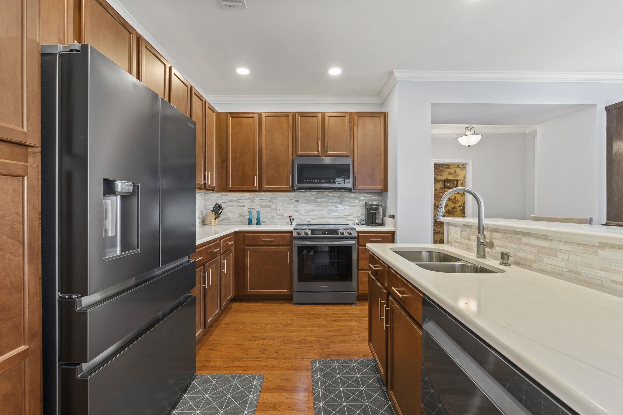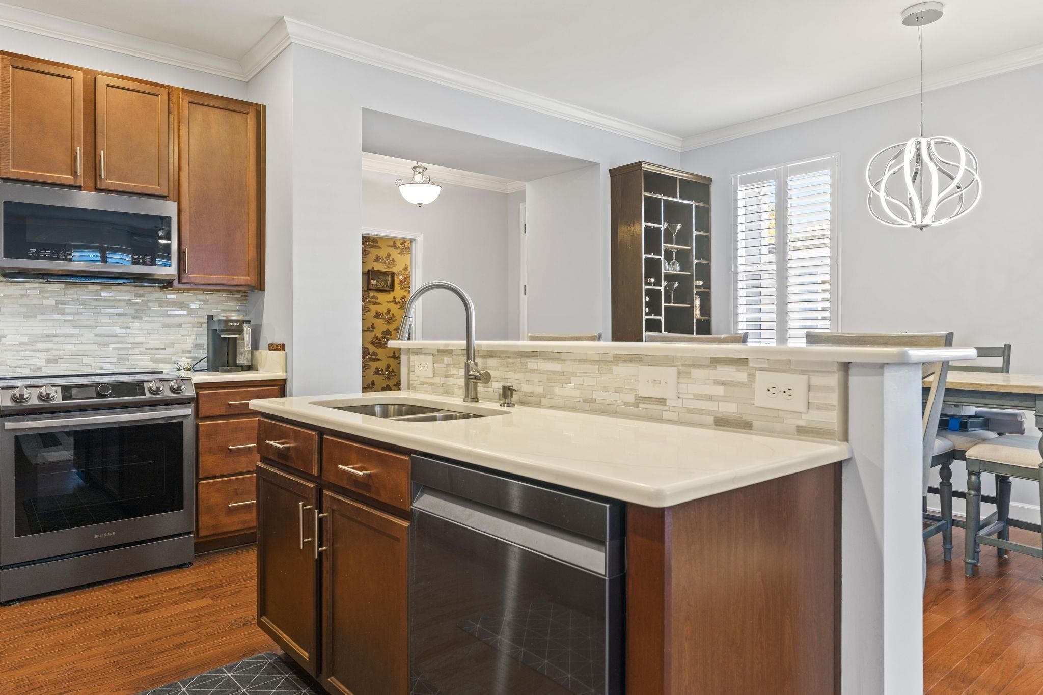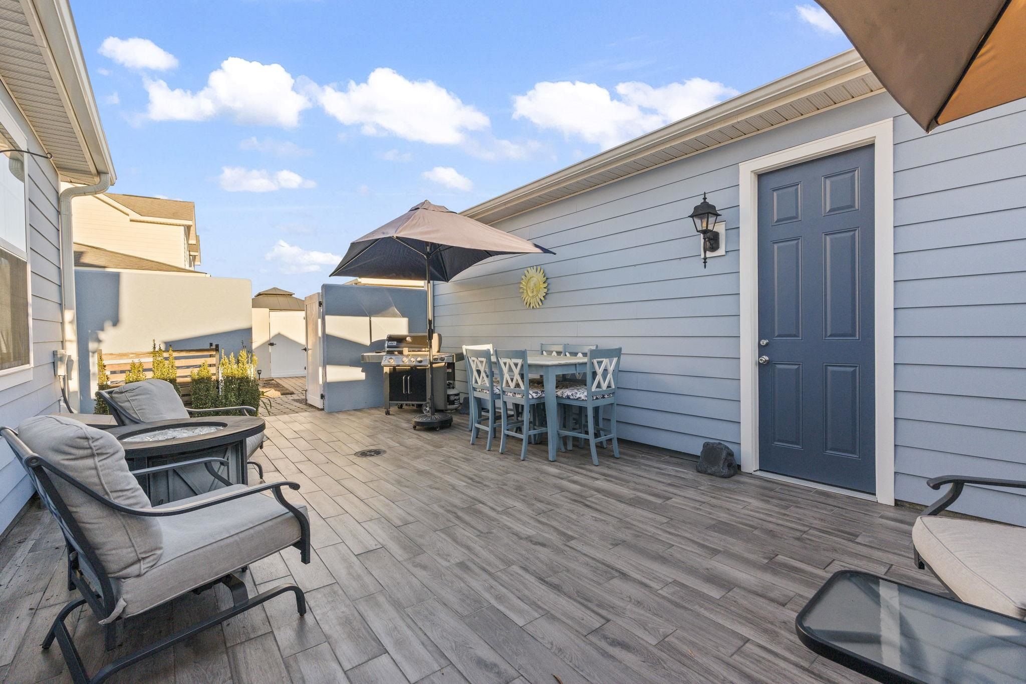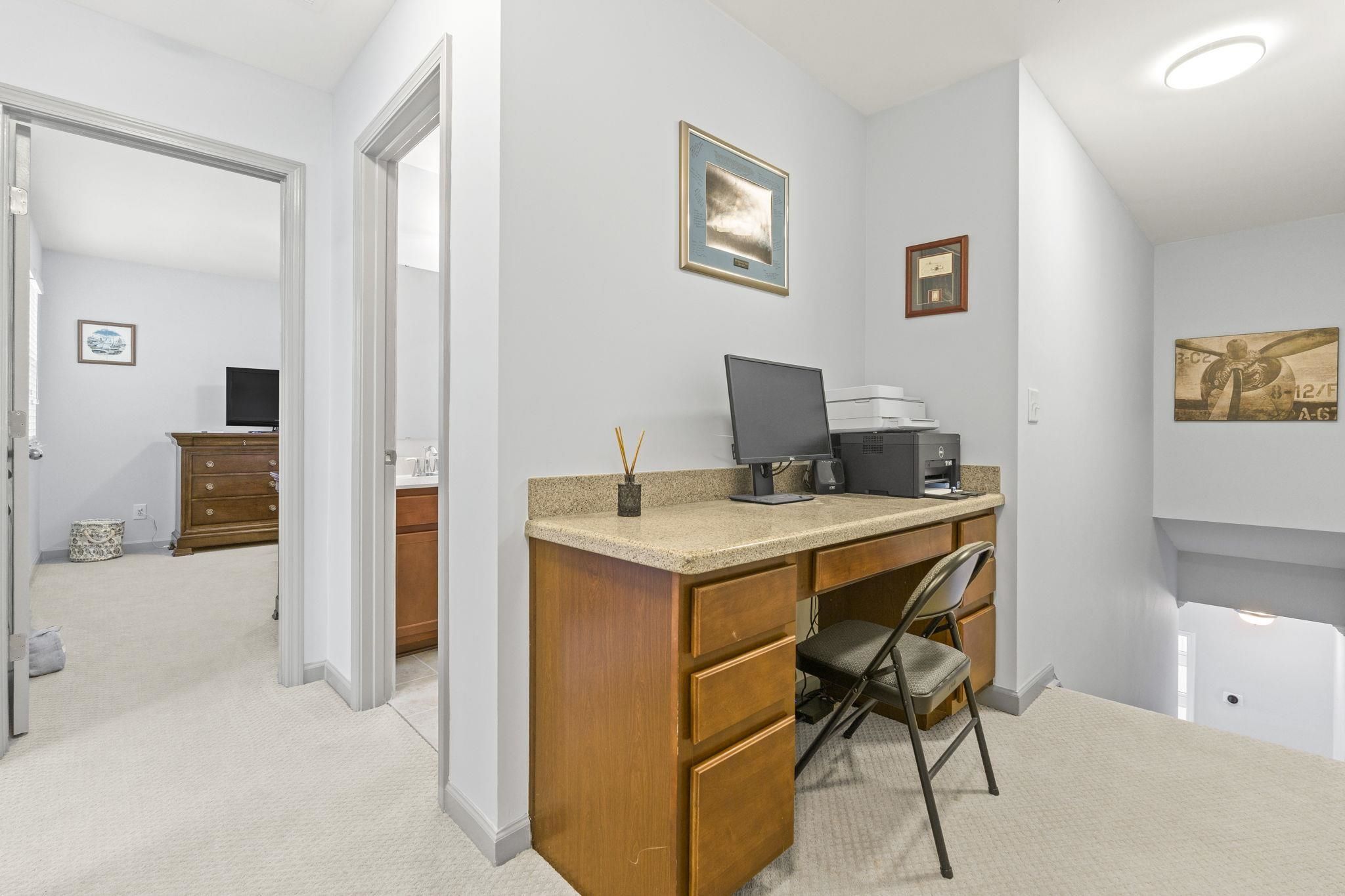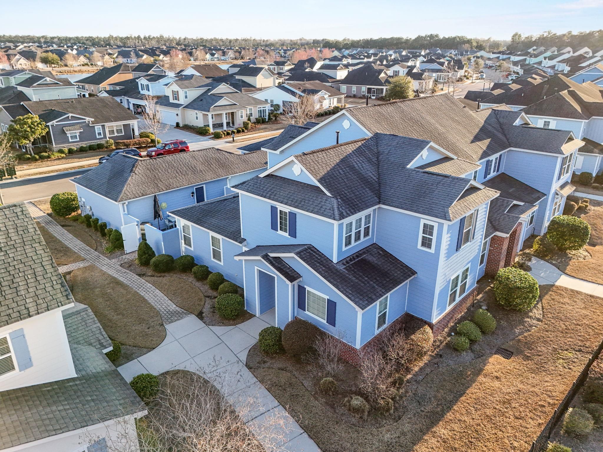 3-Bedroom townhome with first-floor primary suite in Market Common's Emmens Preserve! Looking for a low-maintenance home near the beach and walkable lifestyle? This well-designed 3-bedroom, 2.5-bath townhome in Emmens Preserve at Market Common offers comfort, flexibility, and one of Myrtle Beach's most sought-after locations. Inside, the home feels open, bright, and easy to live in. Hardwood floors welcome you into the foyer and continue through the family room and kitchen, creating a warm and connected living space. The open floor plan makes it easy to entertain, keep an eye on children, or enjoy quiet evenings at home. The kitchen features quartz countertops, ample cabinet space, and flows naturally into the main living area. A washer and dryer are included for added convenience. The primary bedroom offers privacy and ease of living, with the fully updated en-suite which includes tile flooring, a floor to ceiling tiled and glass shower, and double vanity. Large walk-in closets provide generous storage with custom design and upgraded light fixtures. Upstairs, two additional bedrooms share a full bath, and a built-in desk area creates the perfect space for a home office, homework, or hobbies. Step outside to an enclosed courtyard and private tiled patio, ideal for grilling, sunbathing, or hosting. Privacy fencing adds a peaceful outdoor feel. Just beyond the courtyard, the two-car garage offers plenty of room for vehicles, storage, or a golf cart. Emmens Preserve is known for its walking trails, neighborhood charm, and Market Common lifestyle. Enjoy easy access to shopping, restaurants, parks, entertainment, and community events, all just minutes from the beach. This location is ideal for buyers looking for a second home near the coast with low upkeep and high livability. This townhome combines function, comfort, and location in one of Myrtle Beach's most desirable communities. Schedule a showing and experience life at Emmens Preserve.