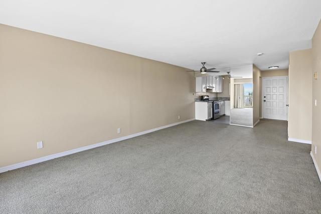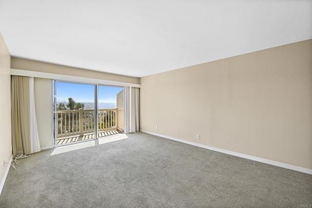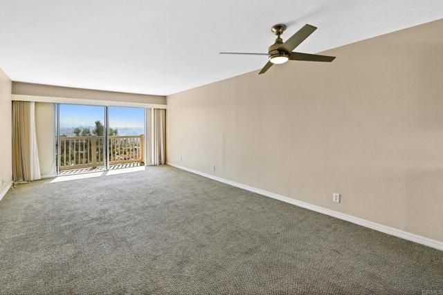 Best location in the development! Step into panoramic gorgeous Encinitas mountain views in this highly desirable quiet location in High Country Villas. Directly across the street from the beautiful 9 hole golf course, pickleball, pool and clubhouse. Upper unit with 2 bedrooms 1 bath home with no neighbors behind you. All new electrical panel just completed. Flooring, bathroom cabinet, lighting and kitchen counter tops all done. Popcorn ceilings removed. This single level town home is in a 55+ community that offers golf, swimming pool and spa, hiking/biking trails, clubhouse activities such as bocce ball, aqua aerobics, exercise classes, clubs and much more lifestyle and friendship. Less than 4 miles to moonlight beach and close to award winning shopping, dining, and medical. Enjoy unbelievable sunsets from the front of the property and follow the colors in the sky over the mountains from your private balcony in the back. Views from every window including golf course views, mountain views and hot air balloon views. Morning sunrises over the mountains are spectacular! Priced to sell so come see asap!