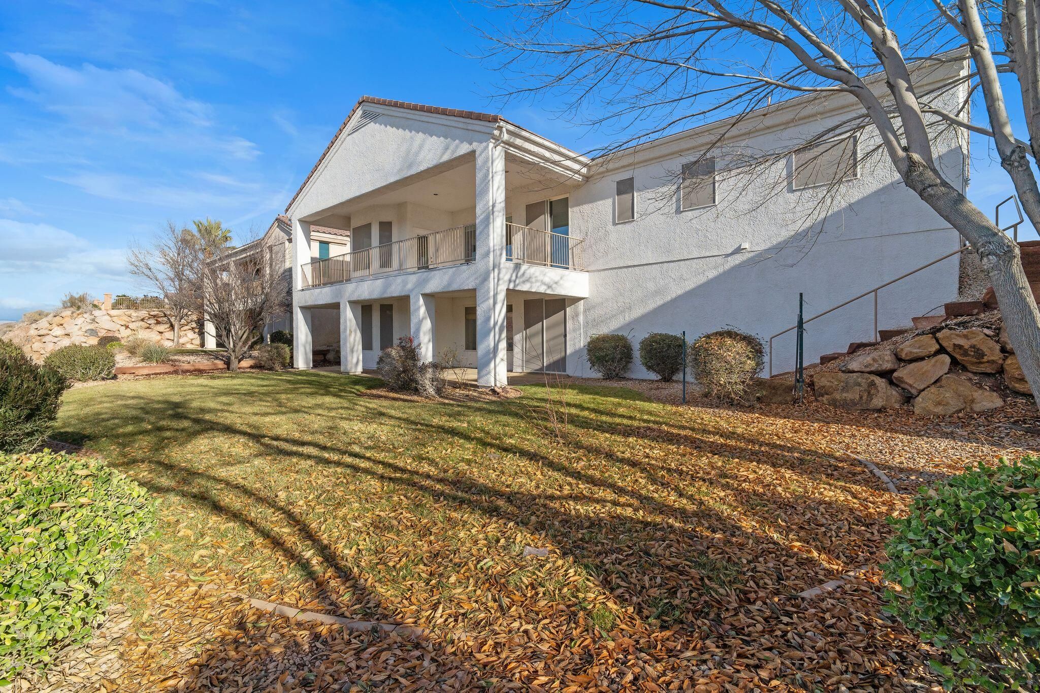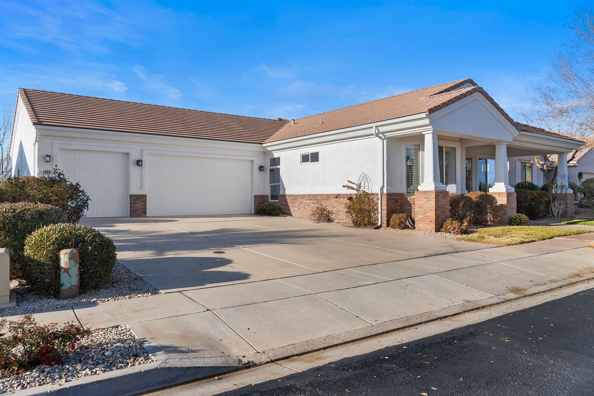Truly one of a kind in SunRiver's premier 55+ community, this rare 4-bedroom, 4.5-bath walkout basement home offers 4,060 sq ft of beautifully updated living space, including 2,108 sq ft on the main level. Recent upgrades include a remodeled kitchen, and refreshed bathroom's. Large windows capture stunning views of the golf course, ponds, and Pine Valley Mountain, filling the home with natural light and showcasing Southern Utah's scenery. The thoughtful floor plan offers multiple family rooms, inviting sitting areas, and formal dining spaces, creating ideal flow for both everyday living and entertaining. The walkout basement features a wet bar and a versatile flex room perfect for hobbies, fitness, office space, or additional guest use, along with exceptional storage throughout. Step outside to enjoy both a large covered deck and a covered patio belowproviding ideal outdoor living spaces year-round. The backyard is generously sized for the community, situated on a .13-acre lot. Enjoy the comfort of a rare, air-conditioned 3-car garage that is extra deep, offering ample room for additional workspace, storage, or recreational gear. SunRiver residents enjoy championship golf, clubhouse dining, pools, fitness center, pickleball, walking trails, and an active social calendar. Southern Utah's mild winters make year-round outdoor living a highlight, while the nearby Southern Corridor exit provides quick access to new medical facilities, shopping, dining, and downtown St. George. This home offers space, views, functionality, and lifestylean exceptional opportunity in SunRiver.