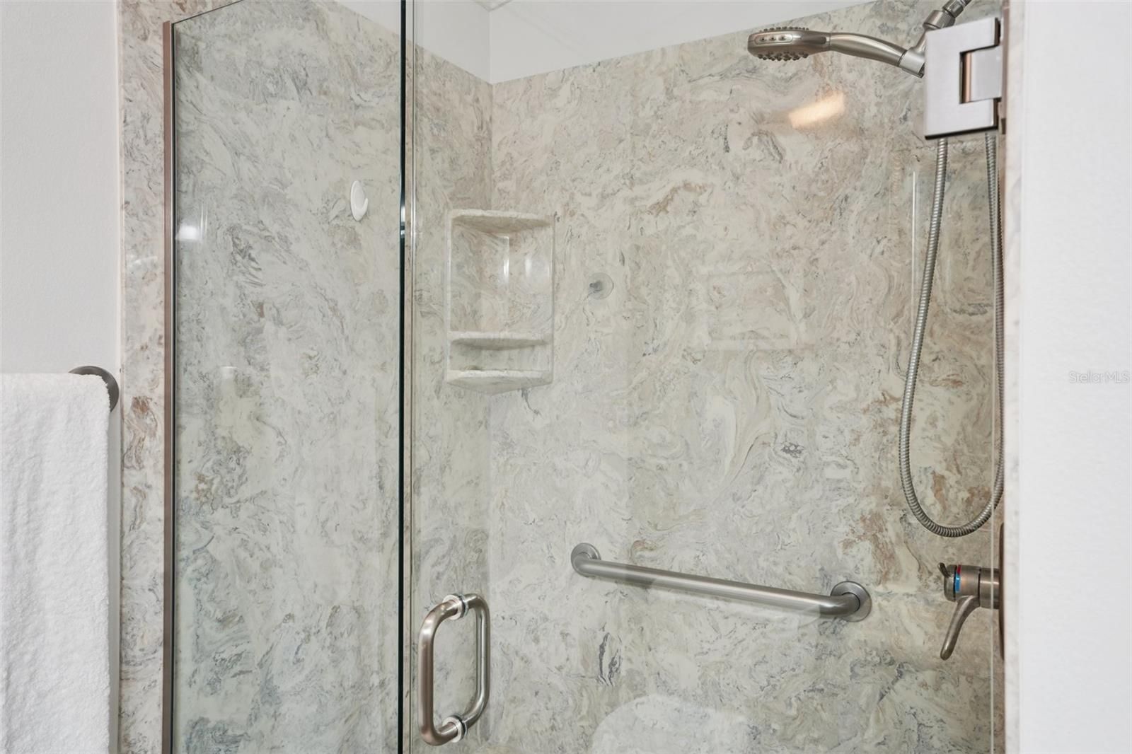 No Bond and a beautiful Golf View — it simply doesn’t get better than this! Located in the highly sought-after Village of St. Simons Villas at Glenview Country Club, this stunning Courtyard Villa offers both luxury and comfort. The home features three bedrooms and two baths, with elegant 15-inch tile flooring throughout and plantation shutters adding timeless charm. The kitchen is a showpiece, boasting granite countertops, upgraded cabinetry, high-end stainless steel appliances, gas cooking, pull-outs, above- and below-cabinet lighting, and a custom-built pantry with additional pull-outs. Crown molding accents every room, and there’s not a trace of popcorn ceiling in sight. Both bathrooms feature beautiful glass walk-in showers. Enjoy seamless indoor-outdoor living in the custom expansion room that elevates this home. Full impact-resistant slider windows open the entire back of the home to a screened view of the 5th hole on the Glenview Country Club Championship Golf Course. Additional highlights include an inside laundry room, dual garage doors (one screened and one solid metal), a power awning, and beautifully designed stacked-stone landscaping with no grass to mow. This exceptional home truly stands out for its quality and location. Homes like this rarely become available and won’t last long!Schedule your private showing today—or request a FaceTime tour if you’re out of the area—and experience all this beautiful property provides.