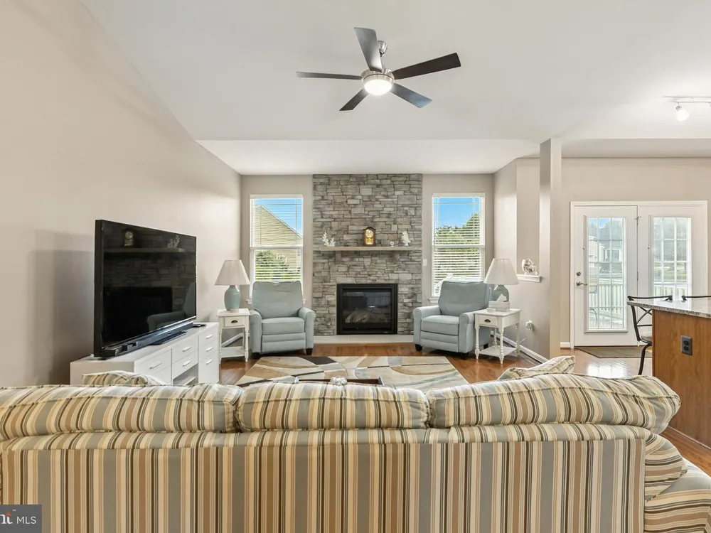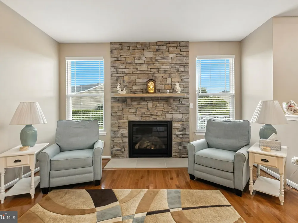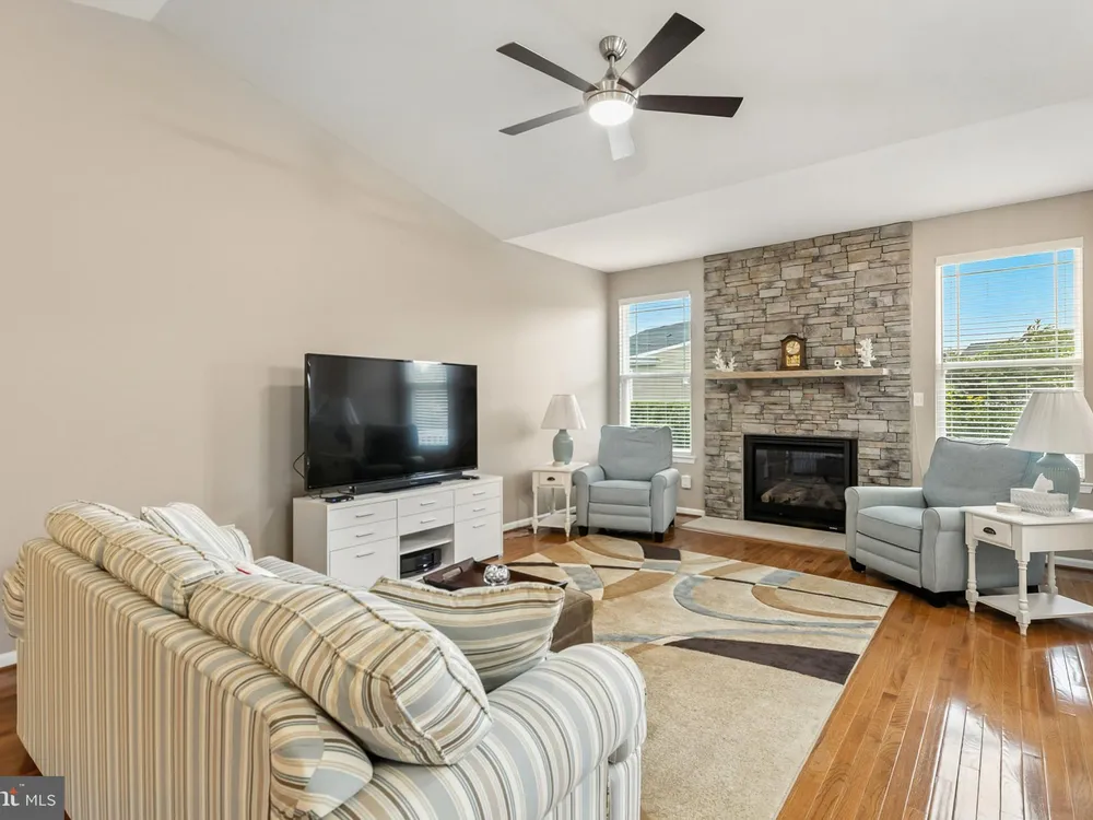 Welcome to this stunning 3-bedroom, 2-bath home in the community of The Villages of Red Mill Pond. This meticulously maintained single ranch residence offers a perfect combination of modern amenities and timeless charm. Step inside to discover a spacious and inviting interior. The family room is a true highlight, boasting a stunning cathedral ceiling and an impressive stone wall with a cozy fireplace with direct propane line and remote control– perfect for relaxing on cool evenings. The family room has been thoughtfully extended by an additional 6 feet, providing extra space for gatherings and entertainment. Cook up a storm in the open kitchen equipped with GE stainless steel appliances. The kitchen also features sleek granite countertops and a tiled backsplash. Adjacent to the kitchen, the open floor plan seamlessly flows into the family room, creating a harmonious space for both daily living and special occasions. French doors lead you out to a Trex deck, where you can enjoy outdoor dining and entertaining. The open view from the rear deck will provide you with many days and nights of peaceful and private days and nights.....whether you are reading your book, chatting with friends, or dining al fresco. The deck is complemented by a direct propane line built in for your BBQ grill. No need to run out to fill up your propane tank for grilling, and never run out! The well-maintained irrigation system, with sensor control, ensures your lawn remains lush and vibrant with minimal effort. Additional features include hardwood floors throughout all areas, except for the bedrooms, offering both durability and sophistication. The master shut-off valve is conveniently located in a cabinet accessible from the laundry room, eliminating the need to enter the crawl space. This distinctive location for the shut-off valve is unique to this home and a special addition provided by the homeowner. As part of a vibrant community, you'll also have access to a pickleball court and a sparkling community pool and clubhouse, offering endless opportunities for recreation and relaxation right at your doorstep. This ranch home combines comfort, functionality, and style in one perfect package. Don’t miss the opportunity to make this beautiful property your own. Schedule a showing today and experience the best of Lewes living! **The Red Mill Pond Community Amenities include: Community club house with fitness center, pickle ball courts, swimming pool & kiddie pool, and kayak launch into Red Mill Pond! You'll also have direct access to the Lewes Georgetown trail!**