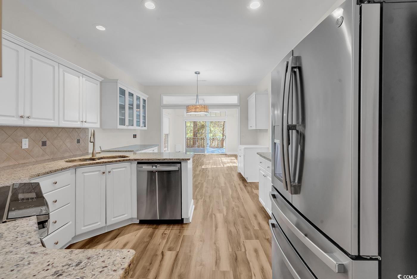 Beautiful 3-bedroom, 2-bath traditional ranch home located in the highly sought-after gated golf community of River Club. This home features an open floor plan filled with natural light, formal dining room, office/extra living space, crown molding, recessed lighting, new luxury vinyl plank flooring, and granite countertops in the kitchen. Enjoy cooking with high-end stainless-steel appliances and entertaining in the bright Carolina room or on the screened rear porch overlooking the shaded lot. A spacious front porch adds to the home's Southern charm, while the side-load garage provides both convenience and curb appeal. Residents of River Club have the benefit of private access to a clubhouse, pool, and tennis courts, together with wonderful amenities through Litchfield by the Sea, which includes private beach access, walking trails, and fishing docks. Golf memberships are available for the award-winning River Club Golf Course. The HOA fee includes Spectrum cable and internet, garbage pickup, and 24-hour guard-gated security. River Club Ownership offers the perfect blend of golf, coastal living and comfort.