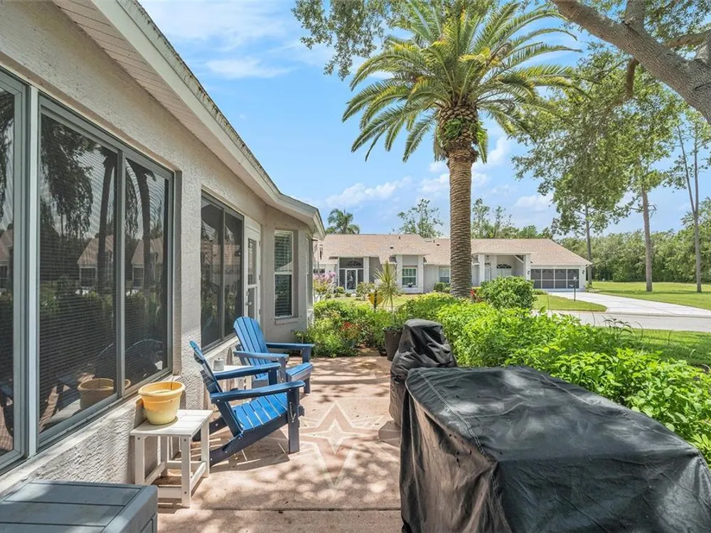 Welcome to this end-unit villa in the guard-gated 55+ Heritage Pines golf community. Featuring a new roof installed in 2018, this bright, one-story home overlooks lush greens with no rear neighbors. Step inside to your new home, renovated in 2022, with new vinyl floors, stainless steel appliances, and a new coat of paint throughout, all appliances come with the home including washer, dryer, and garage fridge. Unwind in the large master bath with dual walk-in closets and a walk-in shower, while the guest suite offers its own oversized walk-in closet and full bath with pocket door for added privacy! HOA covers cable and internet, plus provides an array of resort-style amenities: heated pool and spa, lighted tennis, pickleball and bocce courts, fully equipped fitness center, fireside restaurant & lounge, billiards, craft and woodworking rooms, performing arts venue, and more! Perfectly situated just a short drive to beaches, shopping, dining, and Tampa/Clearwater via the 589, you get maintenance-free retirement living at its finest!