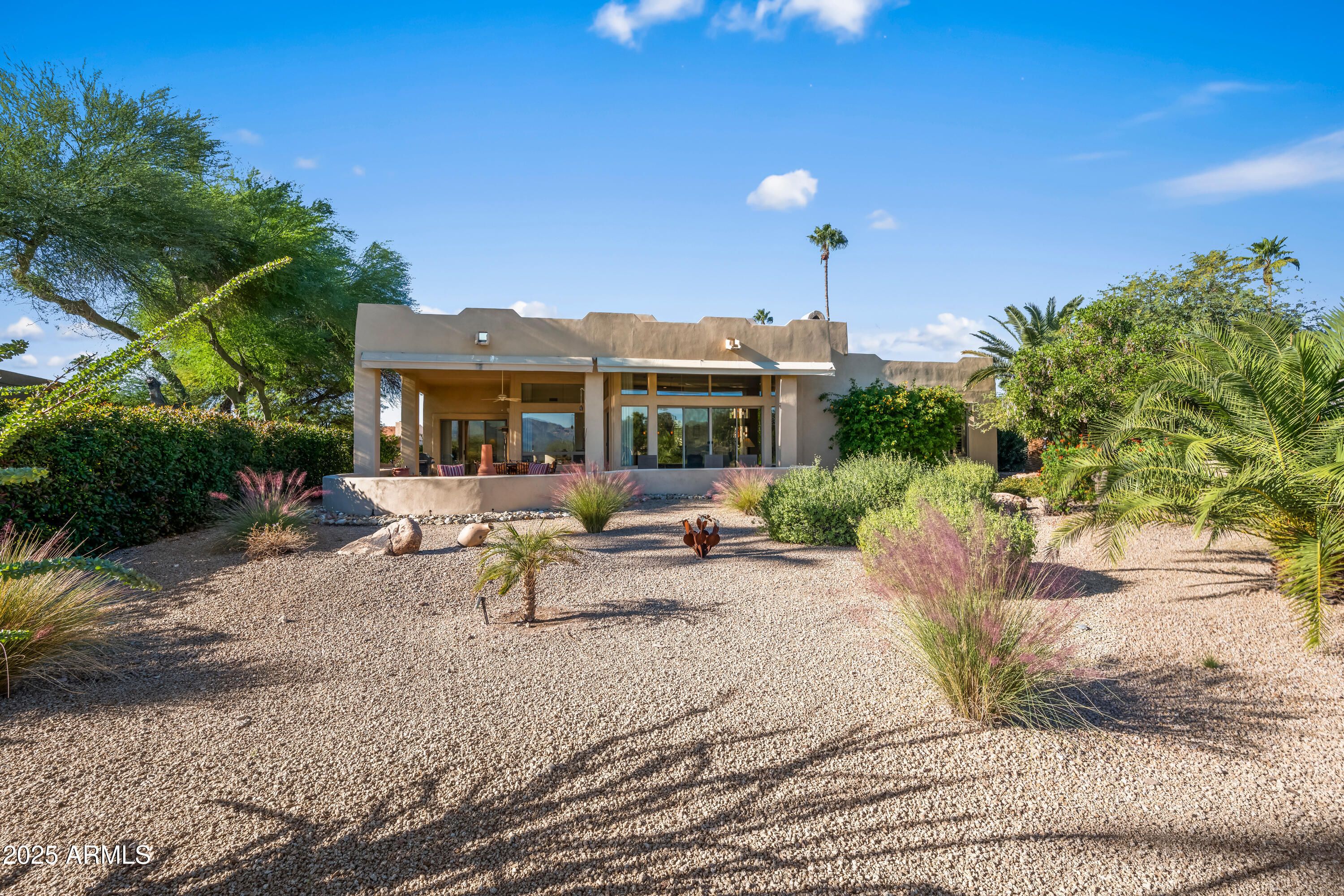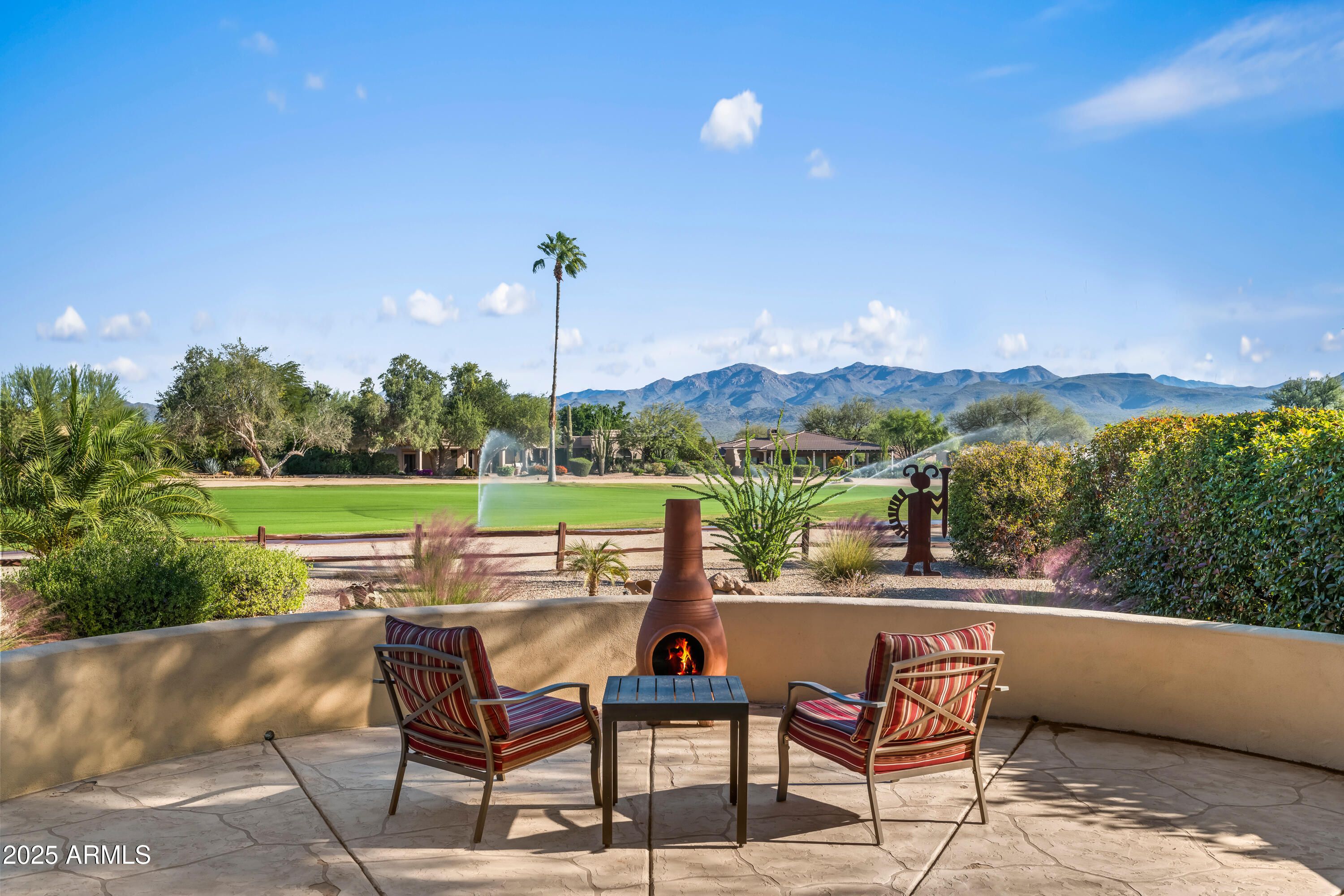 Beautiful views of the golf course and Matzatzal mountains to the east. Situated on the 8th fairway of Quail Run, but set back enough to enjoy your privacy. This quality home begins with a courtyard and opens to a great room with high ceilings and an attractive fireplace. Huge windows let the light shine in the greatroom/dining room. The kitchen is very workable with granite countertops, a breakfast bar, a salad sink and a beverage refrigerator. Solid wood doors throughout and 3 bedrooms, each with their own baths. The back patio is a wraparound with retractable awnings. Here's the big bonus. Besides the 2 car garage and golf cart garage, it also has a 588 Sq ft. bonus room for a workshop of fitness room. Furniture and accessories are included and the owner will provide a list of exclus