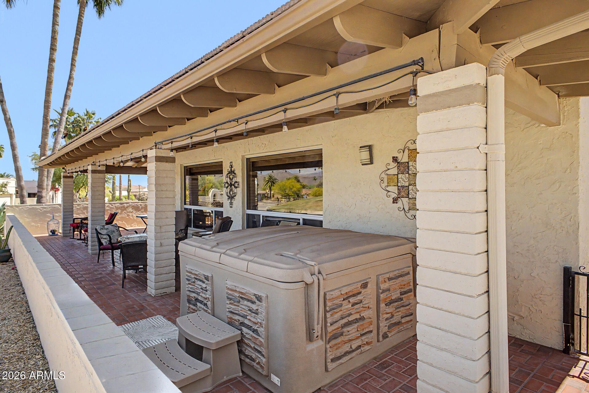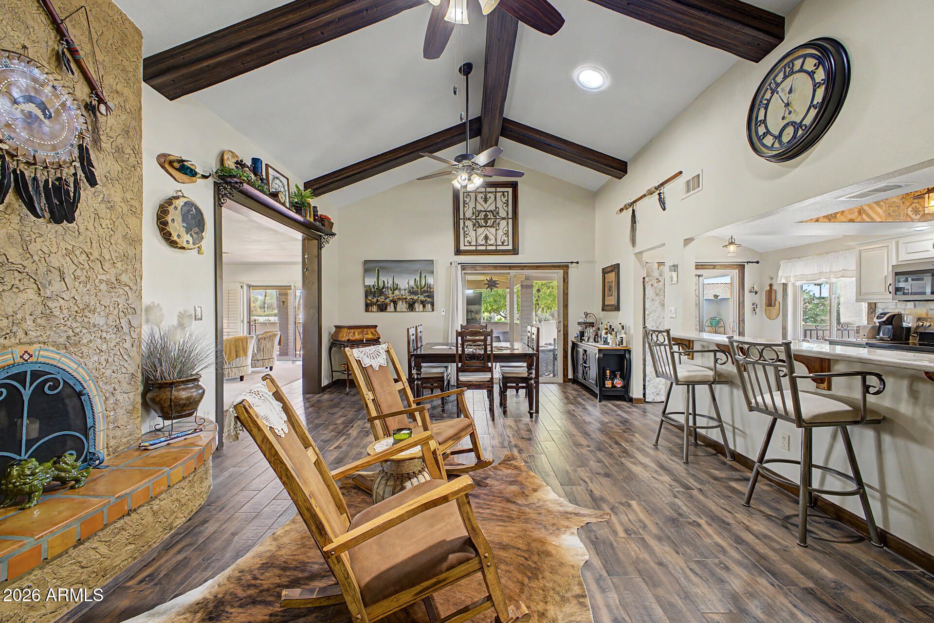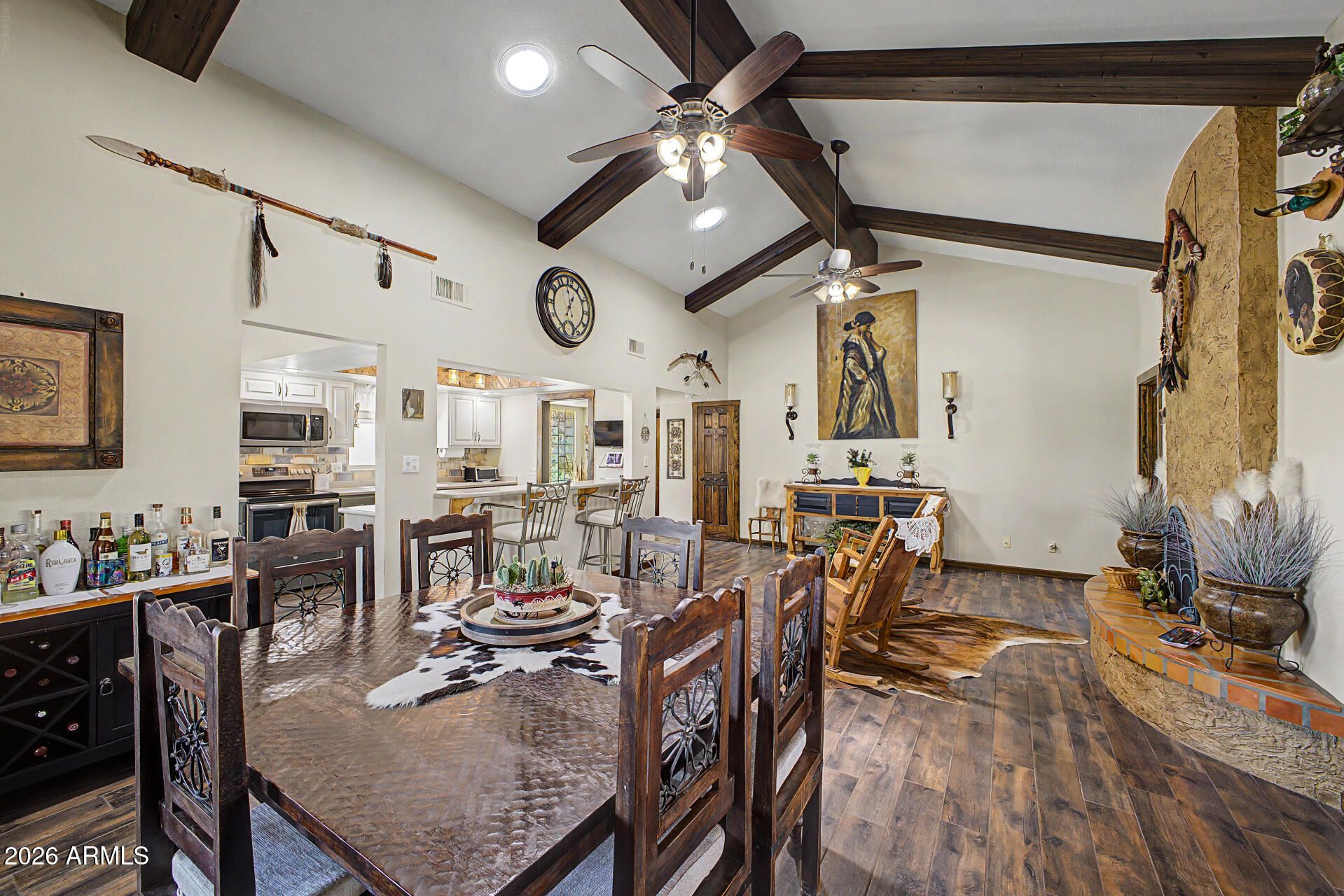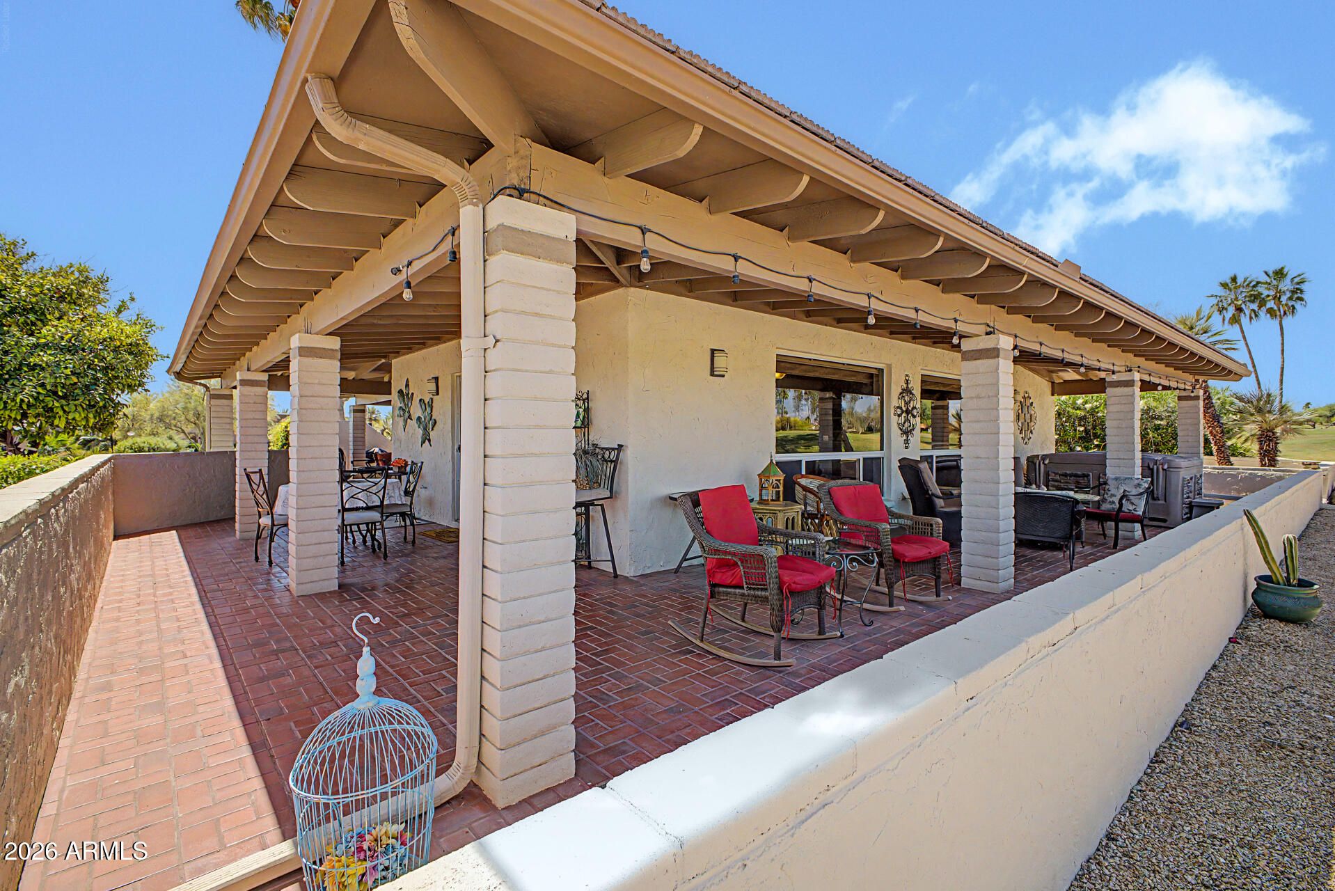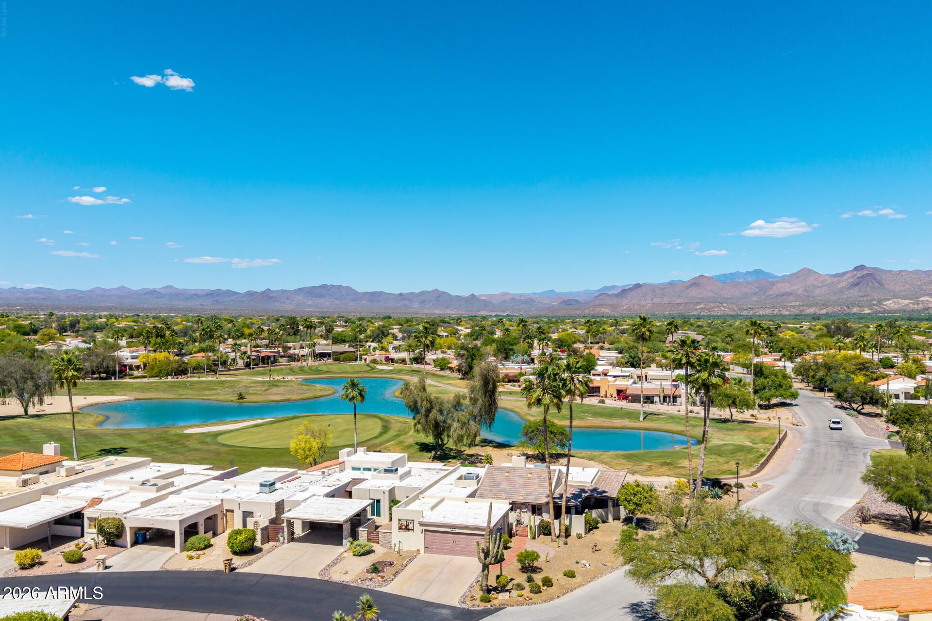 Breathtaking mountain & golf course views. Overlooking golf holes 3, 4, & 5 on Quail Run golf course. It doesn't get any better than this. You don't want to miss this stunning golf-course home in Rio Verde! Nestled in a desirable corner lot, this gem welcomes you with a beautifully landscaped front yard, an inviting courtyard, and a 2-car + golf cart garage. Explore the sizable living spaces perfect for entertaining and comfortable everyday living, showcasing wood-look floors, vaulted ceilings with exposed beams to add character, a fireplace perfect for chilly evenings, and a soothing palette that makes you want to stay. The impeccable kitchen is complete with plentiful storage cabinetry, tile backsplash, ample counter space, SS appliances, and a pass-through window with a breakfast bar. Get a good night's rest in the main bedroom, offering an elegant bathroom with double sinks. Outside, the wraparound patio offers spectacularmountain views that you don't want to miss, providing the perfect spot for relaxing with a refreshing drink or enjoying outdoor dining. Hurry up, this gem won't last!