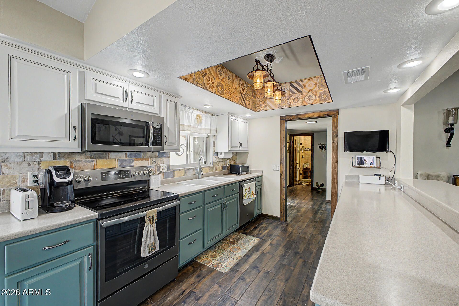 - Dryer, Washer, Refrigerator, Built-in Microwave, Dishwasher, Disposal, Electric Range, Electric Oven