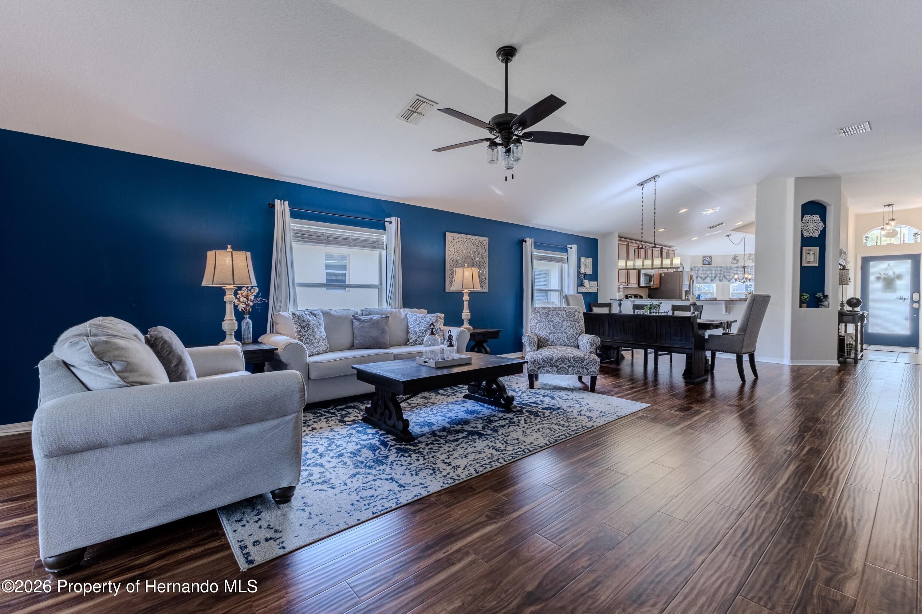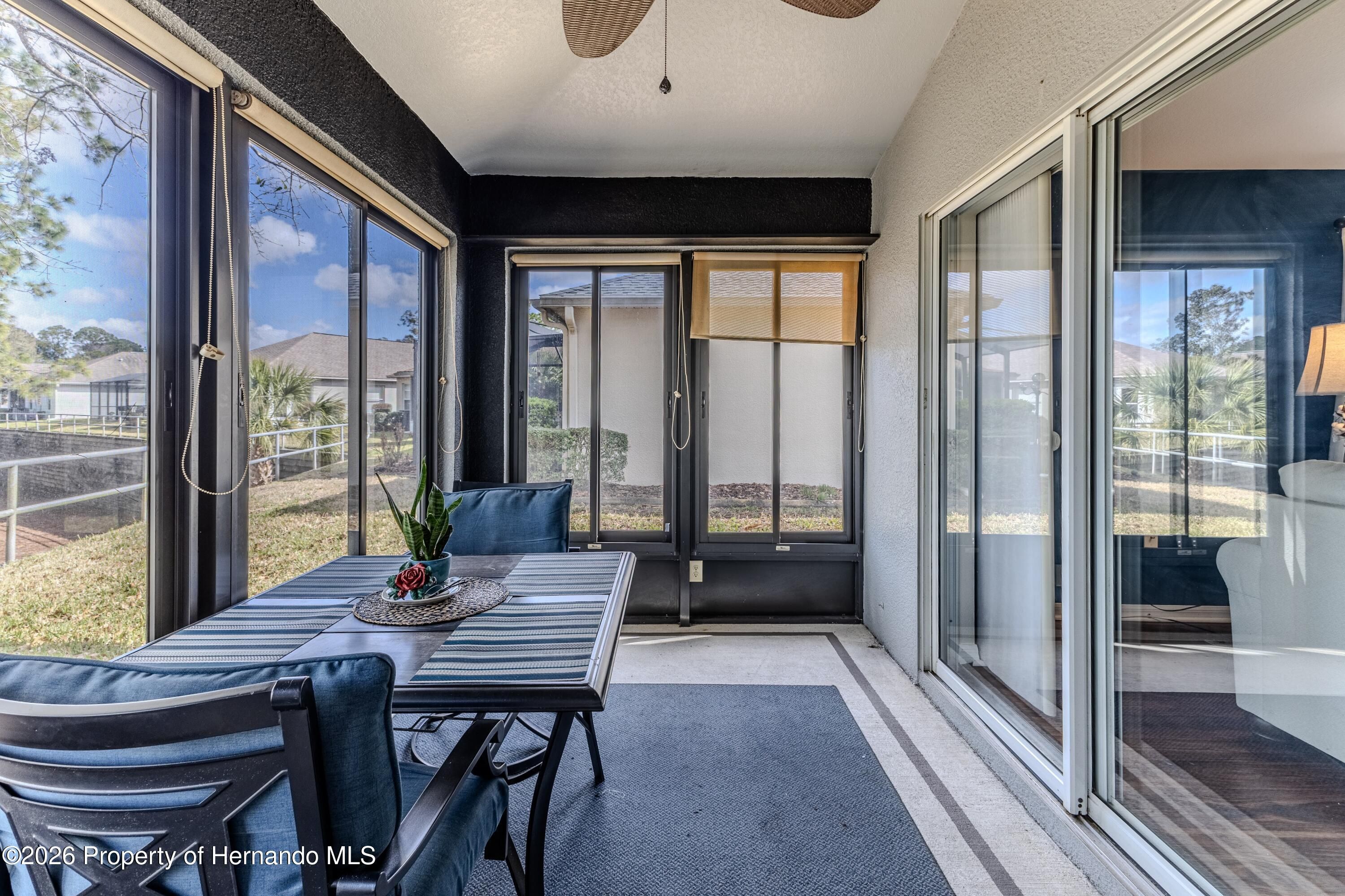 Welcome to effortless Florida living in the highly desirable Heritage Pines 55+ Golf Course Community in Hudson. This beautifully maintained turn-key home reflects true pride of ownership and is ready for its next owner to move right in and start enjoying the lifestyle. Step inside to a light, bright, and inviting floor plan designed for both everyday comfort and easy entertaining. The living, dining, and kitchen areas flow seamlessly together, creating an open and welcoming space perfect for gatherings with friends and family or simply relaxing at home. This property features a breakfast nook area plus open great room style with dining area. Third bedroom/den provides versitility for an office option or hostng visitors. One of the home's most impressive features is the large screened lanai, offering an expansive outdoor living area overlooking a tranquil secluded no-build area. It provides the perfect setting to enjoy your morning coffee, host guests, or unwind in the evening while taking in Florida's beautiful weather -- all in the comfort of a screened environment. The oversized lanai adds valuable functional space and enhances the indoor-outdoor lifestyle Florida buyers love. Located within the gated Heritage Pines community, residents enjoy a resort-style atmosphere with exceptional amenities, including an 18-hole championship golf course, elegant clubhouse with full-service restaurant and bar, heated pool and spa, tennis and pickleball courts, fitness center, performing arts center, billiards room, library, and hobby spaces. The community also features sidewalk-lined streets, beautifully maintained landscaping, a 24-hour guarded gate, and a vibrant social calendar filled with clubs, events, and activities. Whether you're searching for a full-time residence, seasonal retreat, or active retirement lifestyle, this move-in-ready home in Heritage Pines offers the perfect combination of comfort, convenience, and resort-style living. Fullly furnished option makes it truely turnkey. Beyond the home and community borders, a wealth of Central Florida recreational opportunities awaits. Enjoy the renowned tarpon fishing waters of the Gulf of America, explore the historic Tarpon Springs Sponge Docks, or visit nearby scalloping hotspots. Outdoor enthusiasts will appreciate the abundance of kayaking, tubing, biking trails, horseback riding, and motocross. The area also offers numerous golf courses, as well as convenient access to shopping, dining, and medical facilities along Highway 50 and U.S. 19. Plus, easy access to major highways puts you within a comfortable drive of Central Florida's world-famous theme parks, Tampa's cultural attractions, Cruise Ship Ports, and both Tampa International and Saint Pete Airports. Top-rated healthcare facilities, including Tampa General Hospital, are also within close reach--making this home the perfect blend of relaxation, recreation, and convenience for your next chapter in Florida living. Come see why so many love calling Heritage Pines and sunny central Floridfa the perfect paridise.