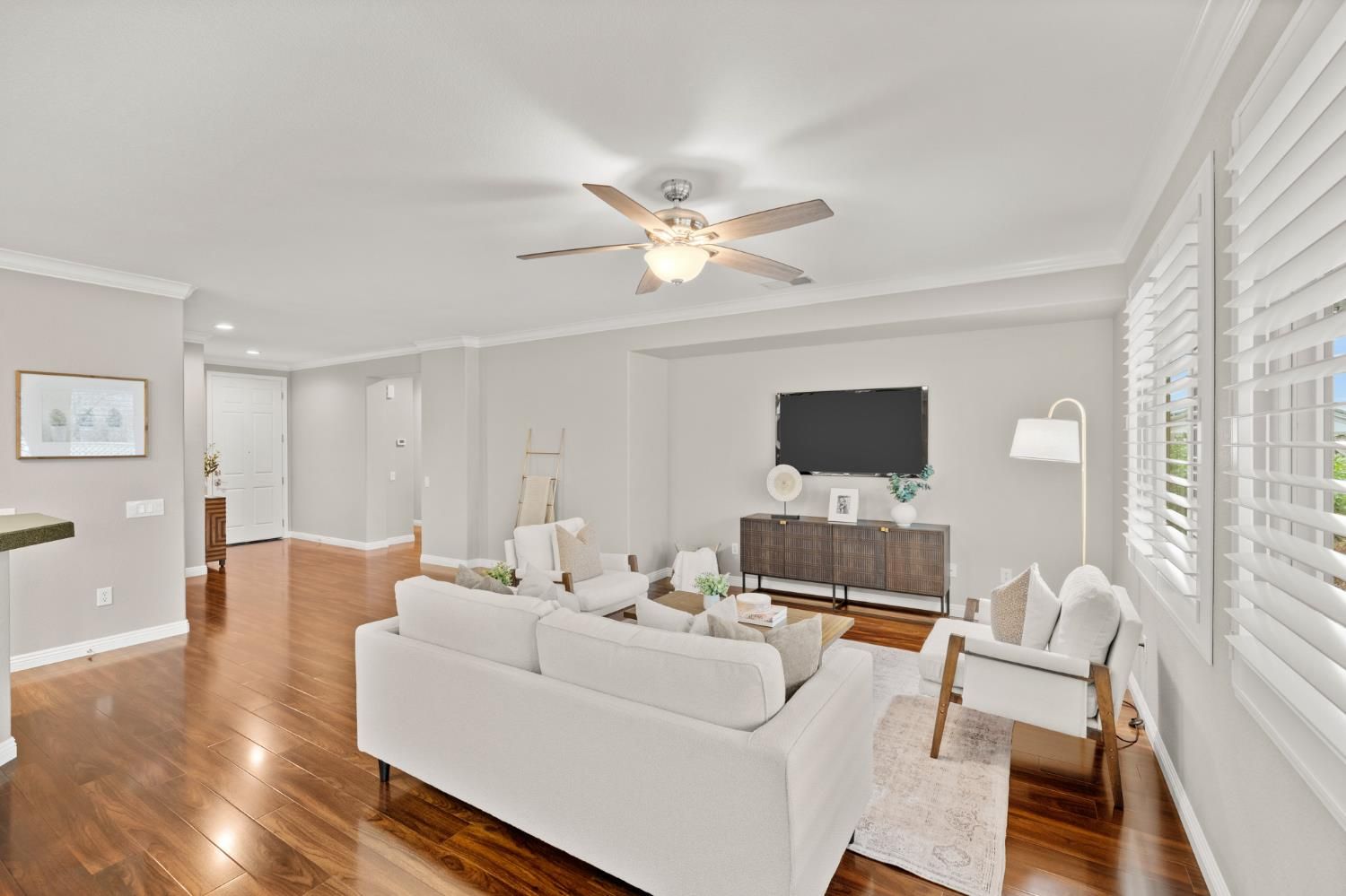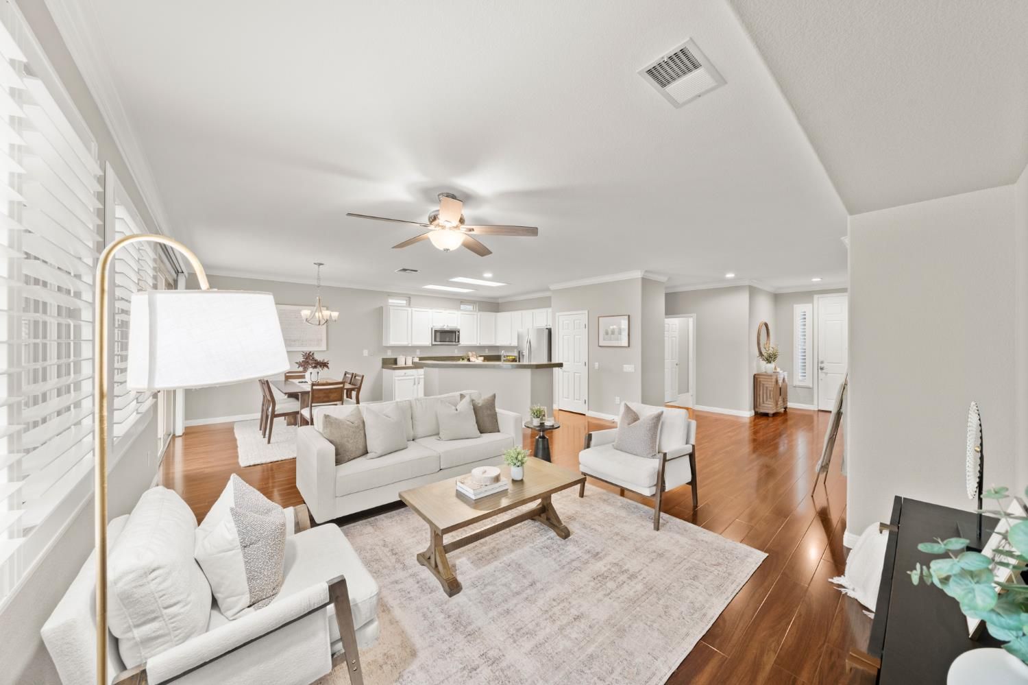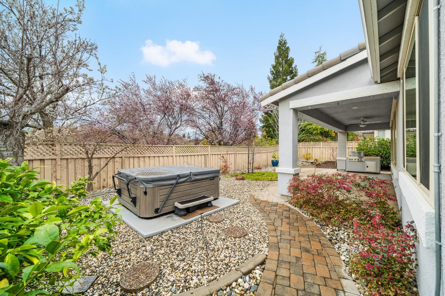 Don't miss this highly sought-after Mendocino floorplan featuring two private primary suites, a half bath, plus a dedicated office/flex space. Meticulously maintained and thoughtfully updated, this home showcases laminate wood flooring, crisp white cabinetry with upgraded hardware, crown molding, plantation shutters, and designer paint throughout. The versatile flex space offers numerous options- functional office, cozy den or it could easily be converted into a true third bedroom if desired. Retreat to the spacious primary suite filled with natural light, complemented by a well-appointed bath with dual sinks, walk-in shower, and an expansive walk-in closet featuring a custom organization system. Enjoy tranquil outdoor living on your elevated corner lot with peek-a-boo views. The beautifully landscaped backyard is designed for relaxation and entertaining, complete with an extended patio cover, built-in BBQ, and private hot tub perfect for morning coffee or evening gatherings under the stars. Added peace of mind includes a newer HVAC, roof & pest repair items completed and no Kitec plumbing. Live the resort lifestyle in the highly desirable Sun City Lincoln Hills community offering world-class amenities including golf, softball, tennis, fitness centers, clubs, events, and more. Make this exceptional home yours today!