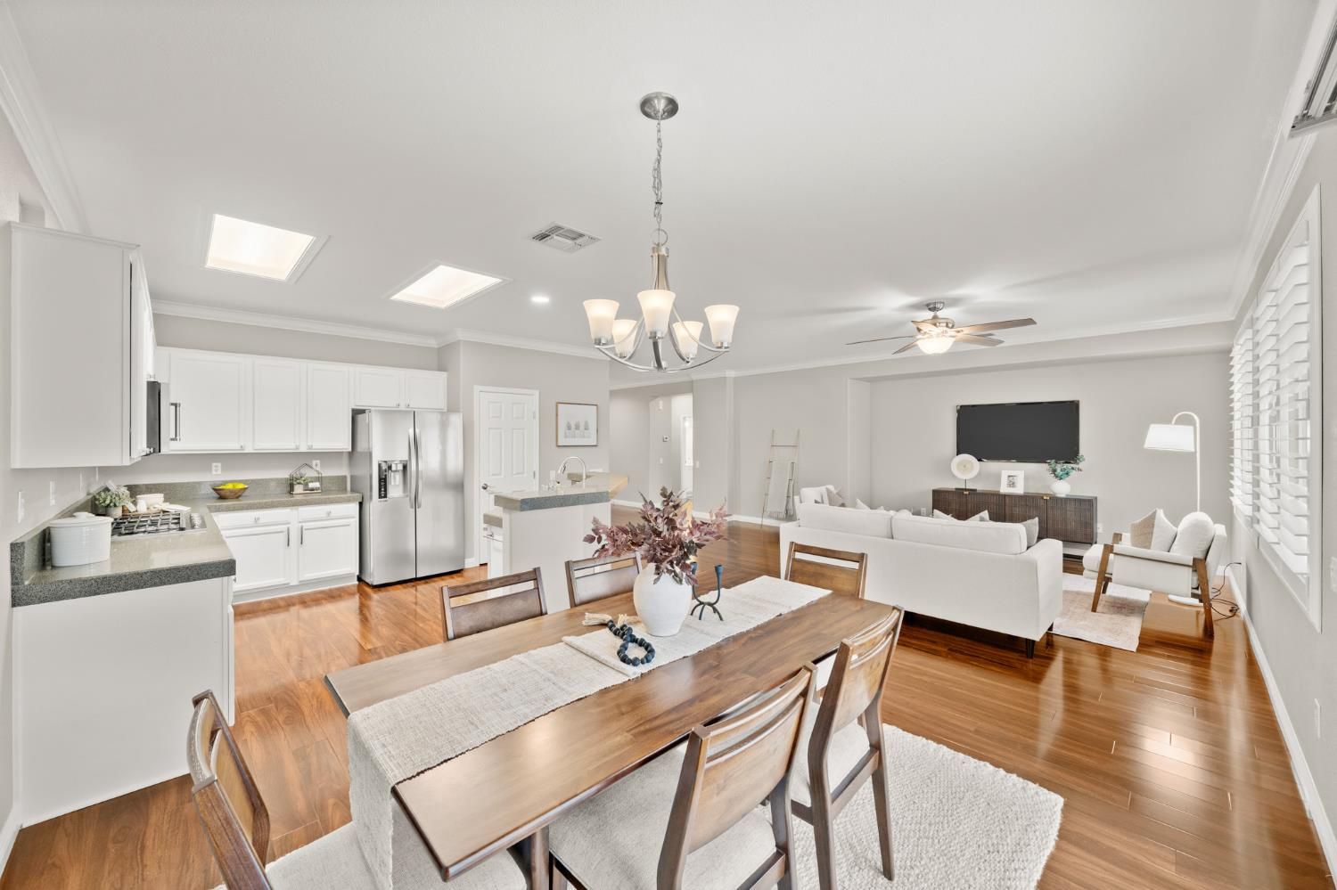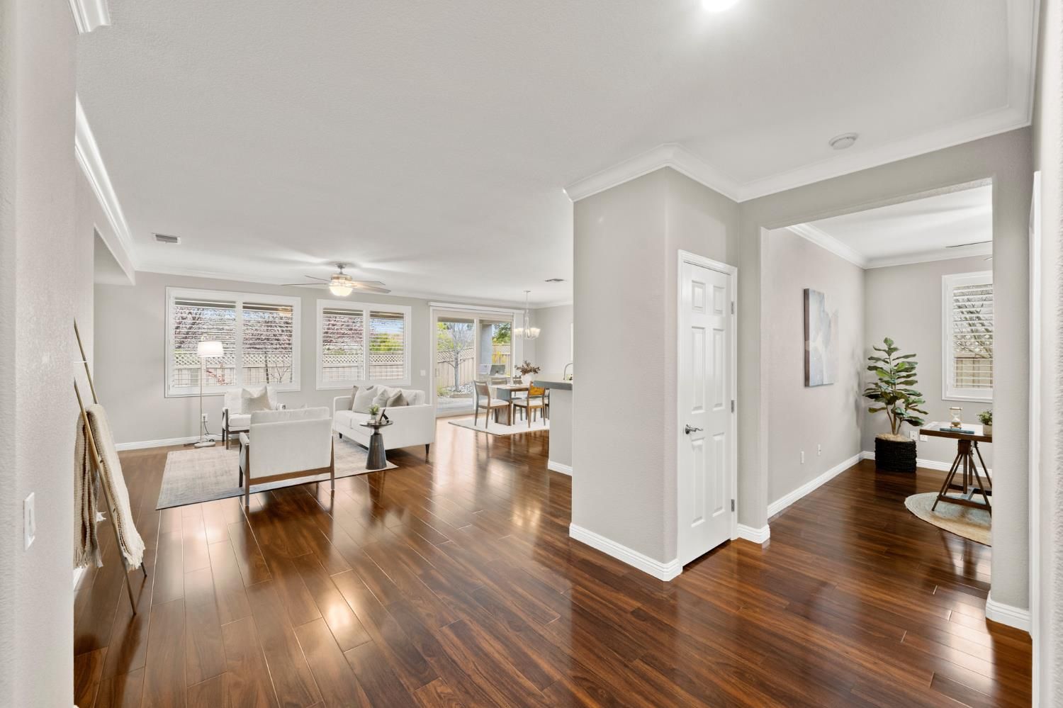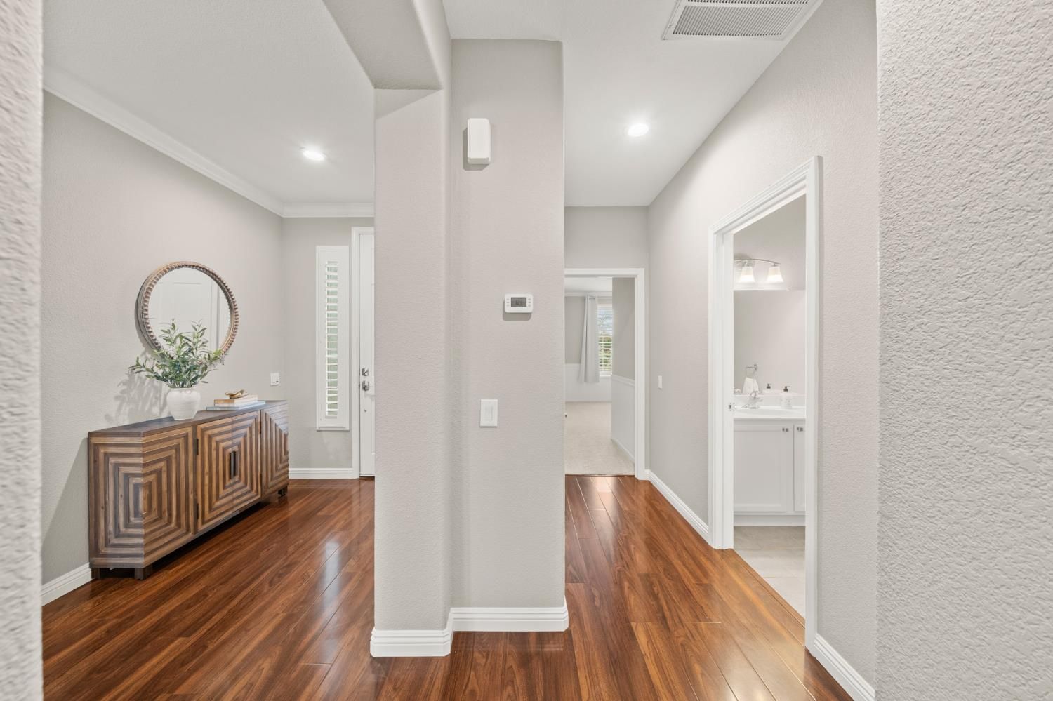 Don't miss this highly sought-after Mendocino floorplan featuring two private primary suites, a half bath, plus a dedicated office/flex space. Meticulously maintained and thoughtfully updated, this home showcases laminate wood flooring, crisp white cabinetry with upgraded hardware, crown molding, plantation shutters, and designer paint throughout. The versatile flex space offers numerous options- functional office, cozy den or it could easily be converted into a true third bedroom if desired. Retreat to the spacious primary suite filled with natural light, complemented by a well-appointed bath with dual sinks, walk-in shower, and an expansive walk-in closet featuring a custom organization system. Enjoy tranquil outdoor living on your elevated corner lot with peek-a-boo views. The beautifully landscaped backyard is designed for relaxation and entertaining, complete with an extended patio cover, built-in BBQ, and private hot tub perfect for morning coffee or evening gatherings under the stars. Added peace of mind includes a newer HVAC, roof & pest repair items completed and no Kitec plumbing. Live the resort lifestyle in the highly desirable Sun City Lincoln Hills community offering world-class amenities including golf, softball, tennis, fitness centers, clubs, events, and more. Make this exceptional home yours today!