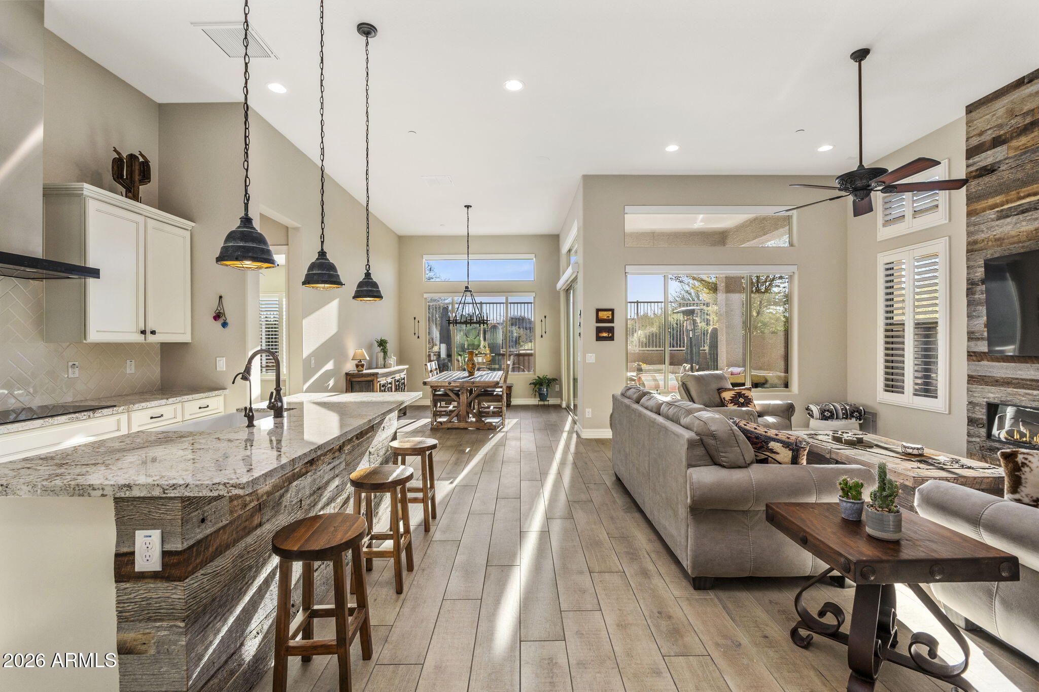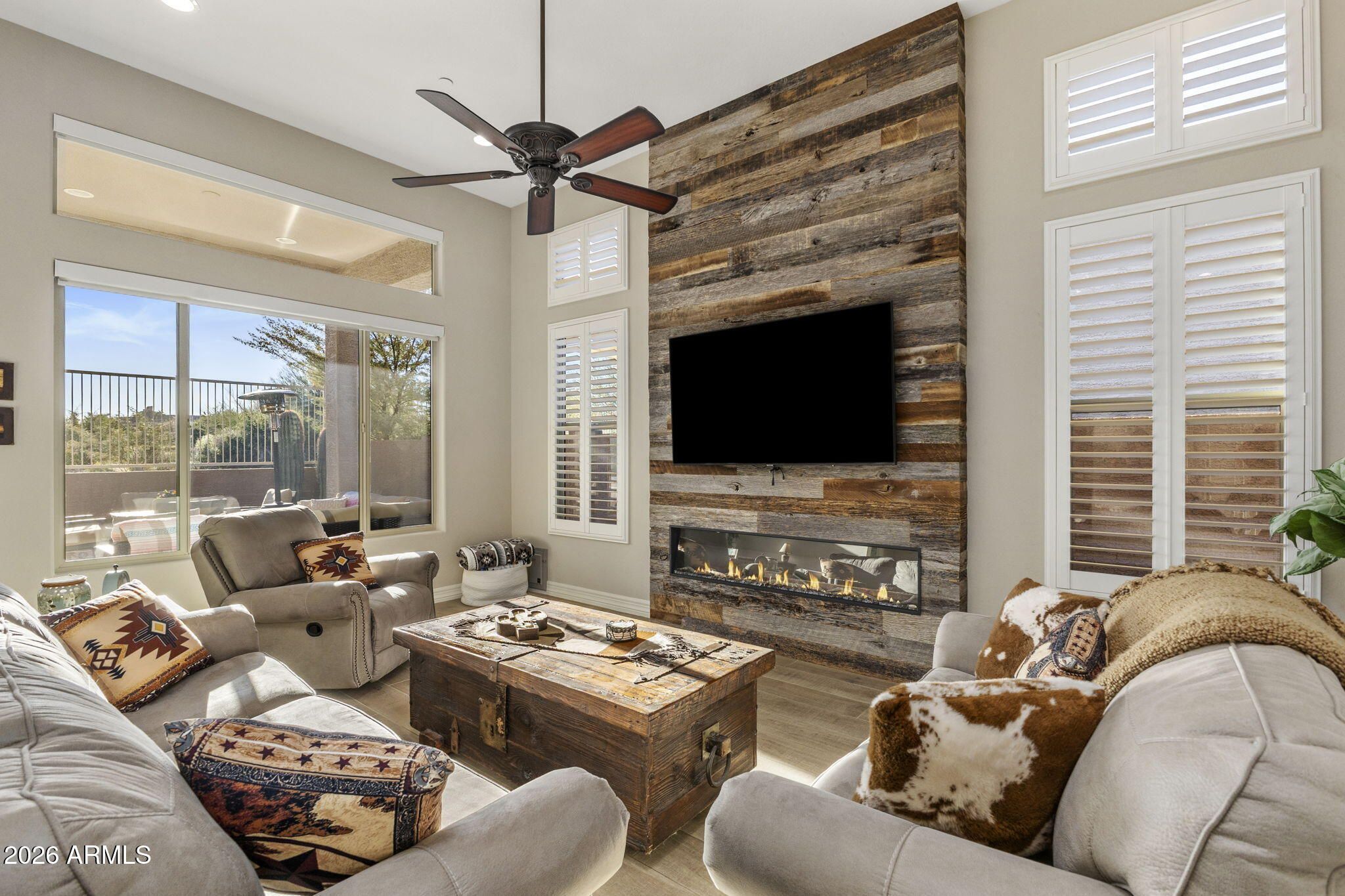 Enjoy the exceptional amenities of Tonto Verde Golf Club from this beautiful lock-and-leave home, ideally located on the third hole of the Ranch Course. Situated within a gated 55+ community, residents enjoy pickleball, a dog park, on-site dining, a pool and spa, an 18-hole putting green, a business center, and scenic walking trails. As the largest model in the community, this six-year-old home features numerous upgrades, including new travertine in the backyard, new appliances, custom shades, primary closet organizers, tall baseboards, 42-inch cabinetry, granite countertops, tile bathrooms, and soaring ceilings—offering both comfort and style in a truly low-maintenance setting.