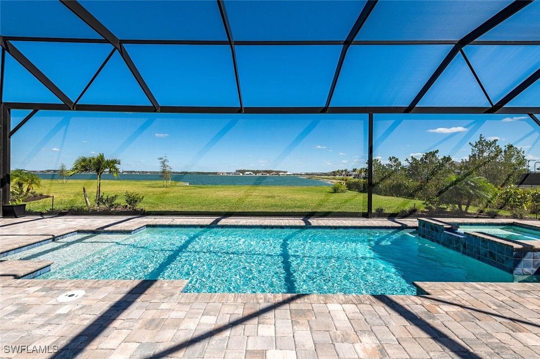 Priced to sell, this exceptional Iris Model offers one of the largest lakefront lots and most breathtaking water views in WildBlue, presenting a rare opportunity to buy low and customize to your taste. Located at 18789 Wildblue Blvd in the prestigious WildBlue community of Fort Myers, this 2022-built residence sits on an oversized half-acre lot with sweeping, unobstructed lake views and features 4 bedrooms, 3 baths, and nearly 3,000 sq. ft. of thoughtfully designed living space. The open-concept floor plan includes a gourmet kitchen with a large center island, a formal dining room, and seamless indoor-outdoor living ideal for entertaining. The private outdoor oasis showcases an upgraded pool and spa, an expansive screened lanai with an 8-foot extension, lush privacy landscaping, and the rare advantage of direct lake access from a private cove, perfect for boating, fishing, kayaking, or paddle boarding. Additional highlights include impact-resistant windows and doors, a whole-house water filtration system, and a spacious 3-car garage. Residents of WildBlue enjoy world-class, resort-style amenities including a lakeside clubhouse with fine dining, fitness center and spa, tennis and pickleball courts, and an unmatched water-sports lifestyle. This is a rare chance to own a move-in-ready luxury lakefront home in one of Southwest Florida’s most desirable communities. Bring all offers. Owner says SELL. Photos with furnishings are virtually staged.
