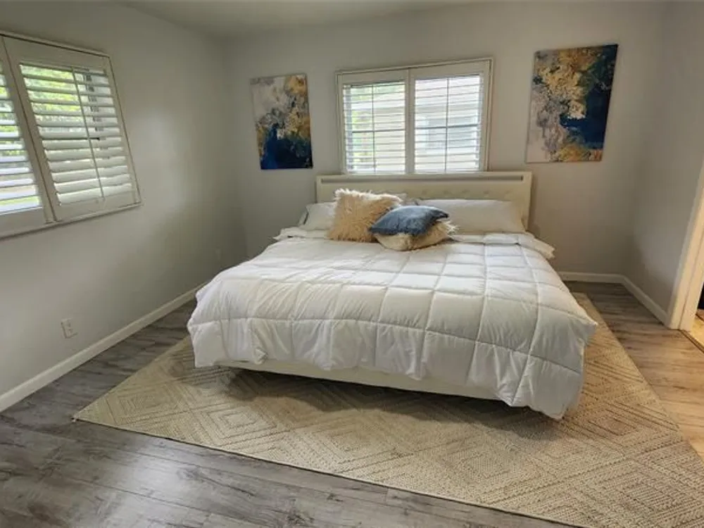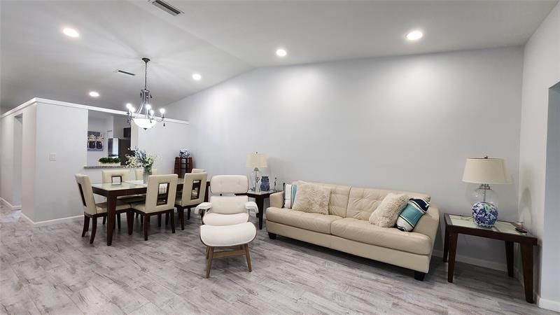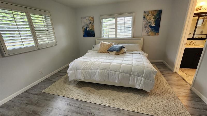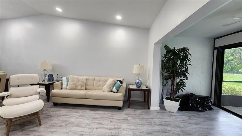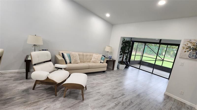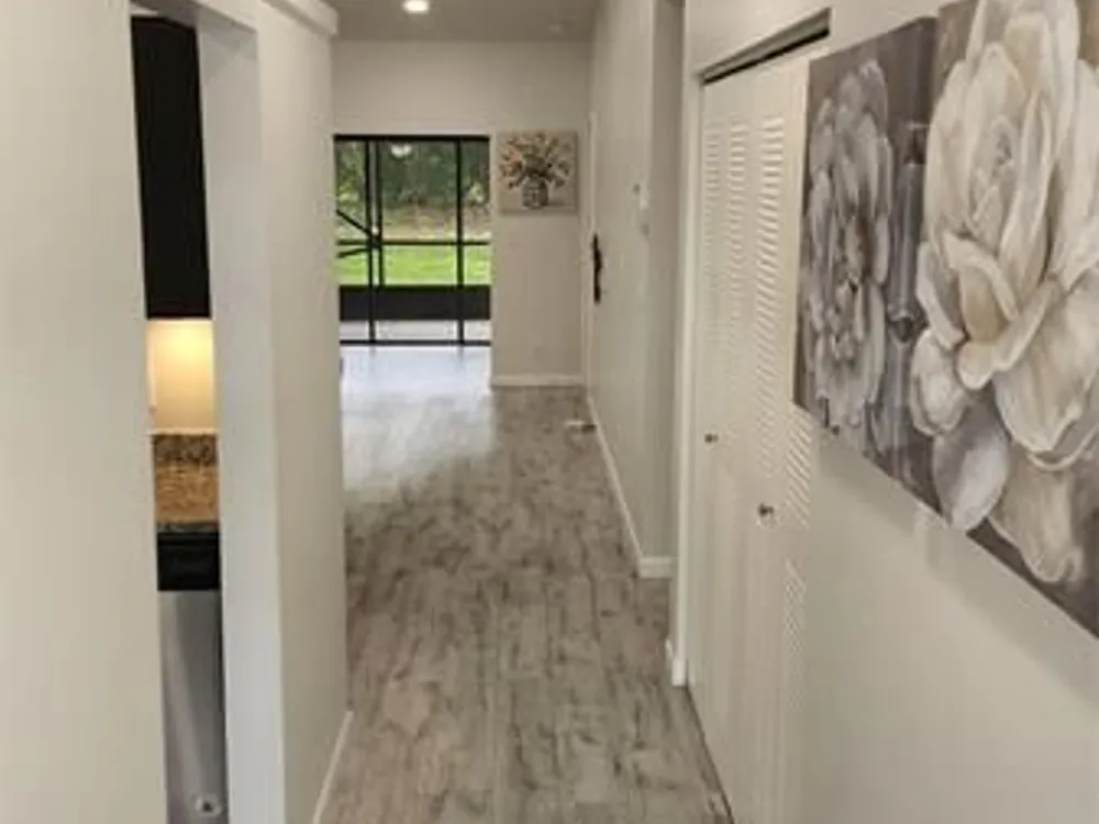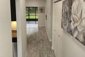 This bright corner unit offers 2 beds, 2 updated baths, and wood-look flooring throughout. The gourmet kitchen features sleek cabinets, granite counters, stainless steel appliances, a pantry, and a pass-through to the dining room. The open living and dining areas flow into a versatile Florida Room. The primary suite includes a walk-in closet and a renovated en-suite bath with a shower. The guest bath offers a tub with a frameless enclosure. A screened porch overlooks lush landscaping, and residents enjoy fantastic amenities in this active community. Residents of Whisper Walk enjoy access to great amenities in this secure community, offering an active lifestyle.